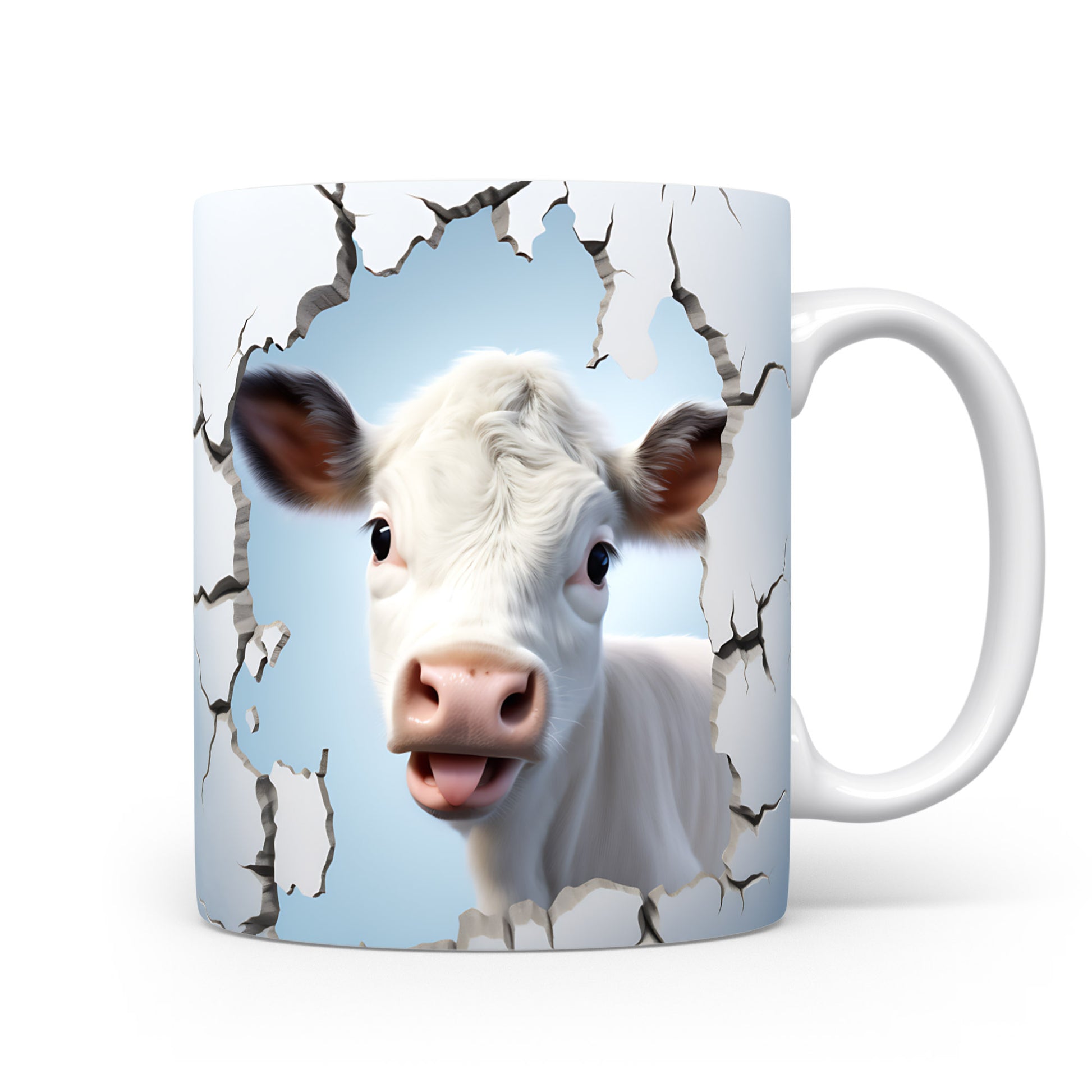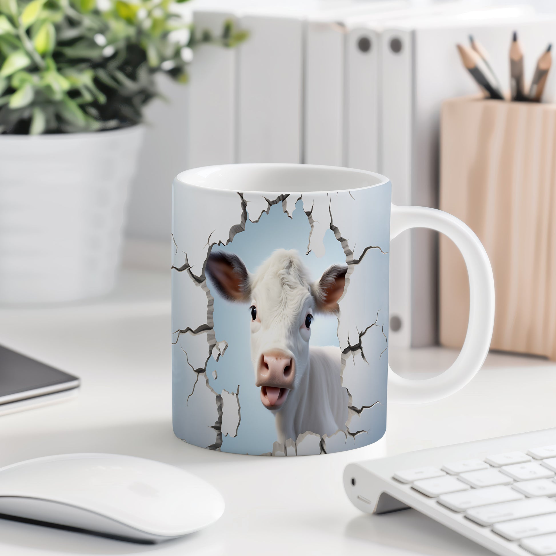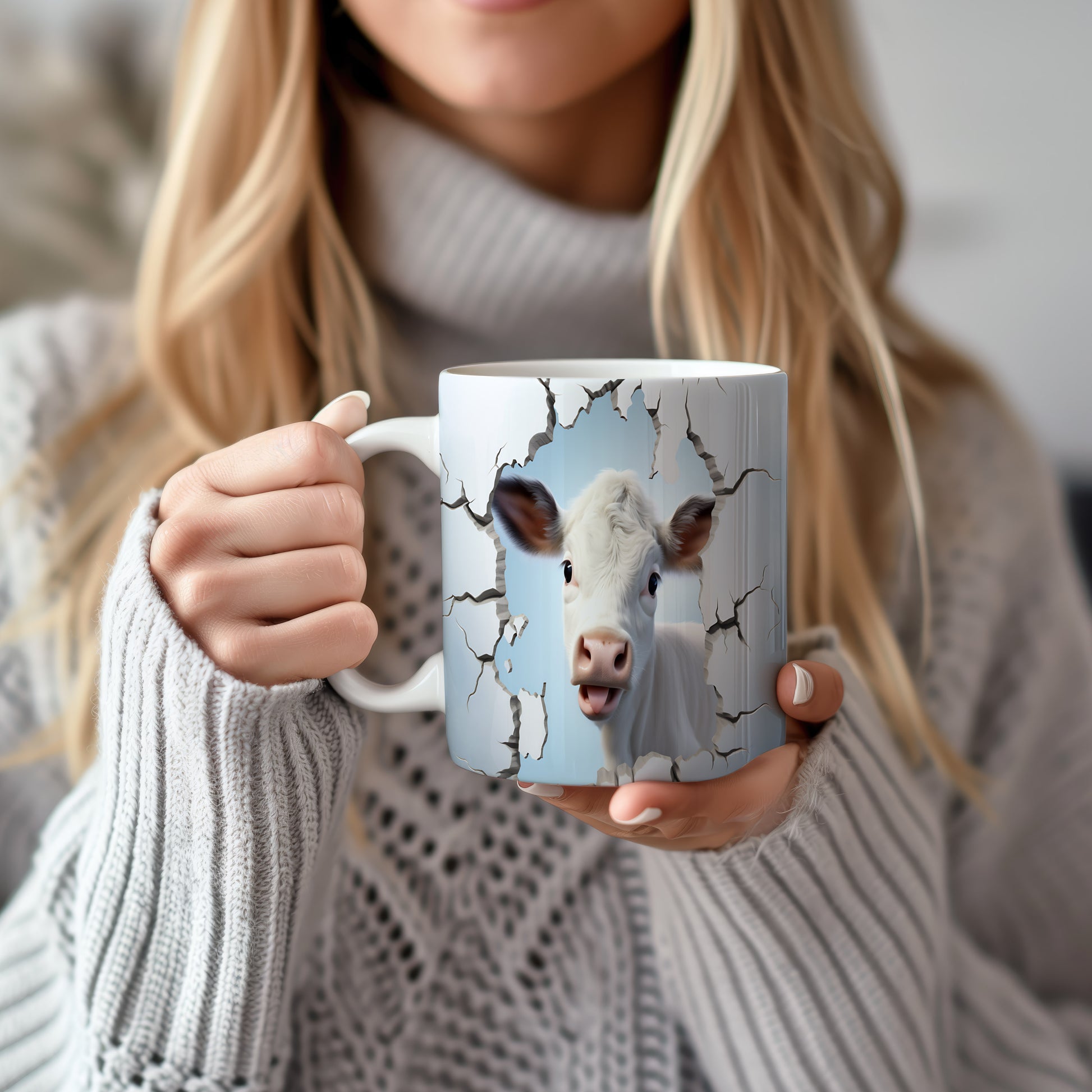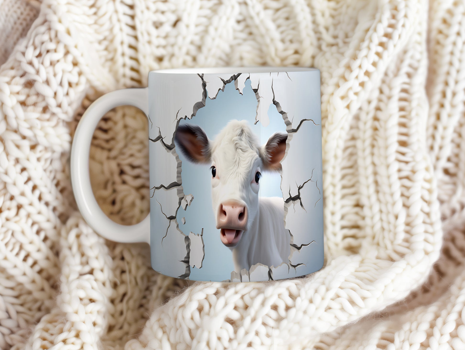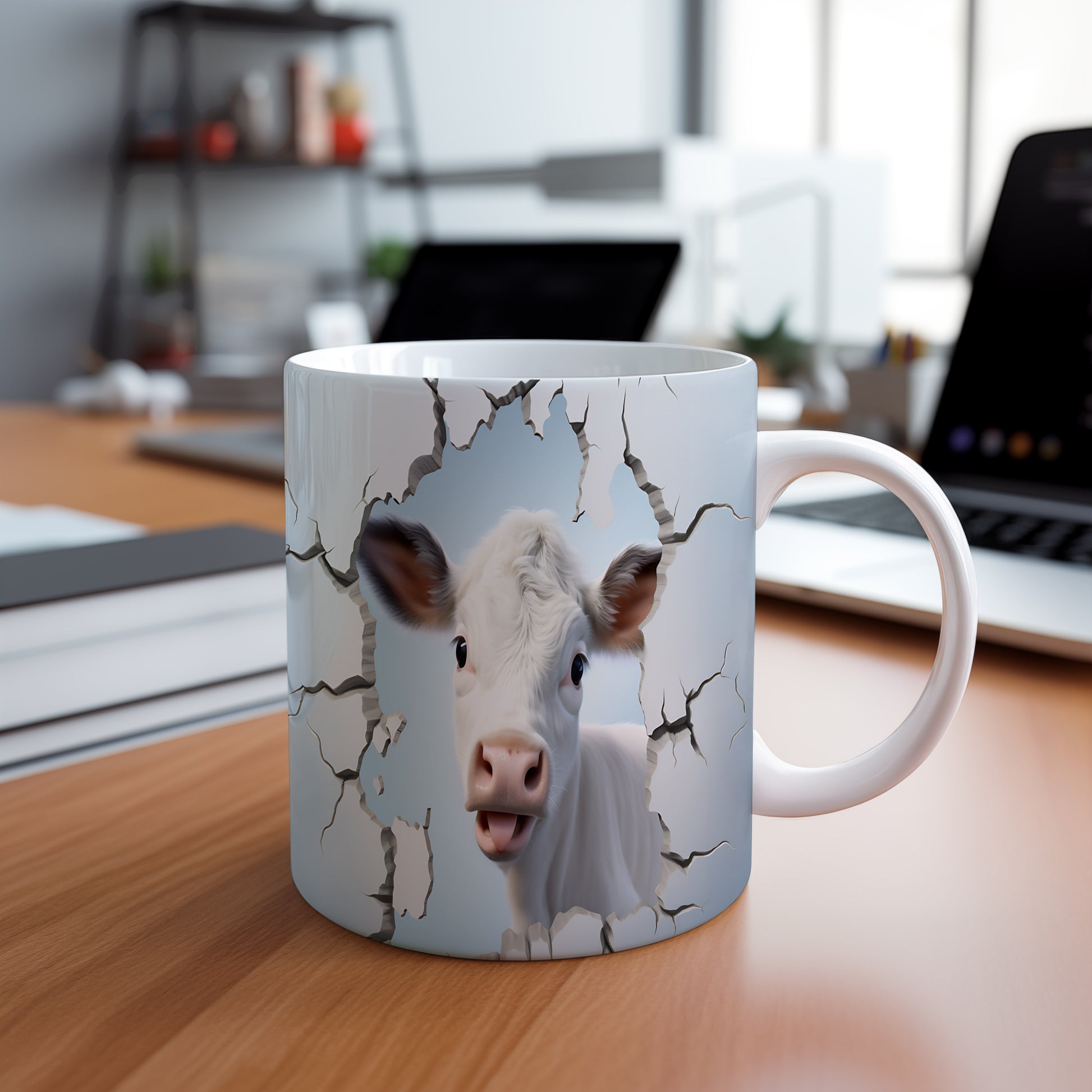 Hrnek s krávou vyhlížející 3D efektem