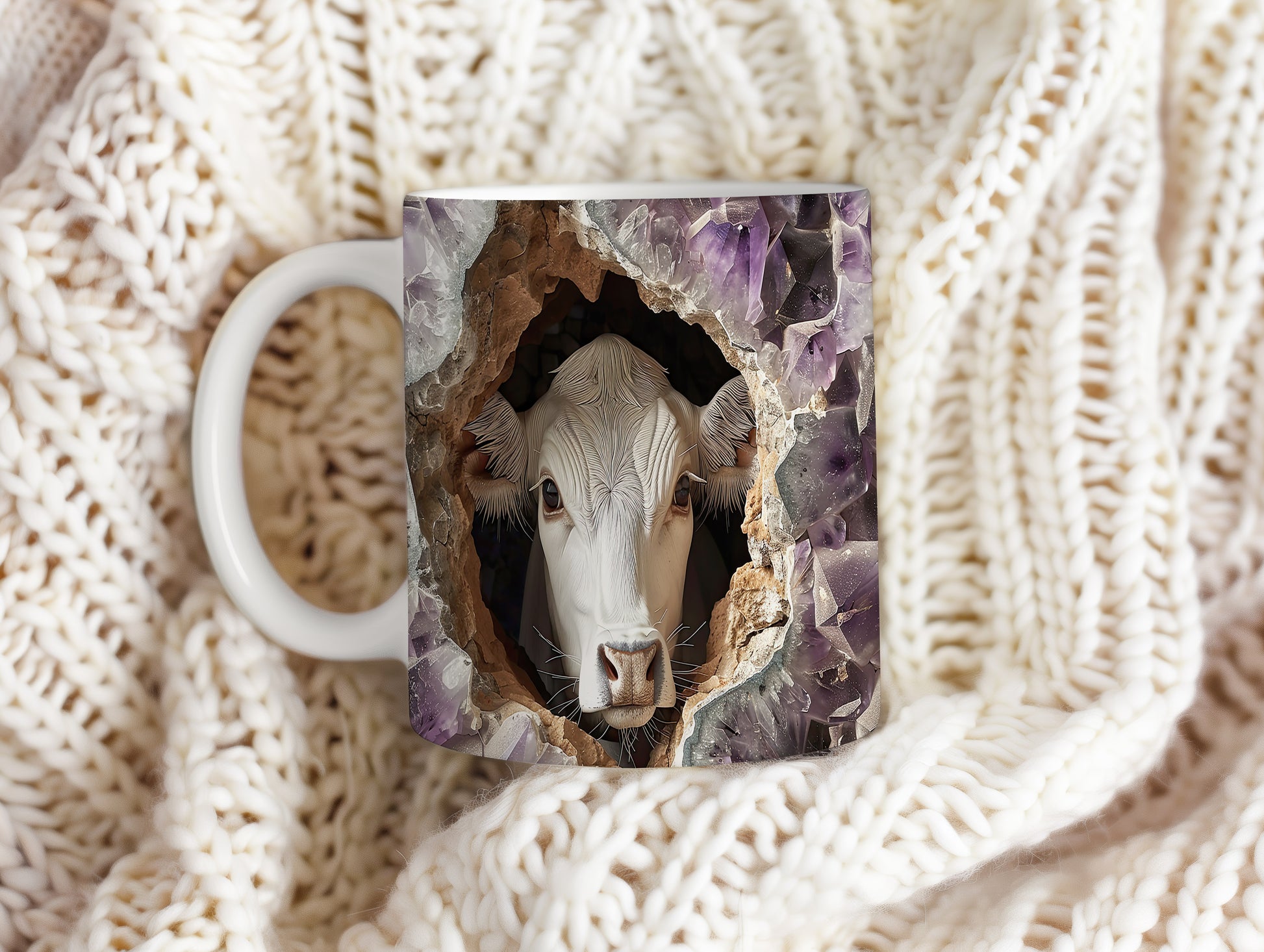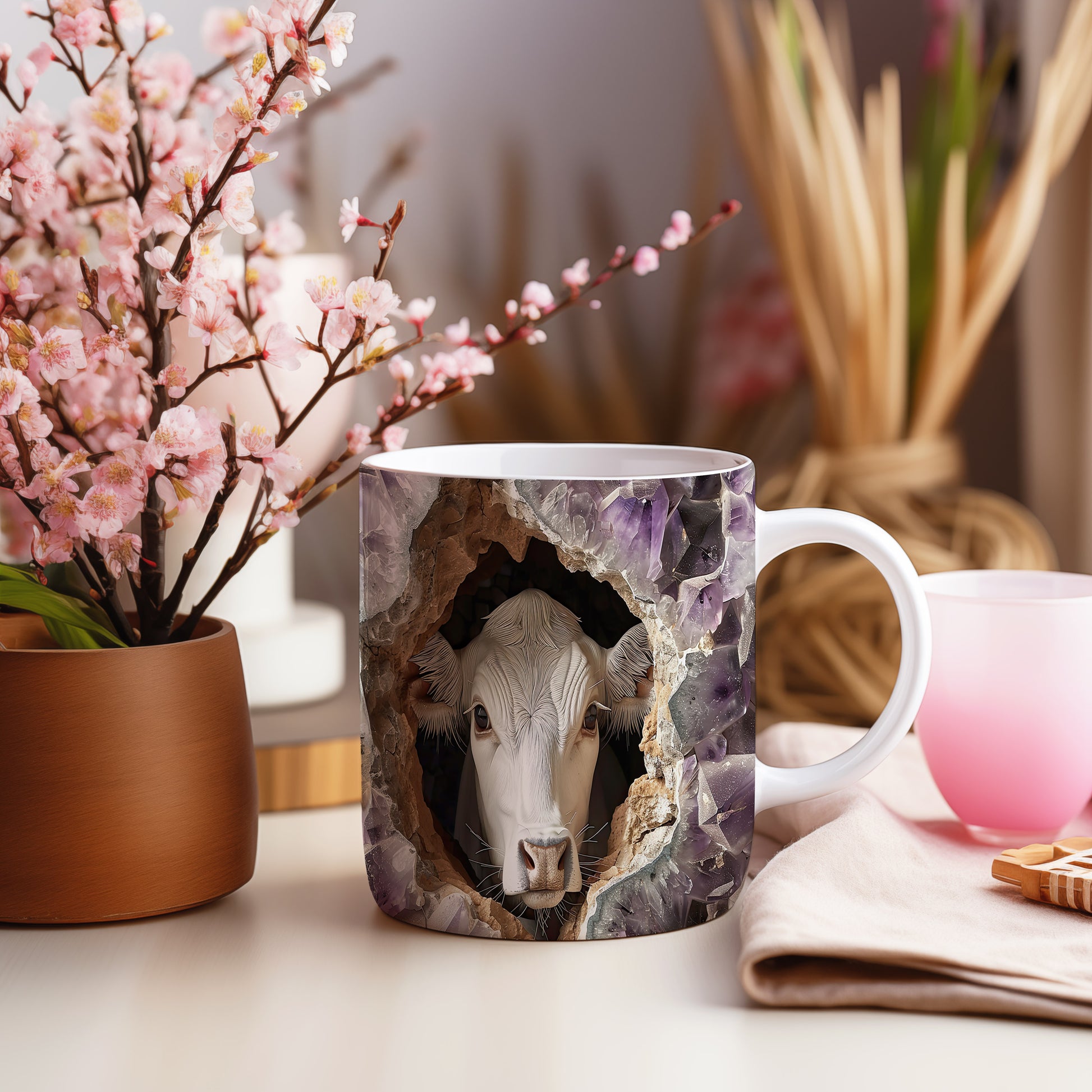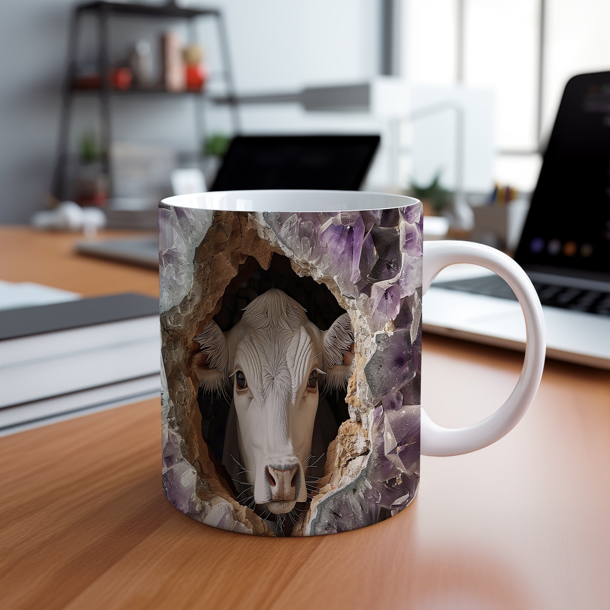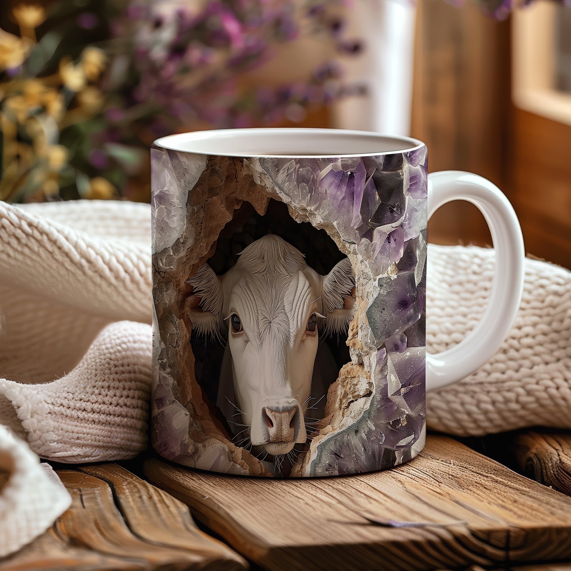 Hrnek s krávou vyhlížející 3D efektem – 3D efektem