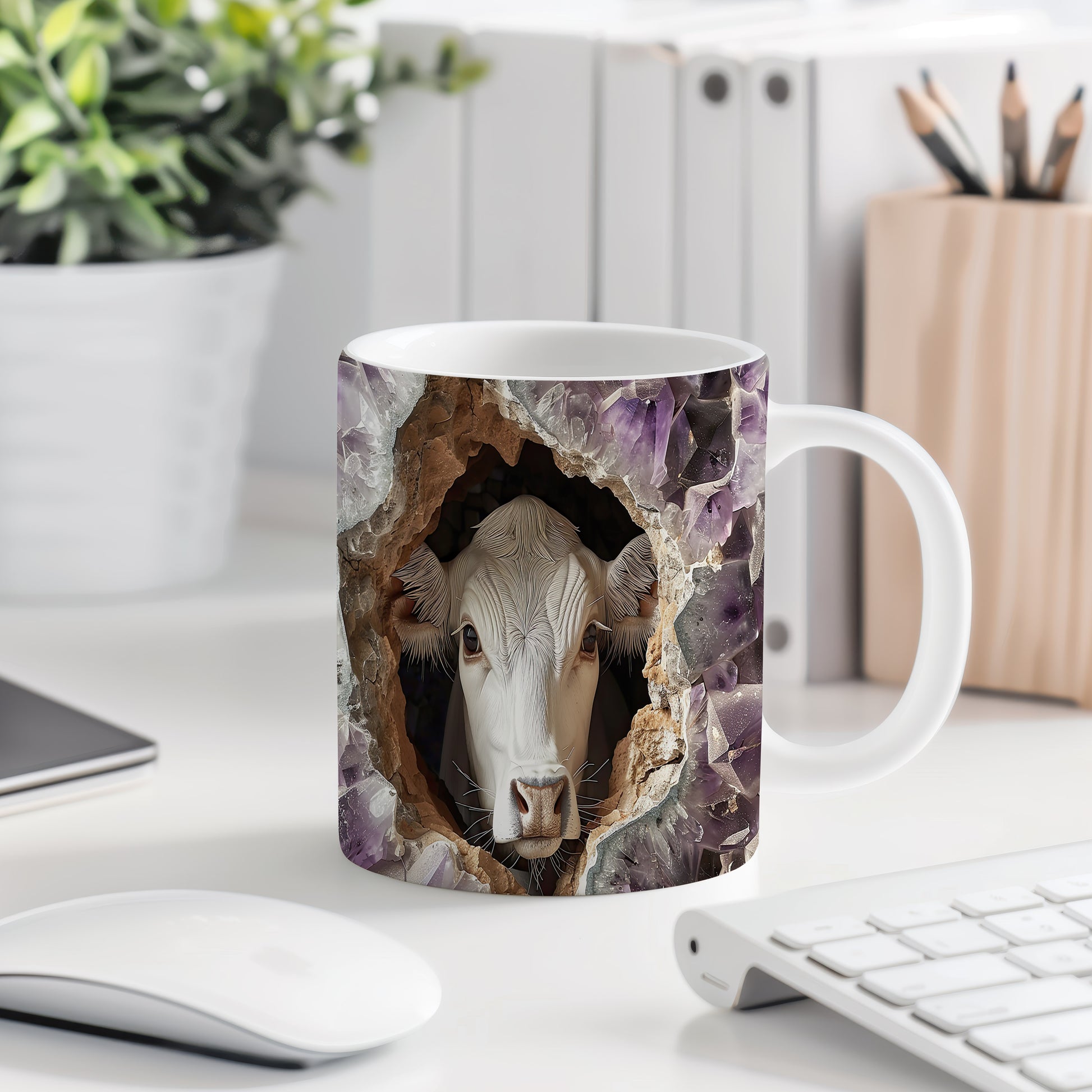 Tento keramický hrnek s motivem bílé krávy, která vyhlíží 3D efektem, potěší každého milovníka zvířat a přírody. Je skvělým dárkem pro přátele nebo rodinu, kteří ocení originální design. Materiál: keramika. Objem: 330 ml. Vhodné do myčky i mikrovlnky. Používání tohoto hrnku přináší radost z každého doušku.
