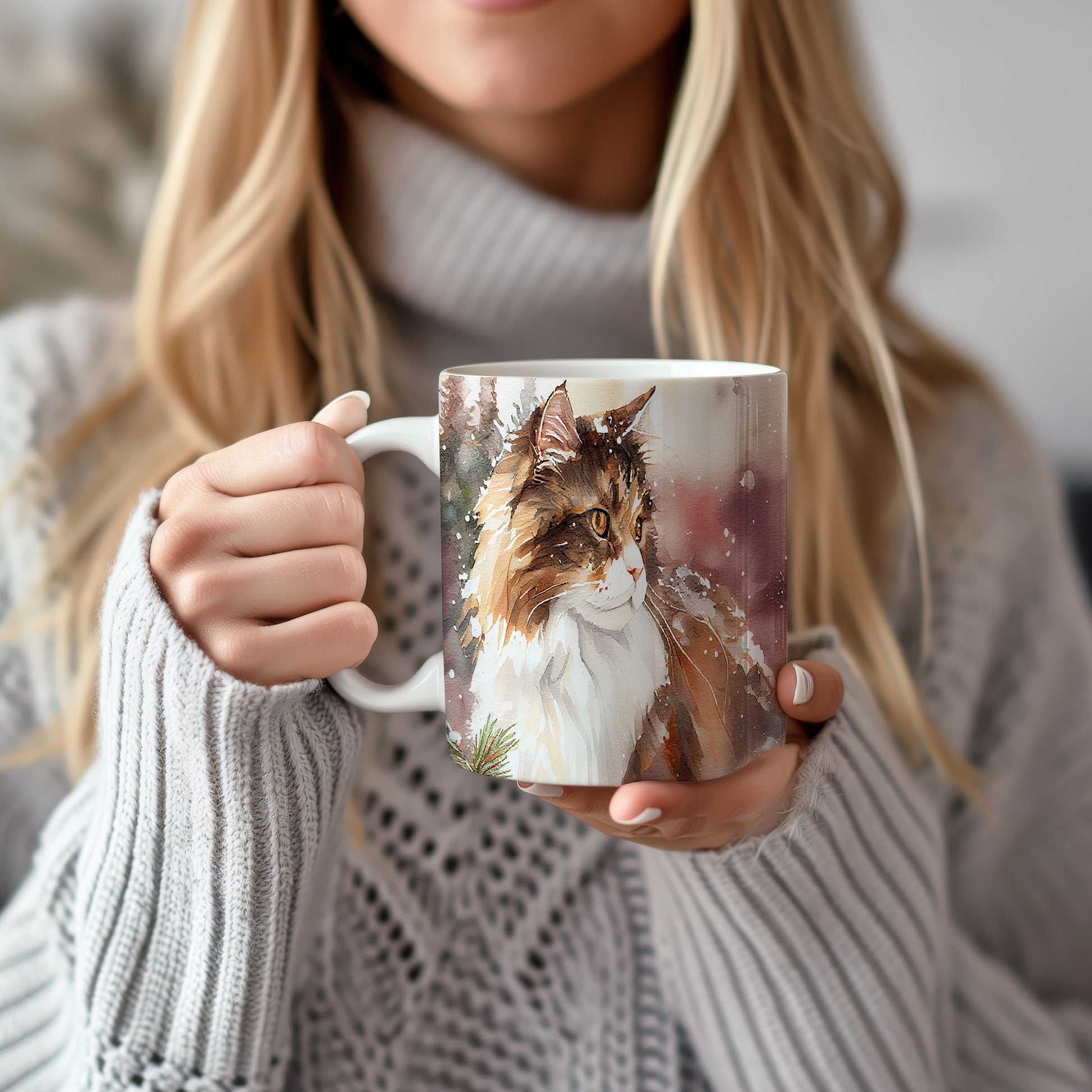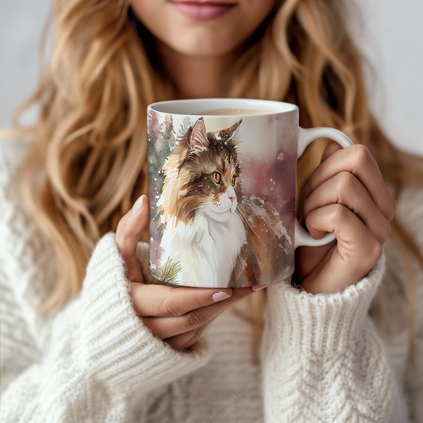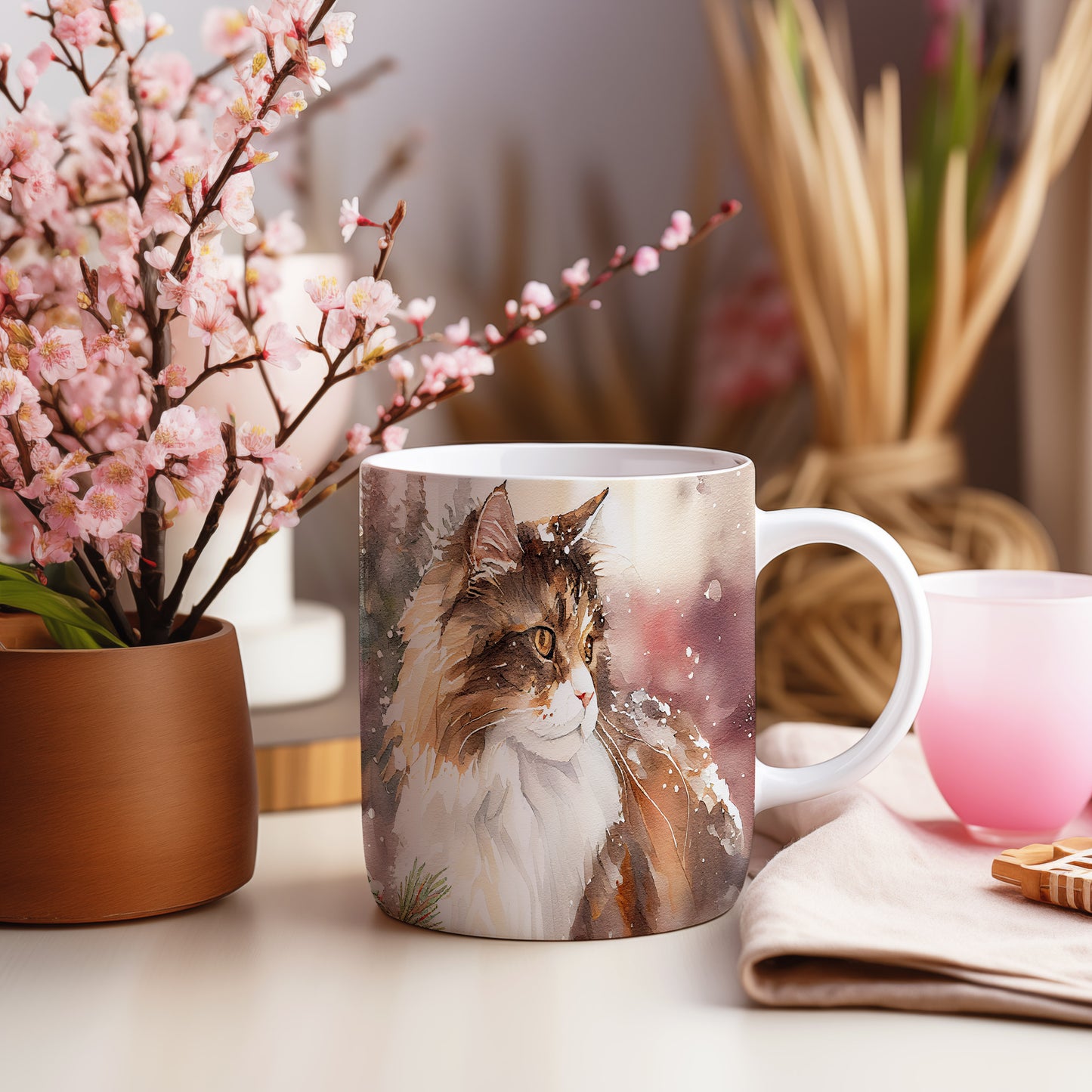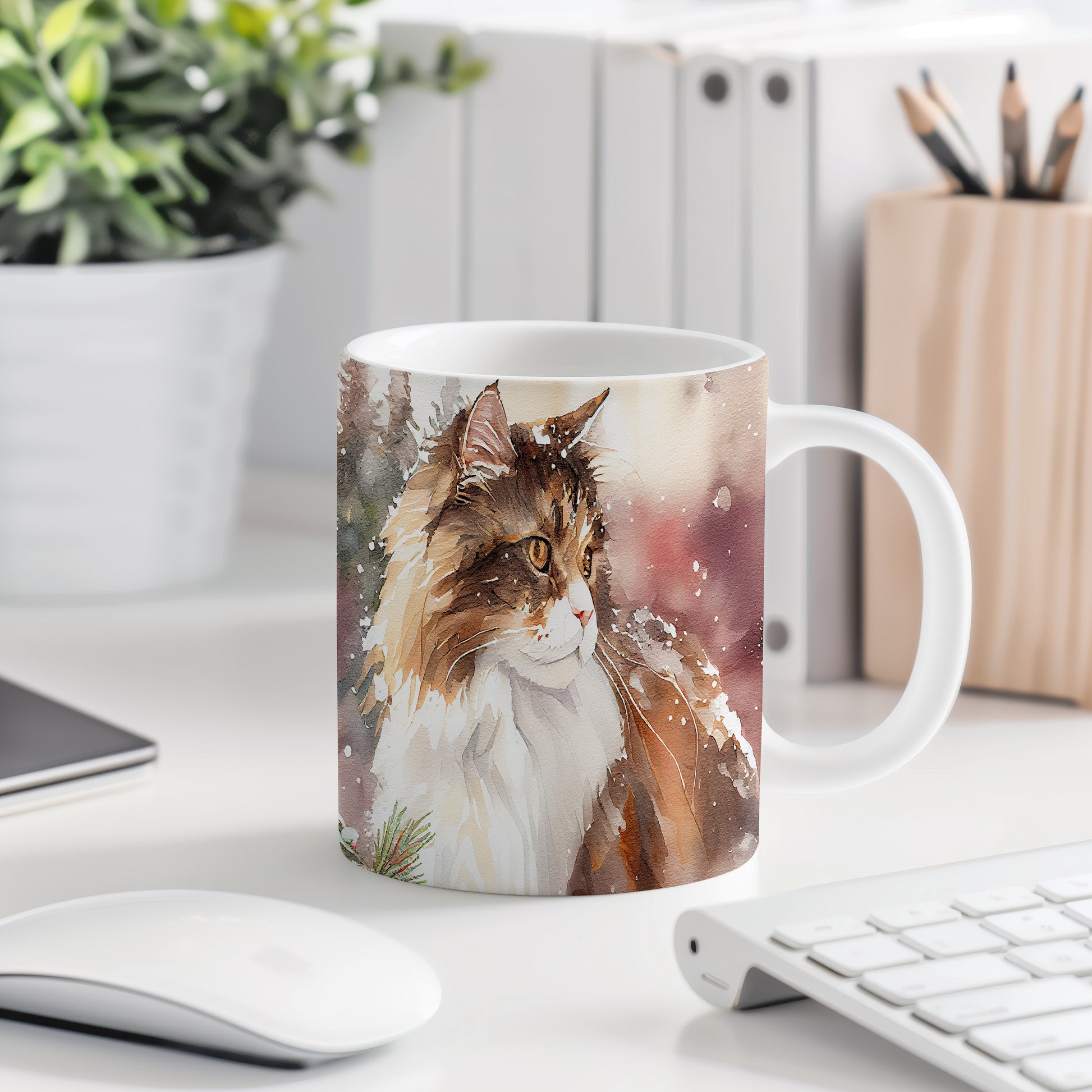 Hrnek s ilustrací kočky v zimní scenérii je skvělým doplňkem pro milovníky těchto mazlíčků. Tento hrnek potěší každého, kdo hledá originální dárek pro přátele nebo rodinu. Materiál: keramika. Objem: 330 ml. Vhodné do myčky i mikrovlnky. Díky svému designu přináší radost při každém doušku oblíbeného nápoje.