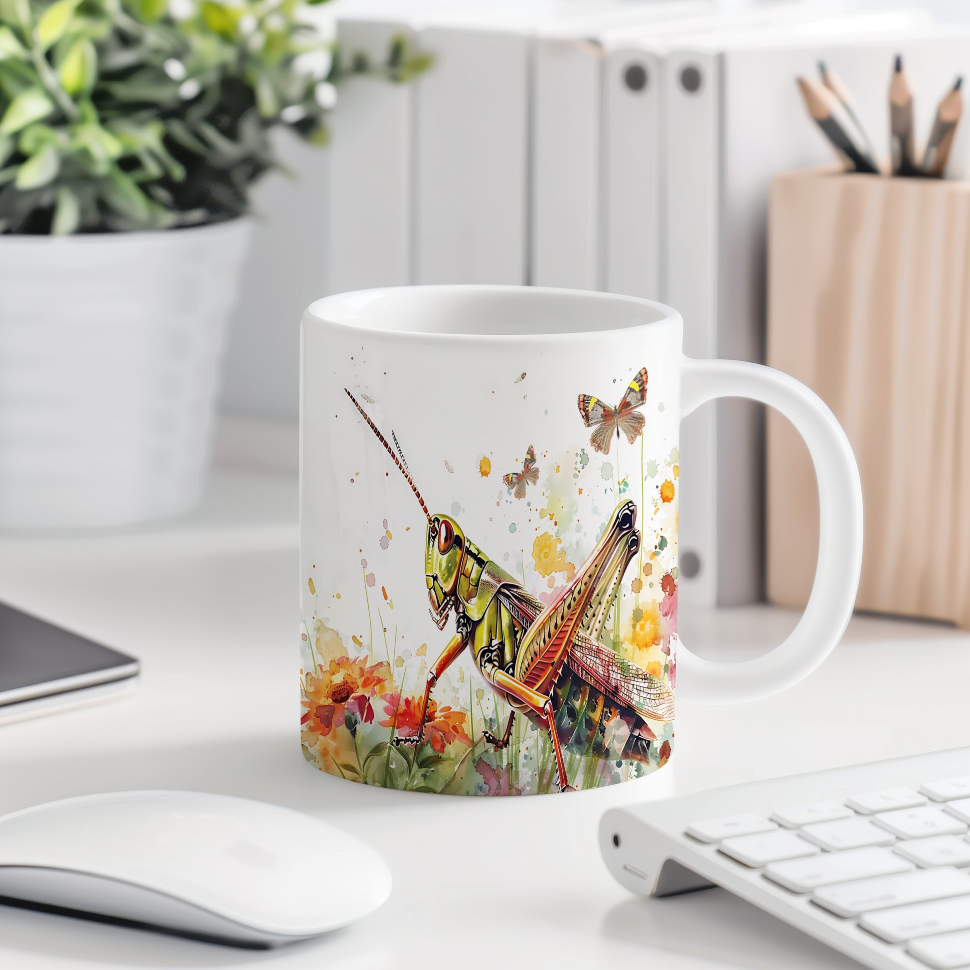 Tento hrnek zdobí detailní ilustrace kriketa v přírodním prostředí s květinami. Je ideální pro milovníky hmyzu a přírody, skvělý tip na dárek pro každého, kdo ocení krásu přírody. Materiál: keramika. Objem: 330 ml. Vhodné do myčky i mikrovlnky. Používáním tohoto hrnku si můžete vychutnat svůj oblíbený nápoj s nádechem přírody.