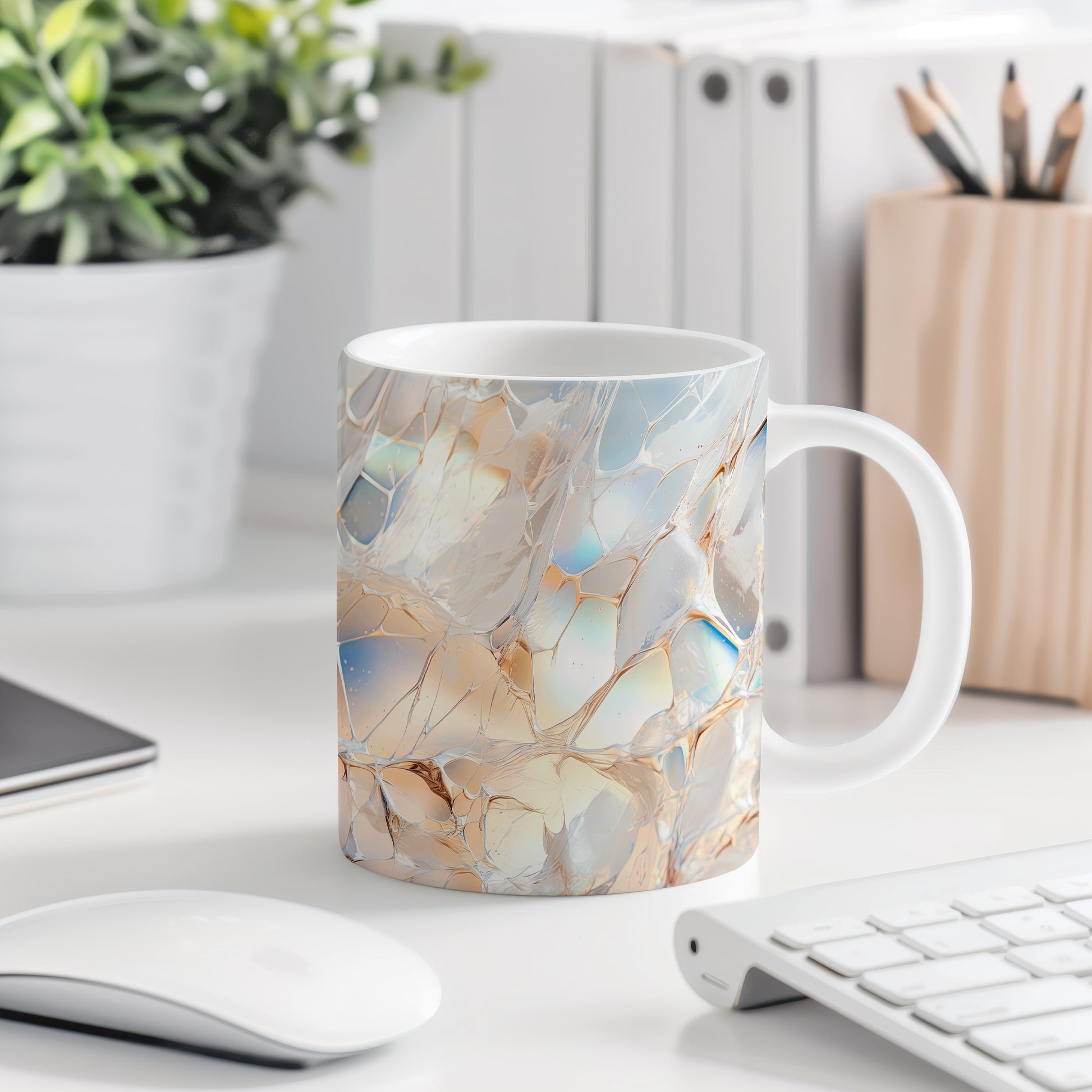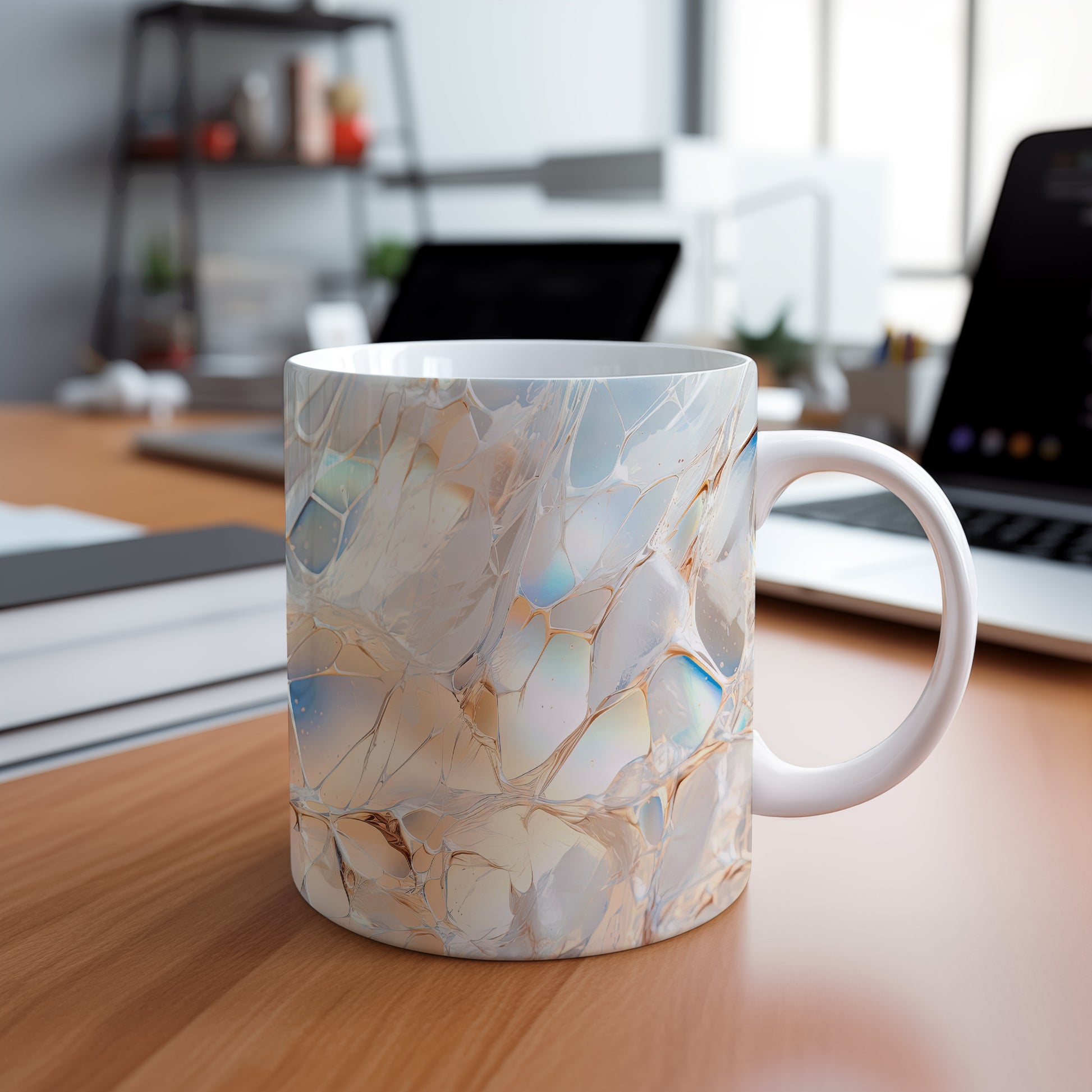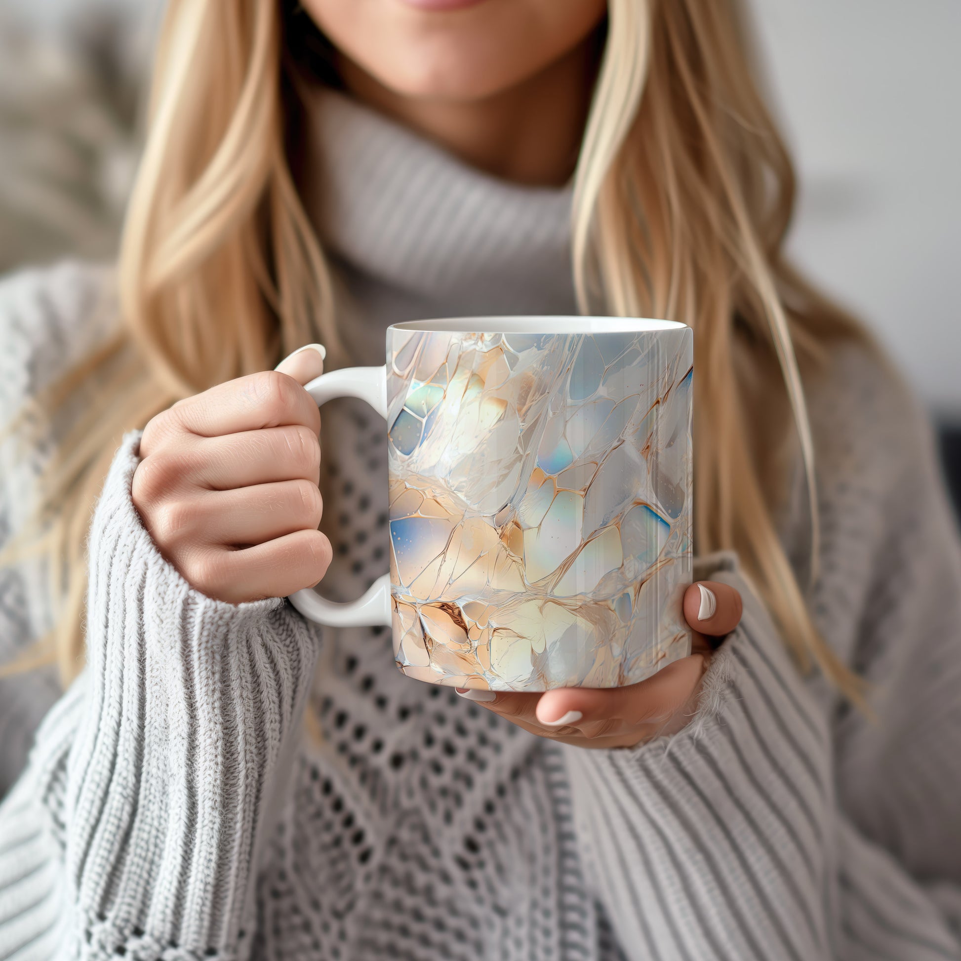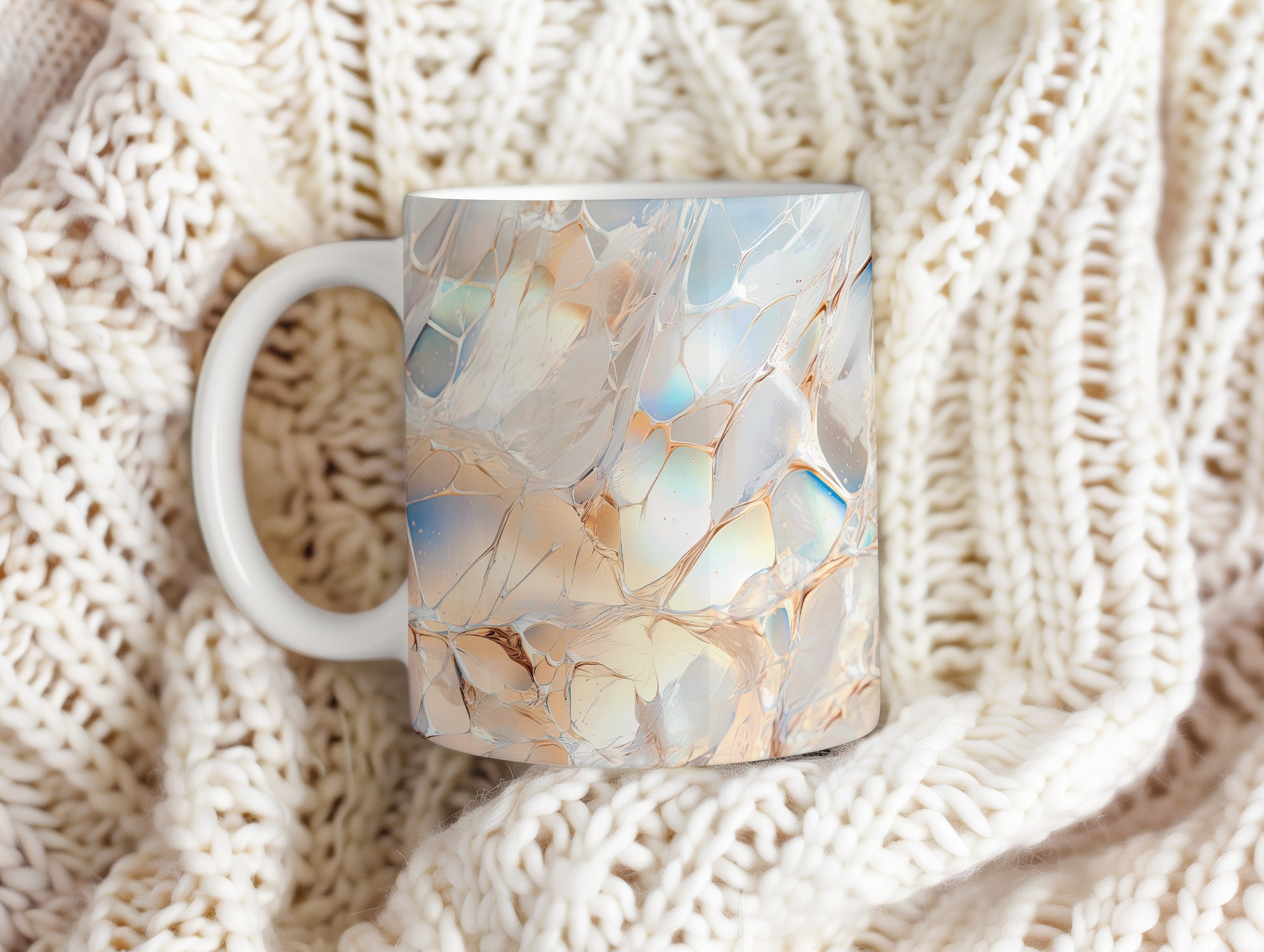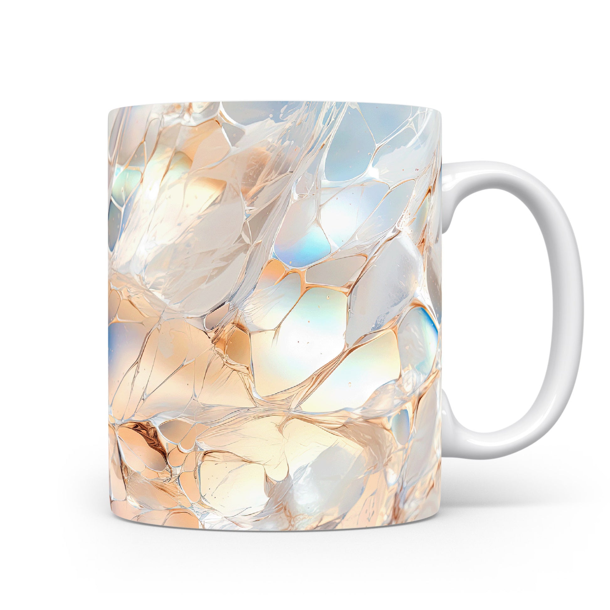 Tento hrnek s krystalickou mozaikou v broskvových a modrých tónech přináší elegantní a moderní design. Je ideální pro milovníky stylového nádobí a skvělým dárkem pro přátele či rodinu. Materiál: keramika. Objem: 330 ml. Vhodné do myčky i mikrovlnky. Díky svému jedinečnému vzhledu se stane ozdobou každého stolu.