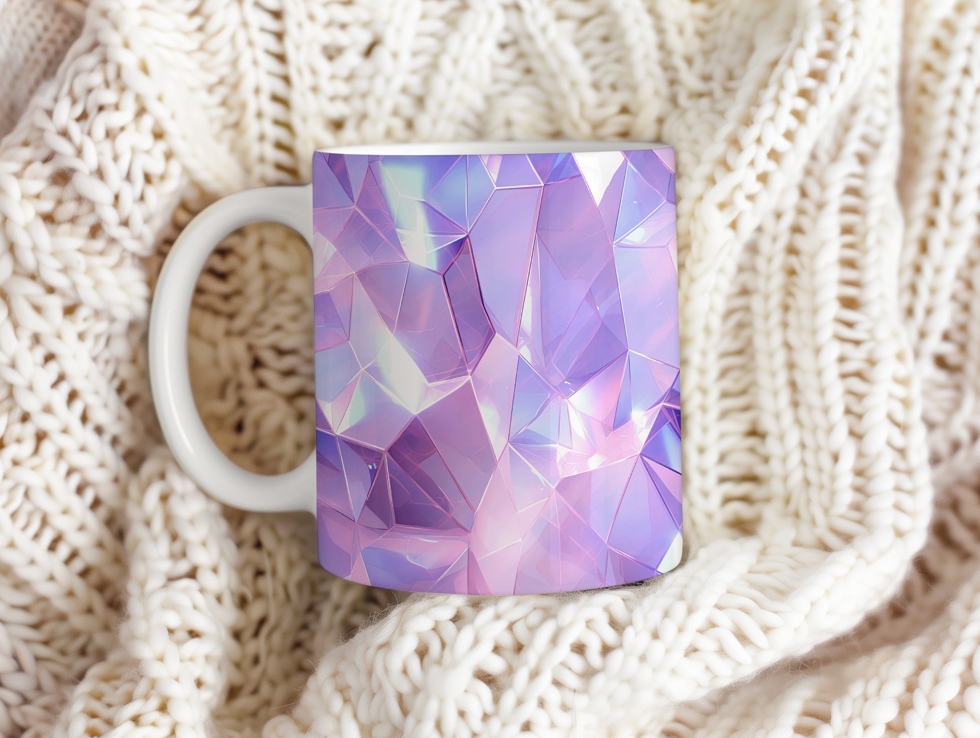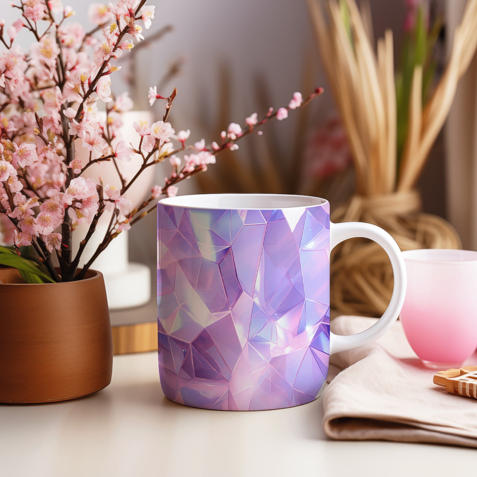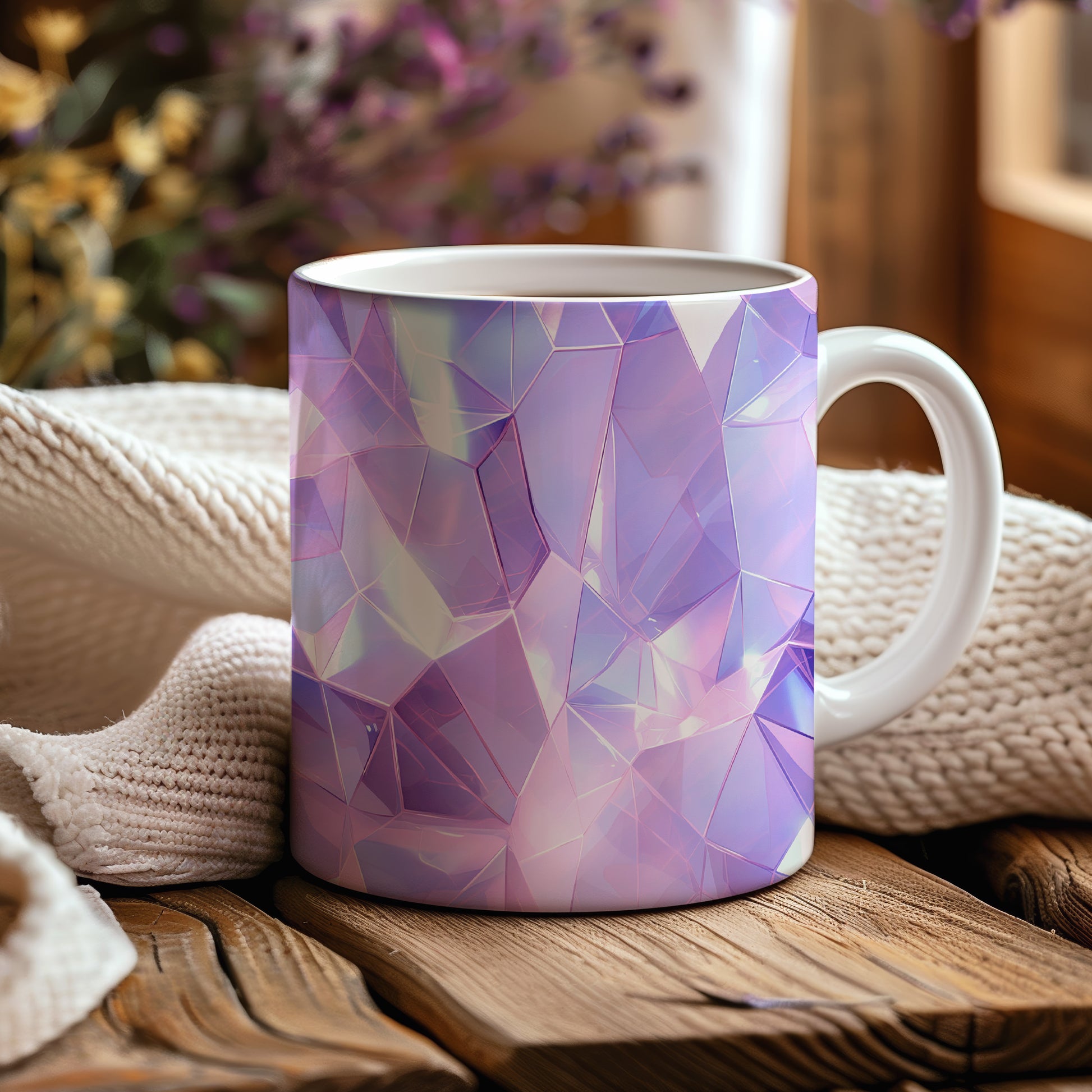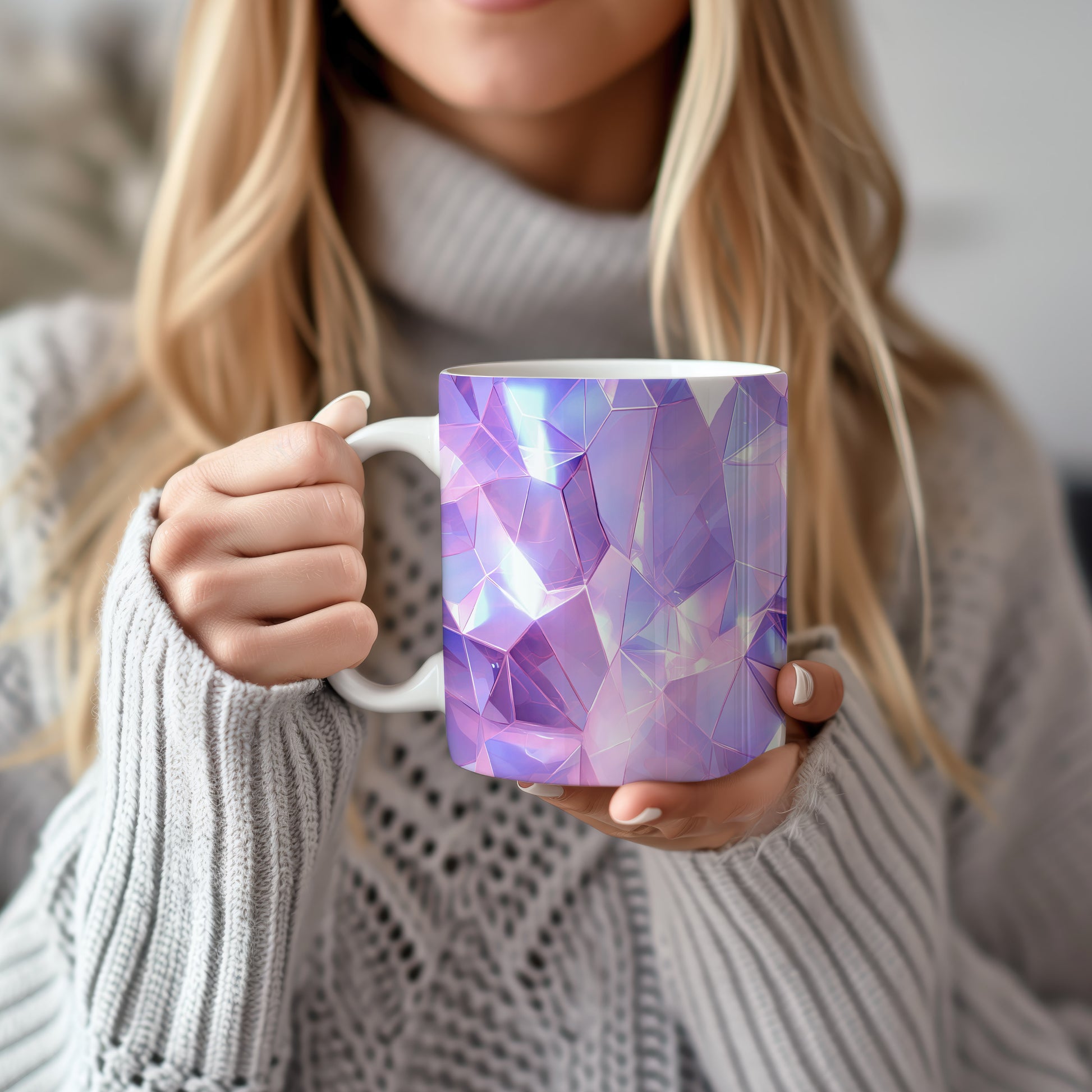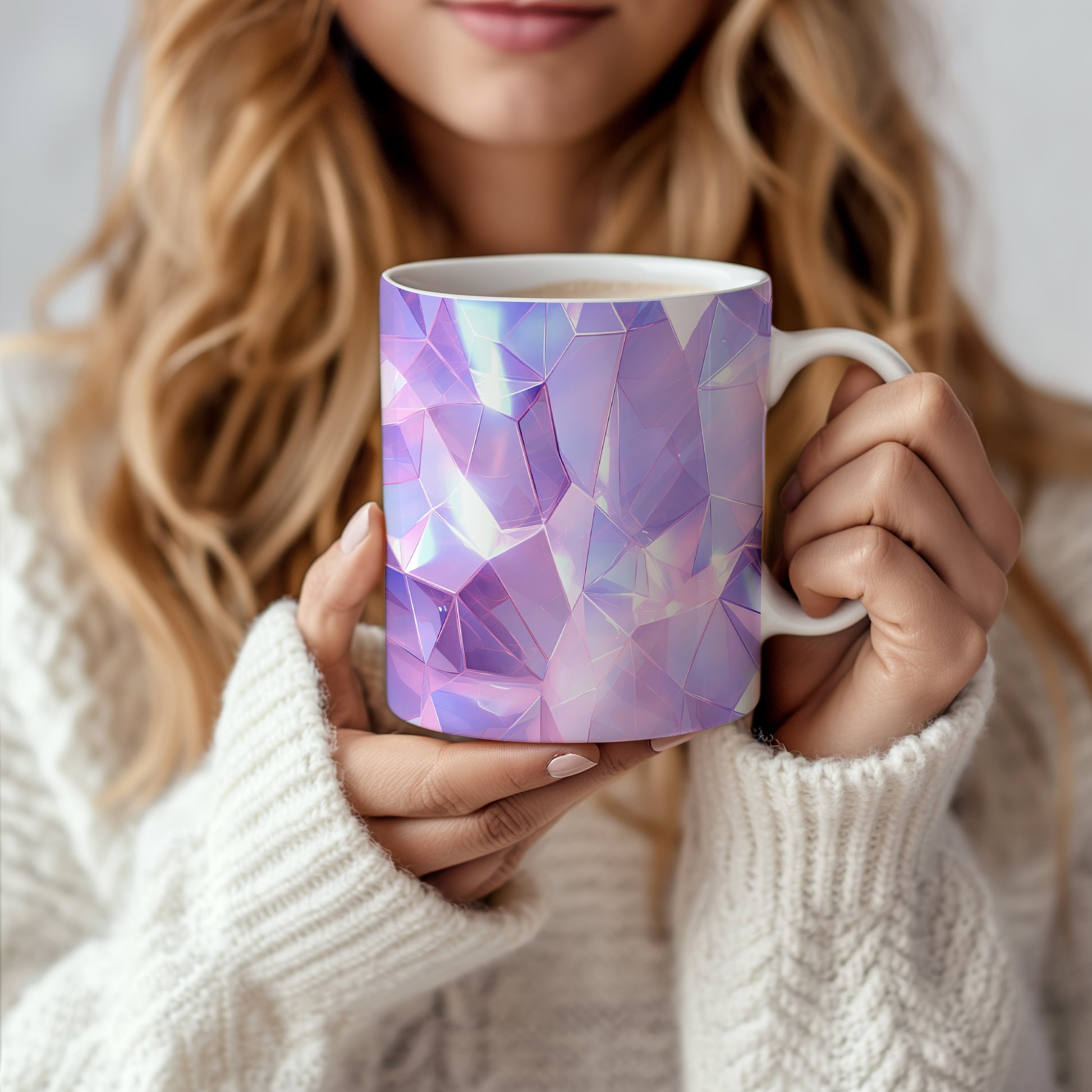 Tento hrnek s krystalickou mozaikou v fialových a růžových tónech přináší elegantní a moderní vzhled. Je ideální pro milovníky originálního designu a skvělým dárkem pro přátele nebo rodinu. Materiál: keramika. Objem: 330 ml. Vhodné do myčky i mikrovlnky. Díky svému lesklému povrchu a 3D efektu dodá každému nápoji jedinečný šarm.