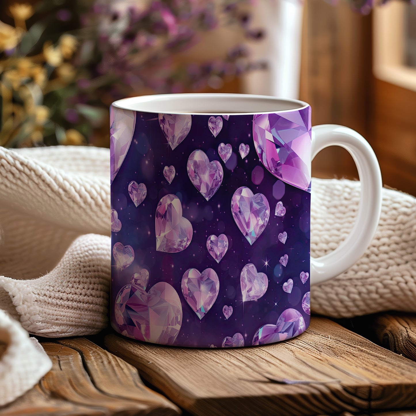 Hrnek s krystalickou mozaikou v fialových tónech – originálním motivem