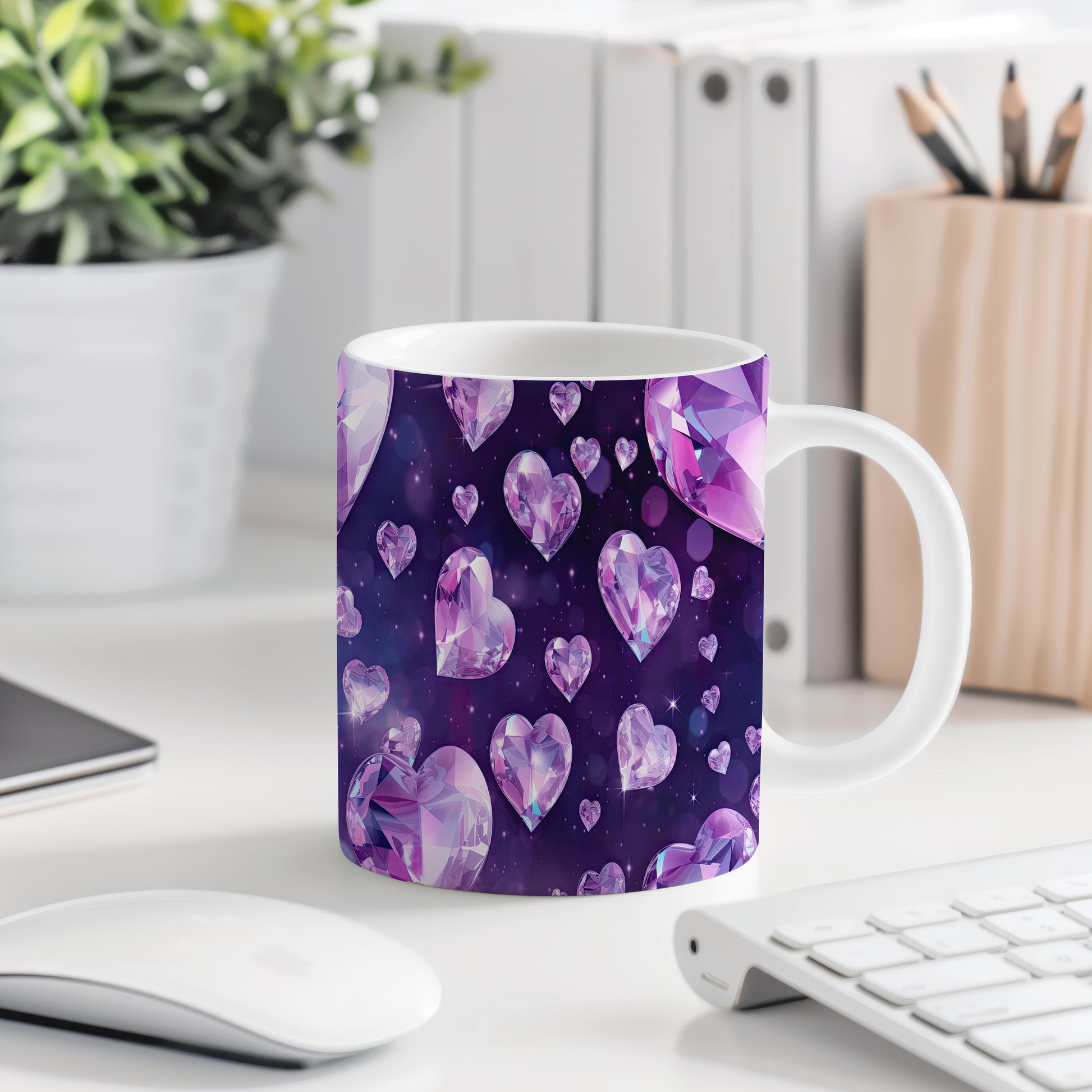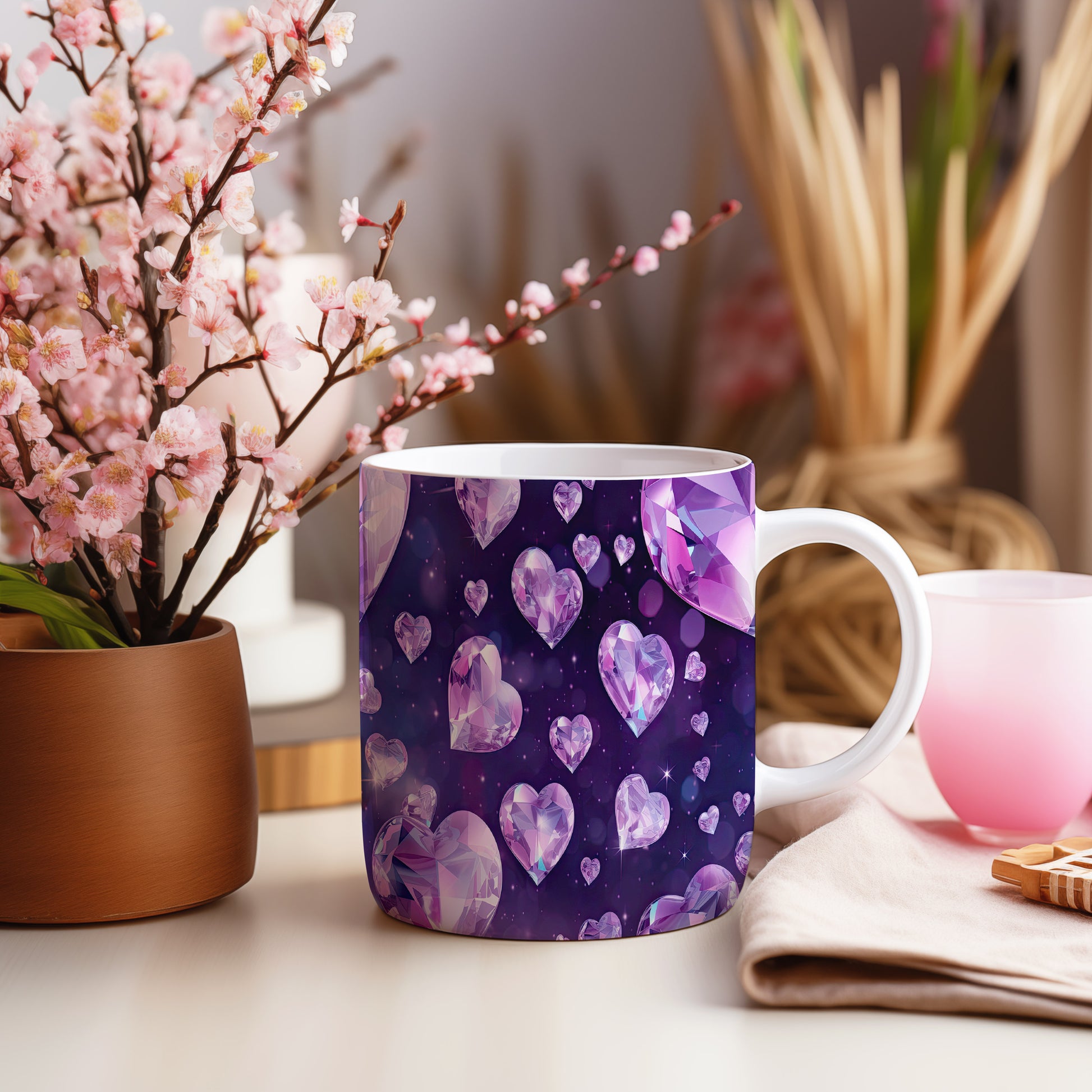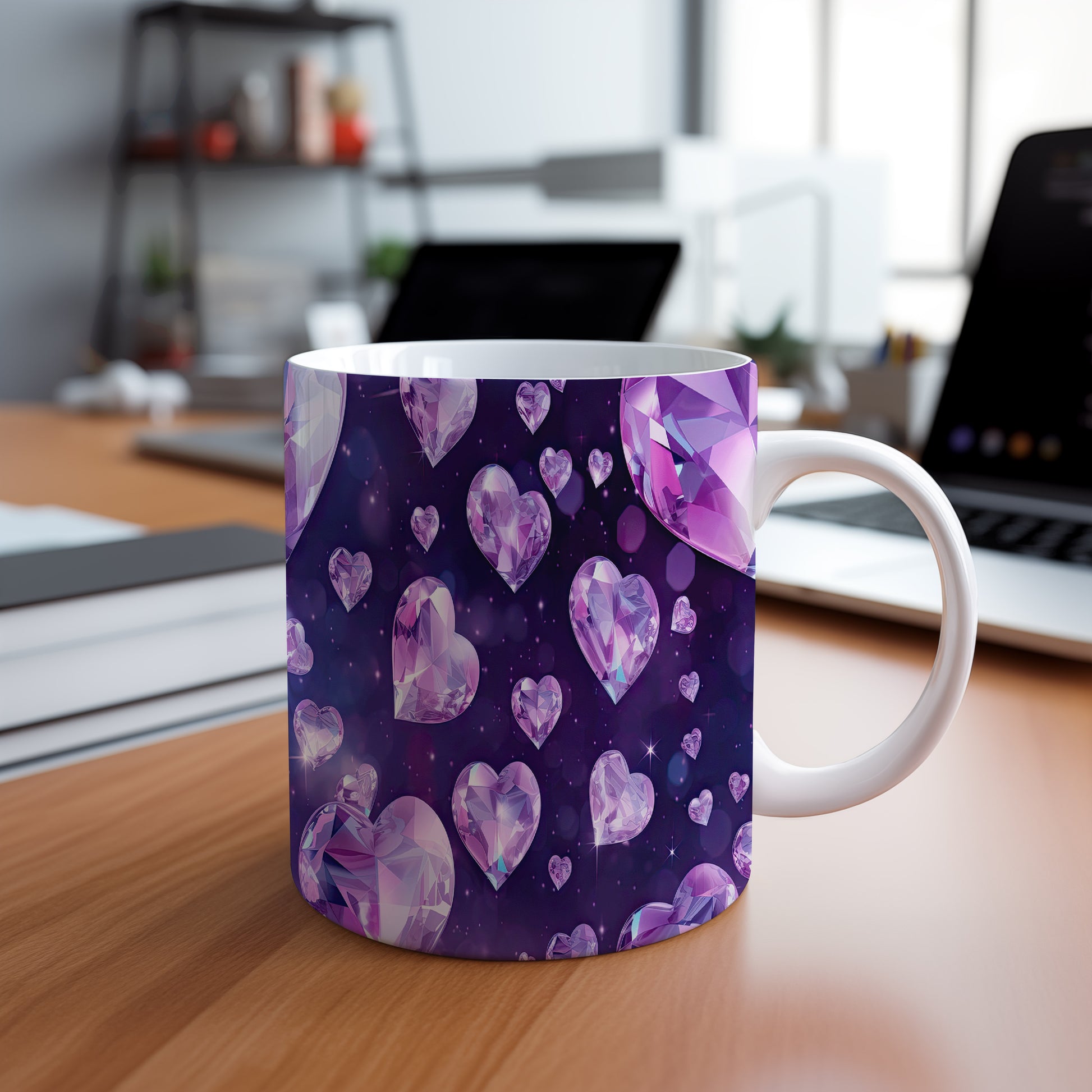 Tento hrnek s krystalickou mozaikou v fialových a růžových odstínech přináší elegantní a moderní design. Je ideální pro milovníky originálního nádobí a skvělým dárkem pro přátele či rodinu. Materiál: keramika. Objem: 330 ml. Vhodné do myčky i mikrovlnky. Díky svému jedinečnému vzhledu se stane ozdobou každého stolu.