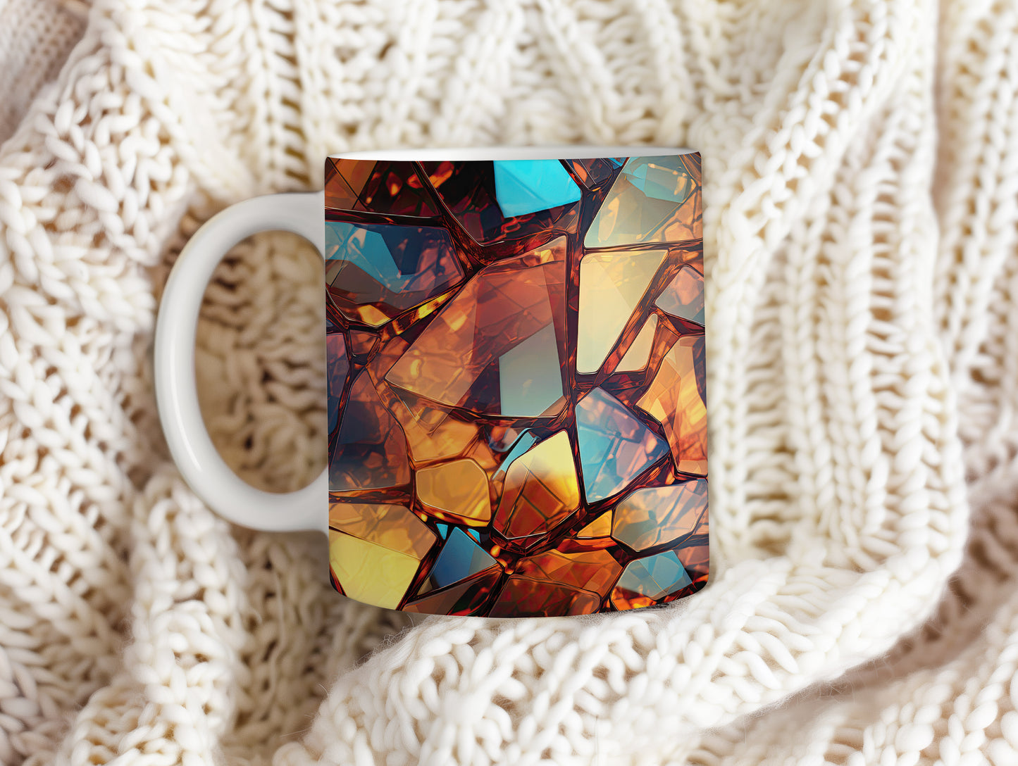 Hrnek s krystalickou mozaikou v hnědých a modrých tónech