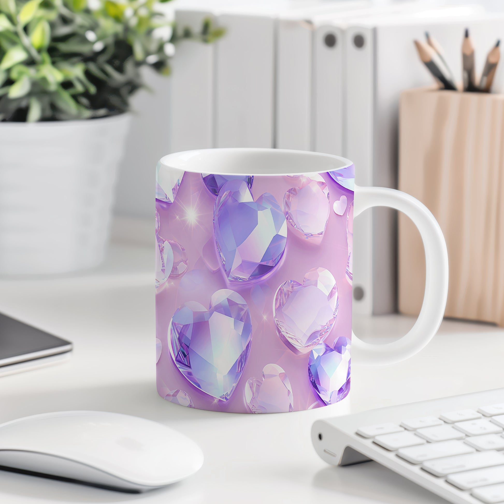 Tento hrnek s krystalickou mozaikou v jemných růžových a fialových tónech přináší elegantní styl do každodenního pití. Je ideální pro milovníky originálního designu a skvělým dárkem pro přátele či rodinu. Materiál: keramika. Objem: 330 ml. Vhodné do myčky i mikrovlnky. Díky svému jedinečnému vzhledu přidá každému nápoji na atraktivitě.