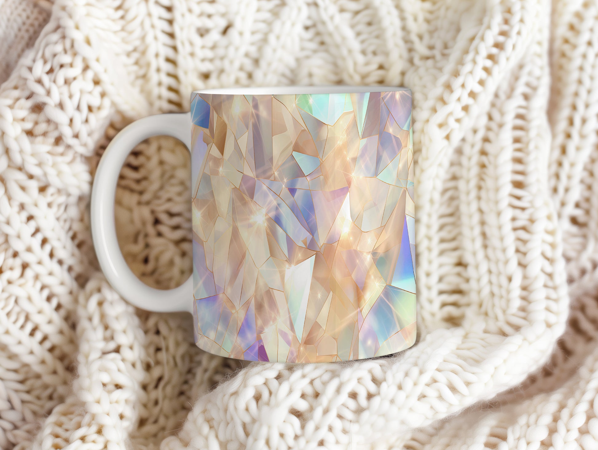 Hrnek s krystalickou mozaikou v jemných tónech
