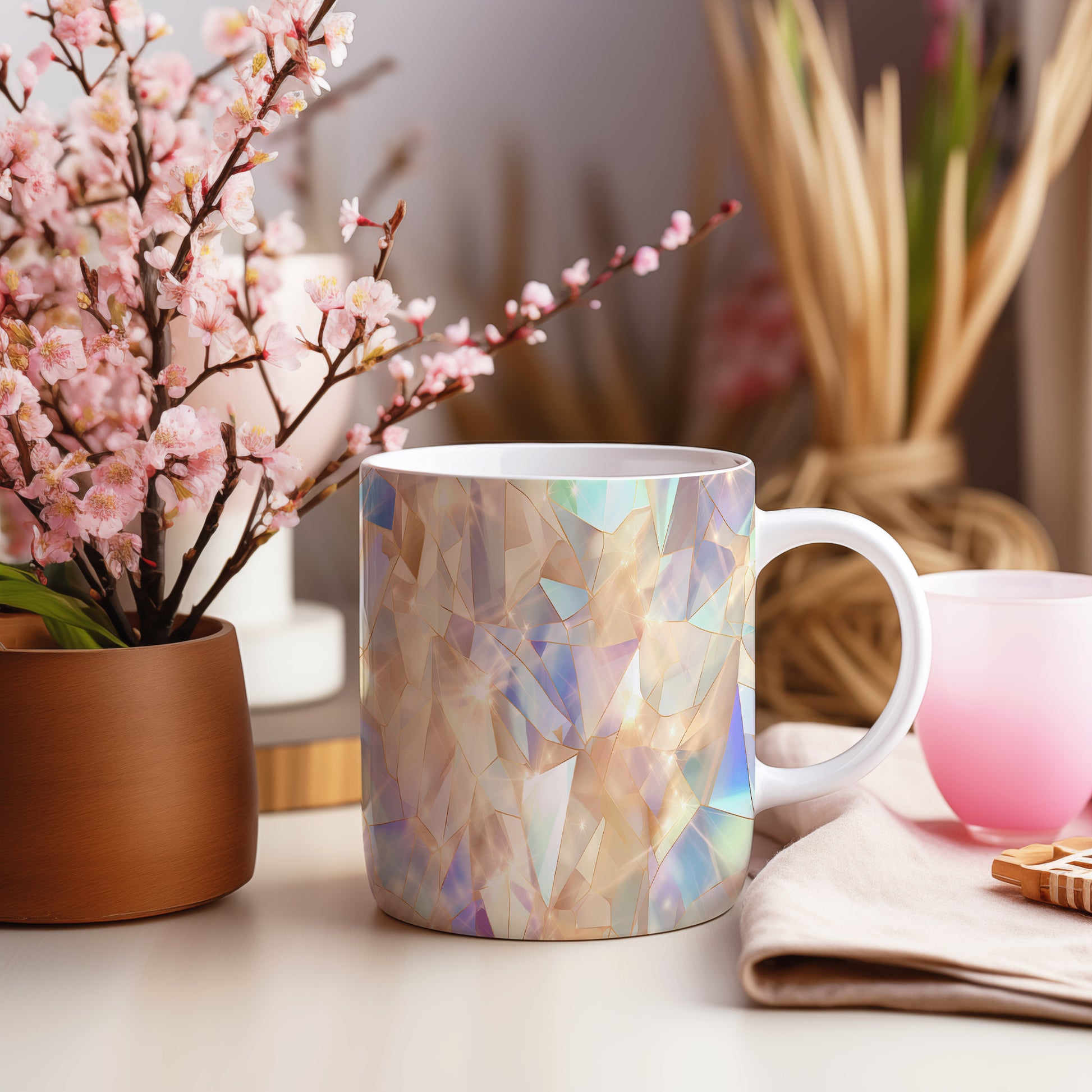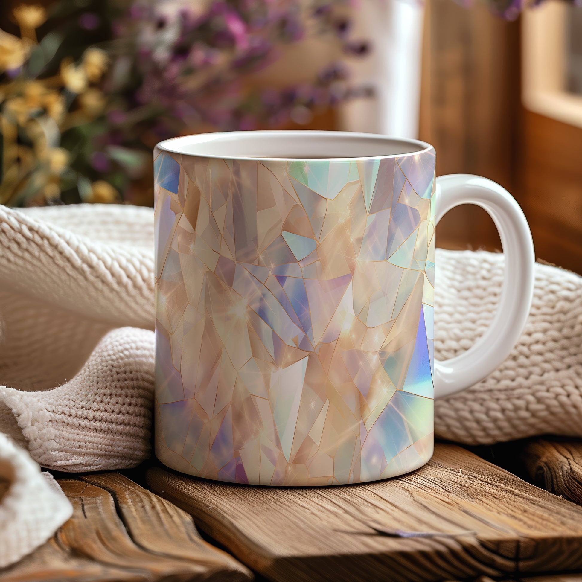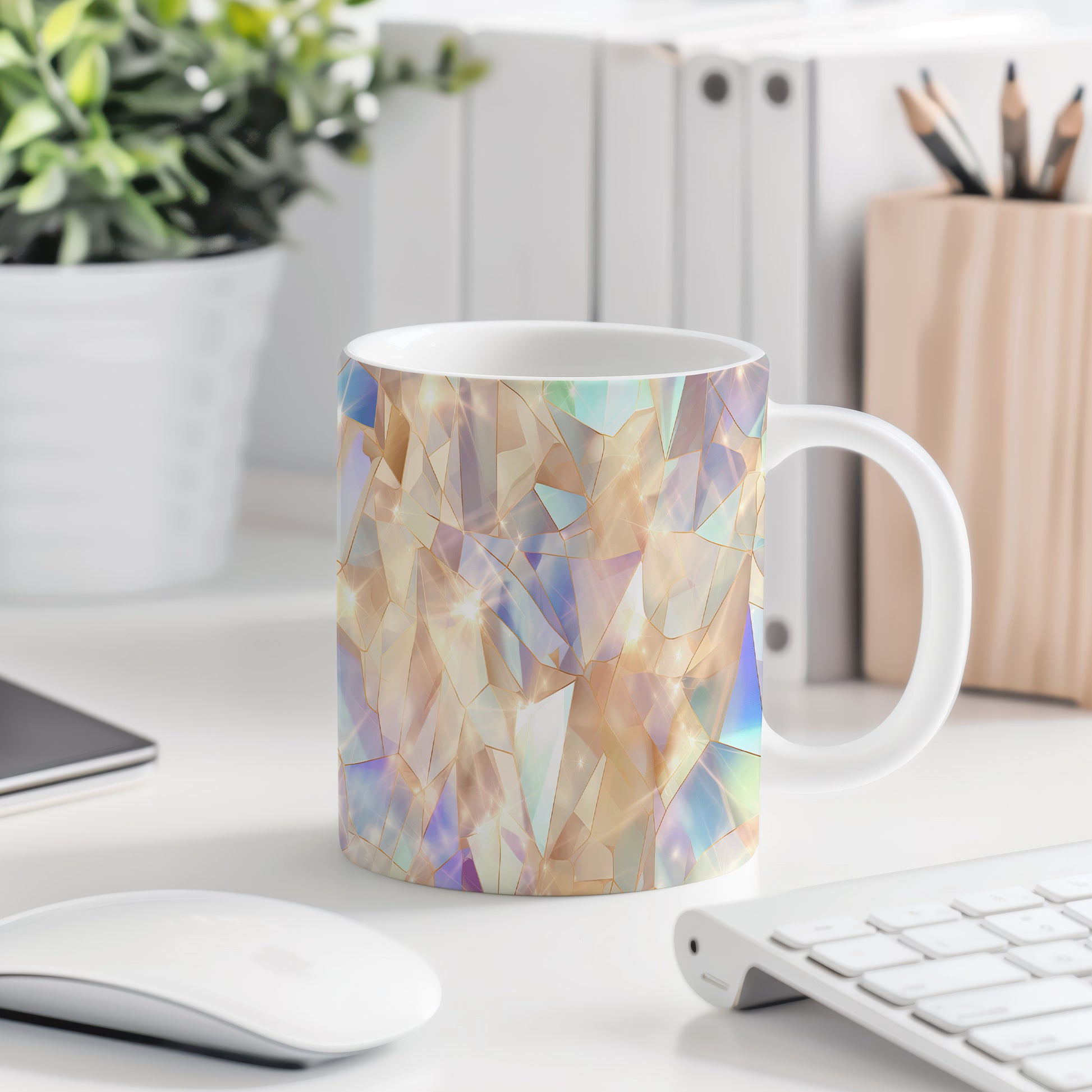 Tento hrnek s motivem krystalické mozaiky v jemných a pastelových barvách je skvělým doplňkem pro každého milovníka originálního designu. Je ideální jako dárek pro přátele nebo rodinu, kteří ocení jedinečné kousky. Materiál: keramika. Objem: 330 ml. Vhodné do myčky i mikrovlnky. Používáním tohoto hrnku si užijete nejen krásný vzhled, ale i praktické vlastnosti.
