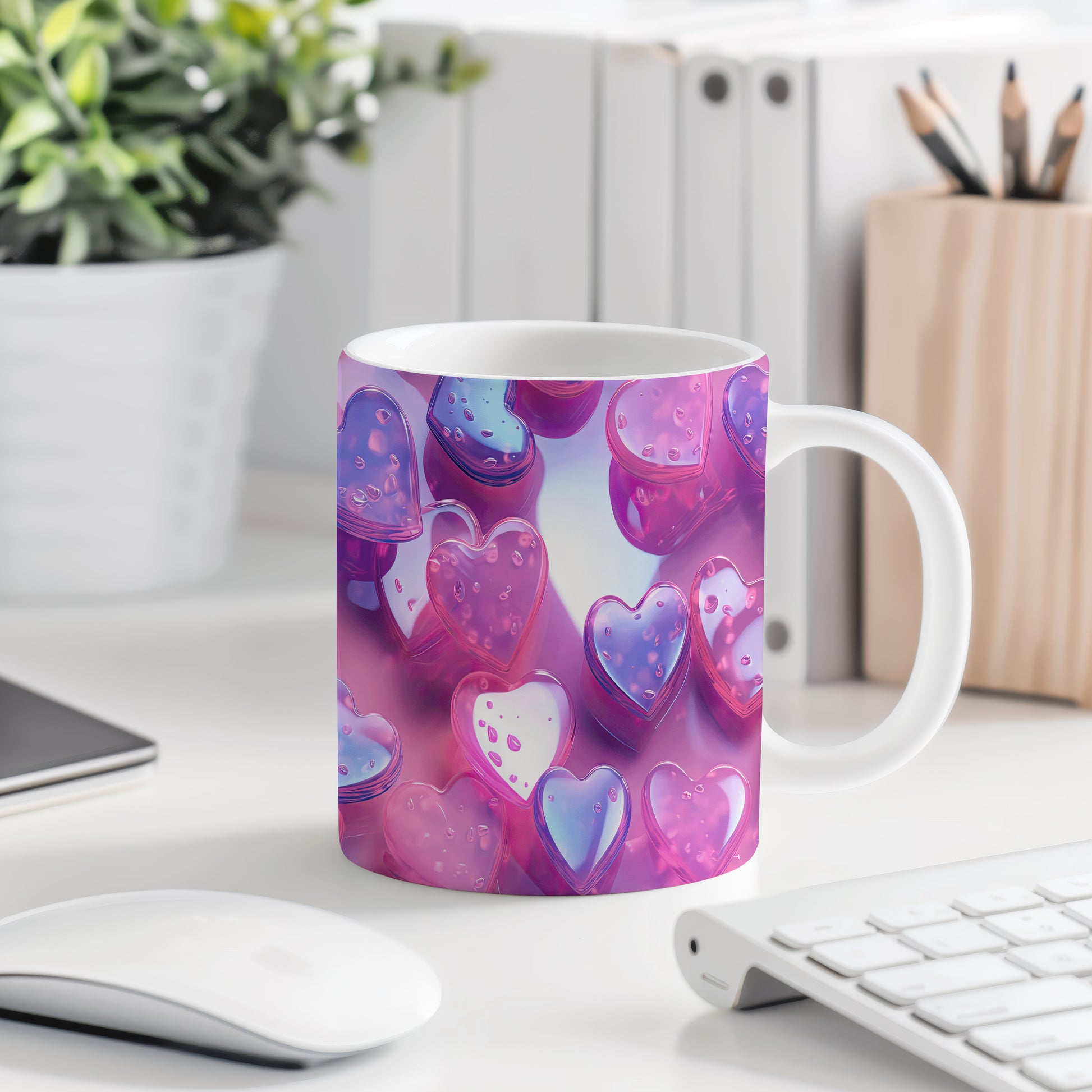 Hrnek s motivem krystalické mozaiky v růžových a modrých tónech je skvělou volbou pro milovníky moderního designu. Tento stylový kousek potěší každého, kdo hledá originální dárek pro přátele nebo rodinu. Materiál: keramika. Objem: 330 ml. Vhodné do myčky i mikrovlnky. Díky svému jedinečnému vzhledu a praktičnosti se stane oblíbeným společníkem při každém šálku kávy nebo čaje.