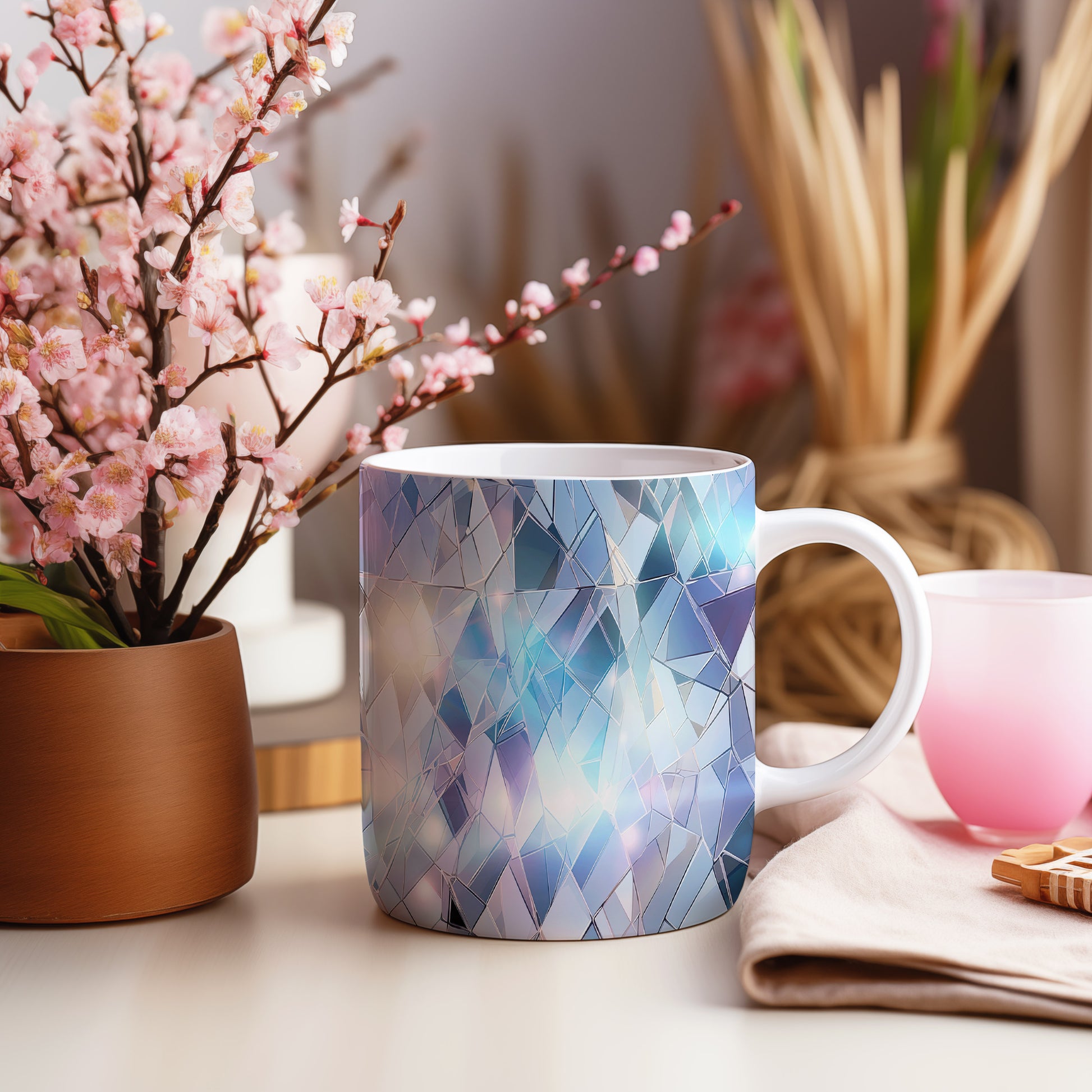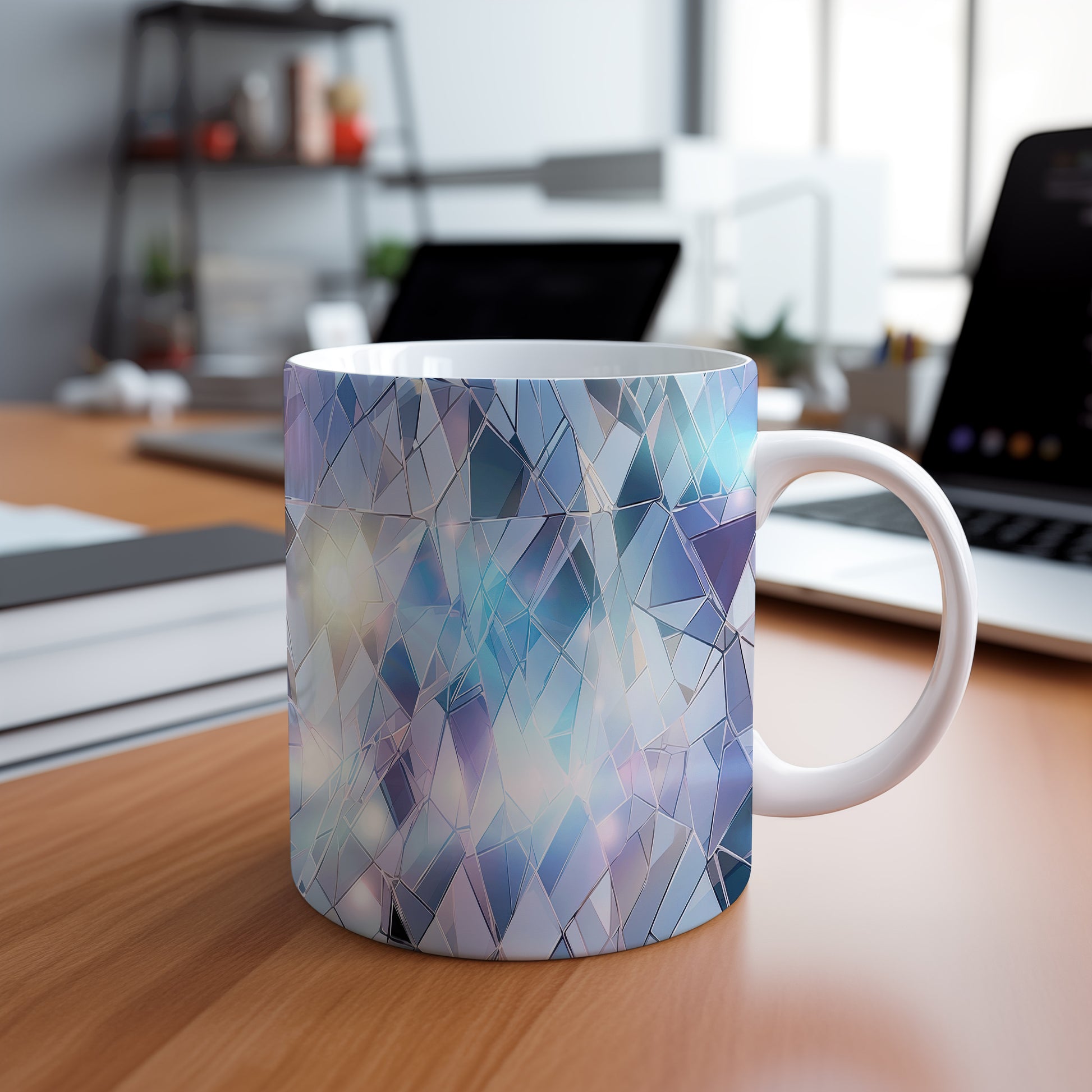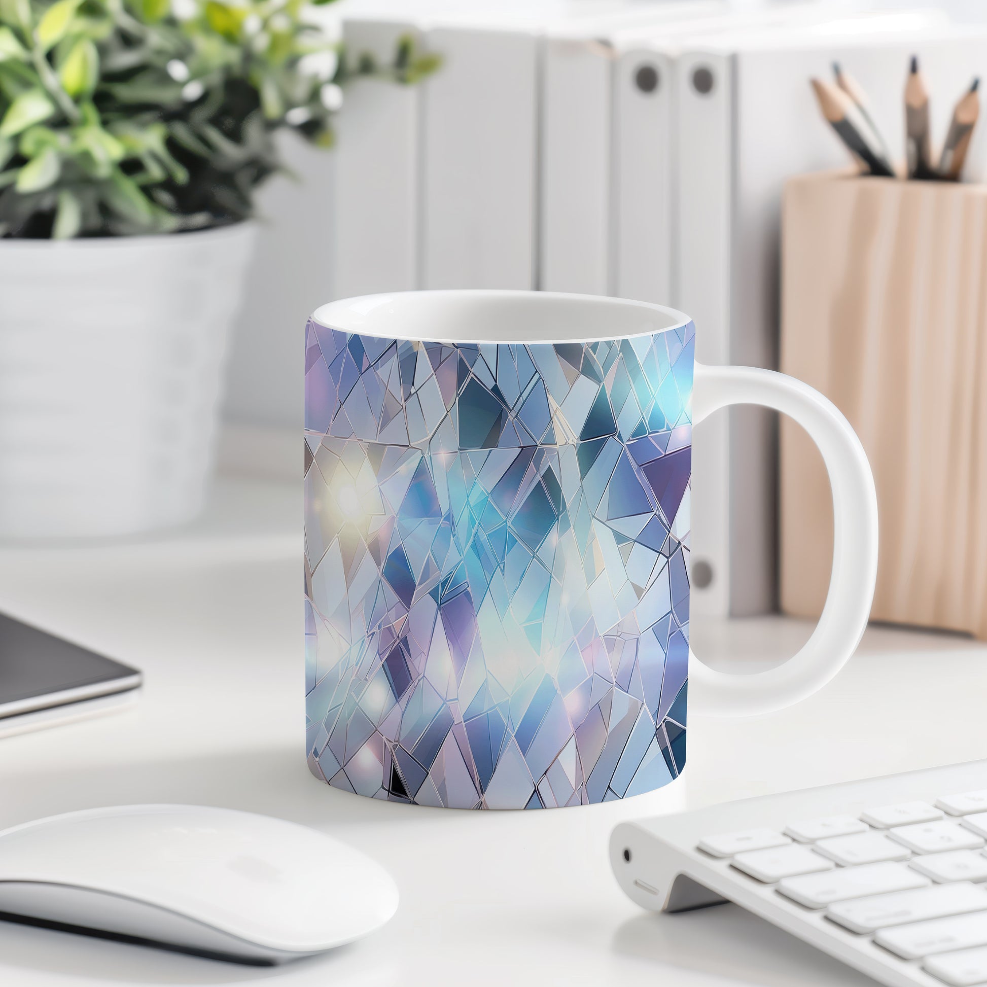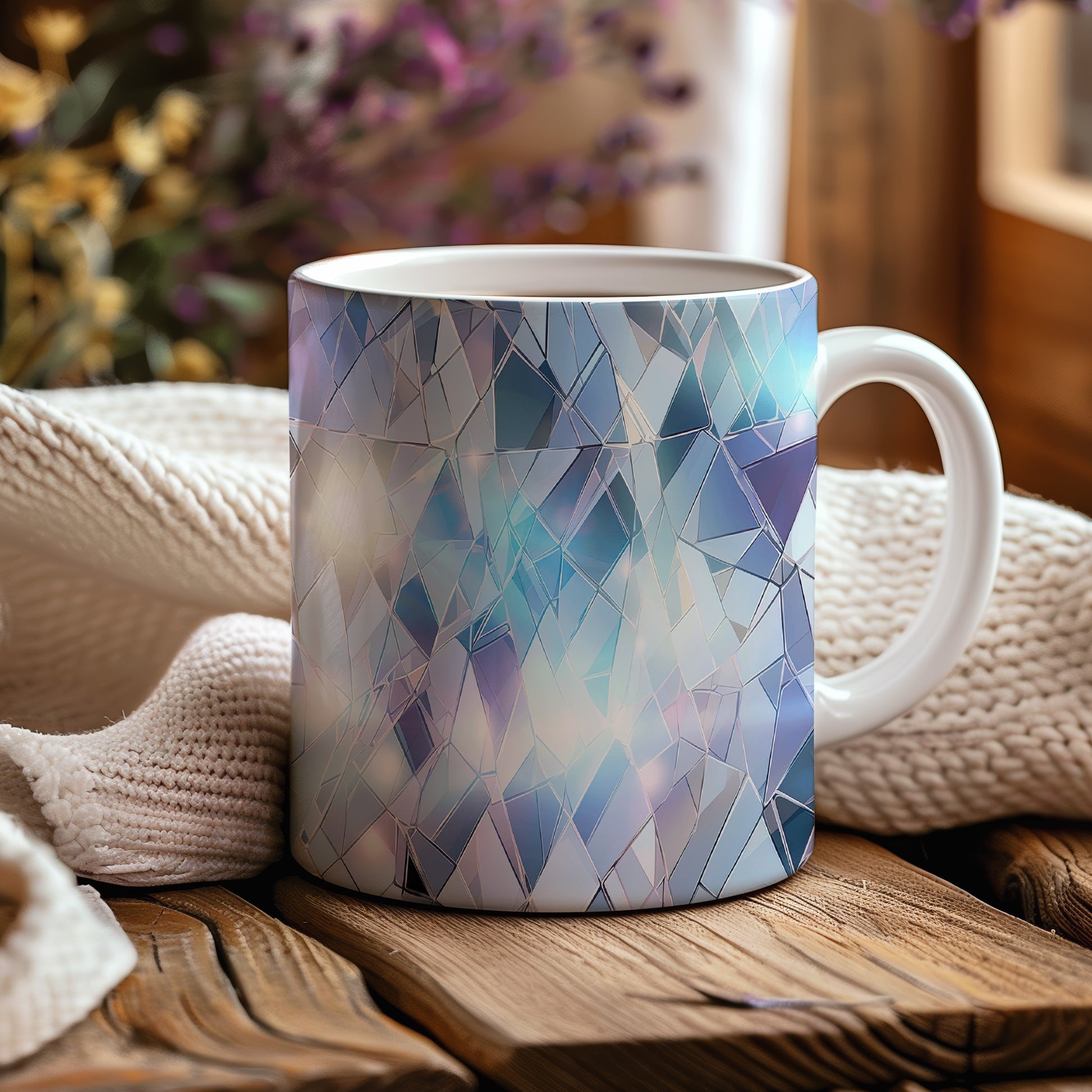 Hrnek s krystalickou mozaikou v modré a fialové barvě je stylovým doplňkem pro každého milovníka originálního designu. Tento hrnek je skvělým dárkem pro přátele nebo rodinu, kteří ocení jedinečné umělecké kousky. Materiál: keramika. Objem: 330 ml. Vhodné do myčky i mikrovlnky. Díky svému jedinečnému vzhledu přináší do každodenního pití kávy nebo čaje radost a inspiraci.
