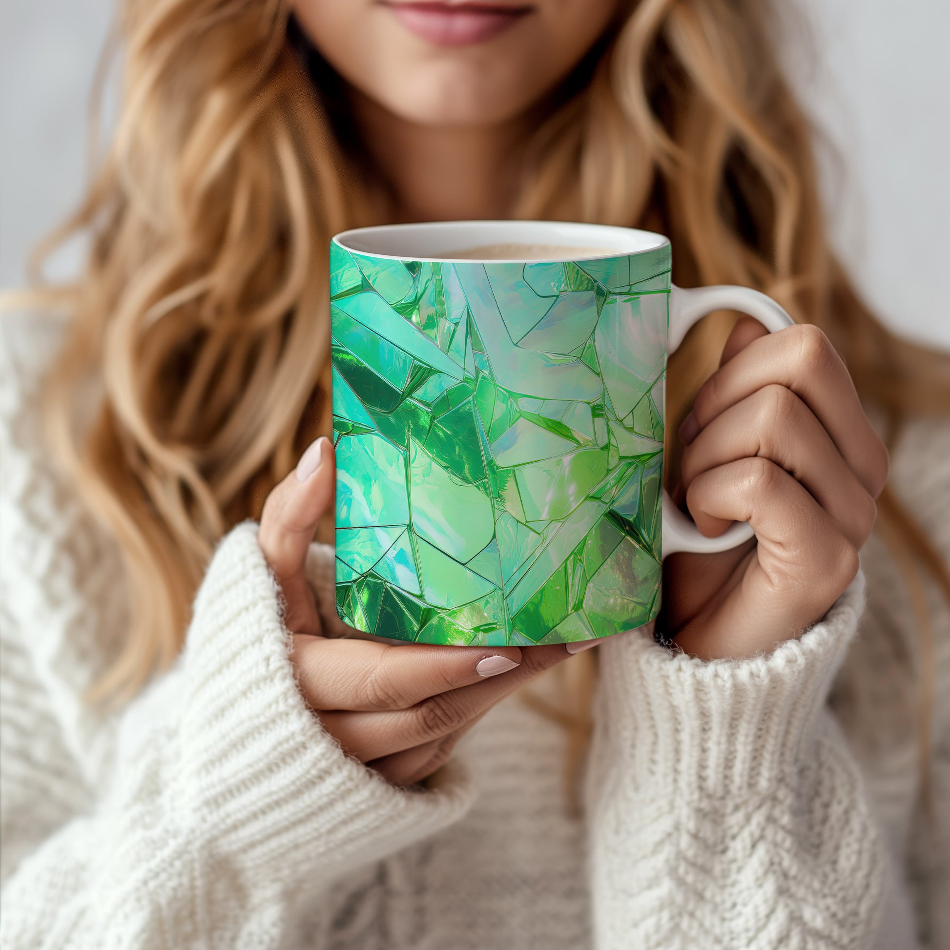 Hrnek s krystalickou mozaikou v zelených a modrých tónech přináší jedinečný vizuální zážitek. Je ideální pro milovníky originálního designu a skvělým dárkem pro přátele či rodinu. Materiál: keramika. Objem: 330 ml. Vhodné do myčky i mikrovlnky. Tento hrnek dodá vašemu pití styl a potěší oko každého, kdo si ho vezme do ruky.