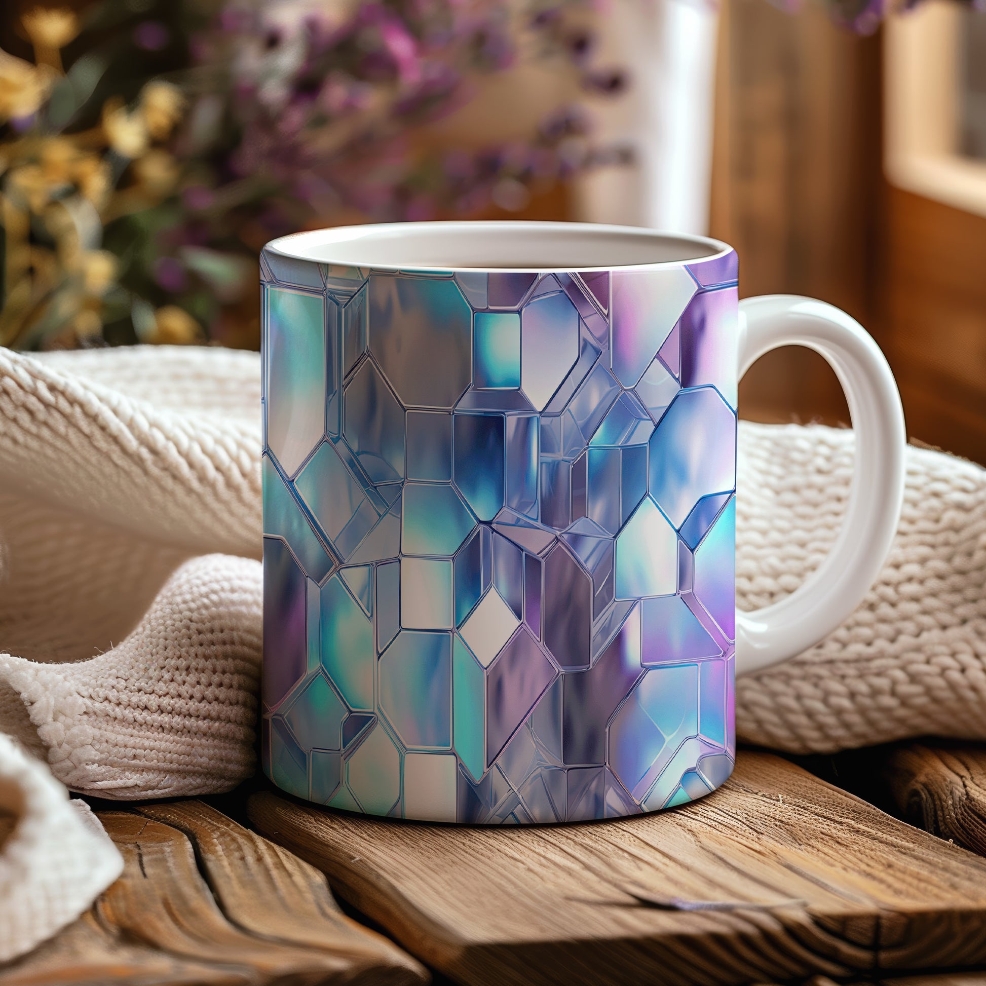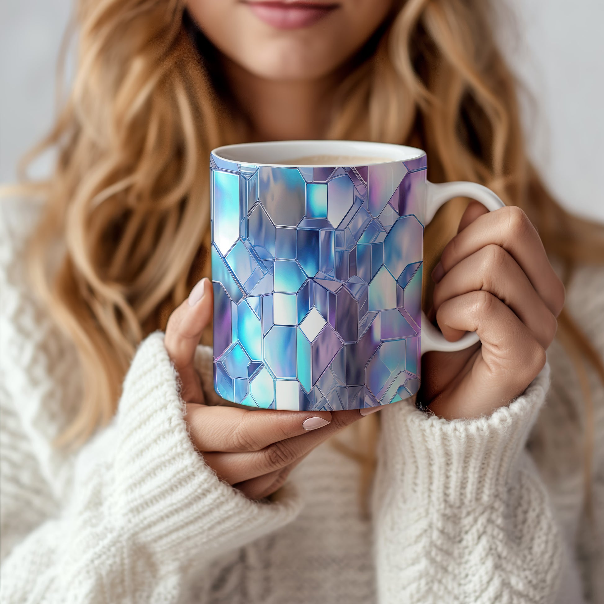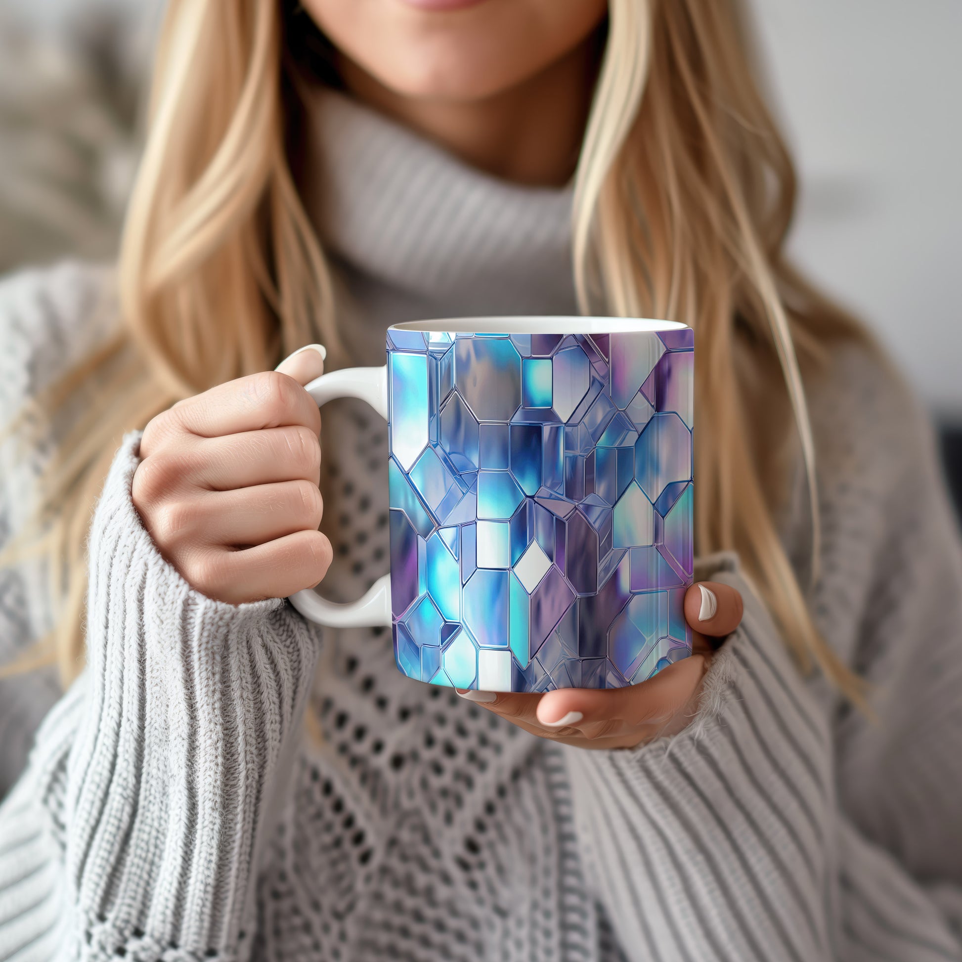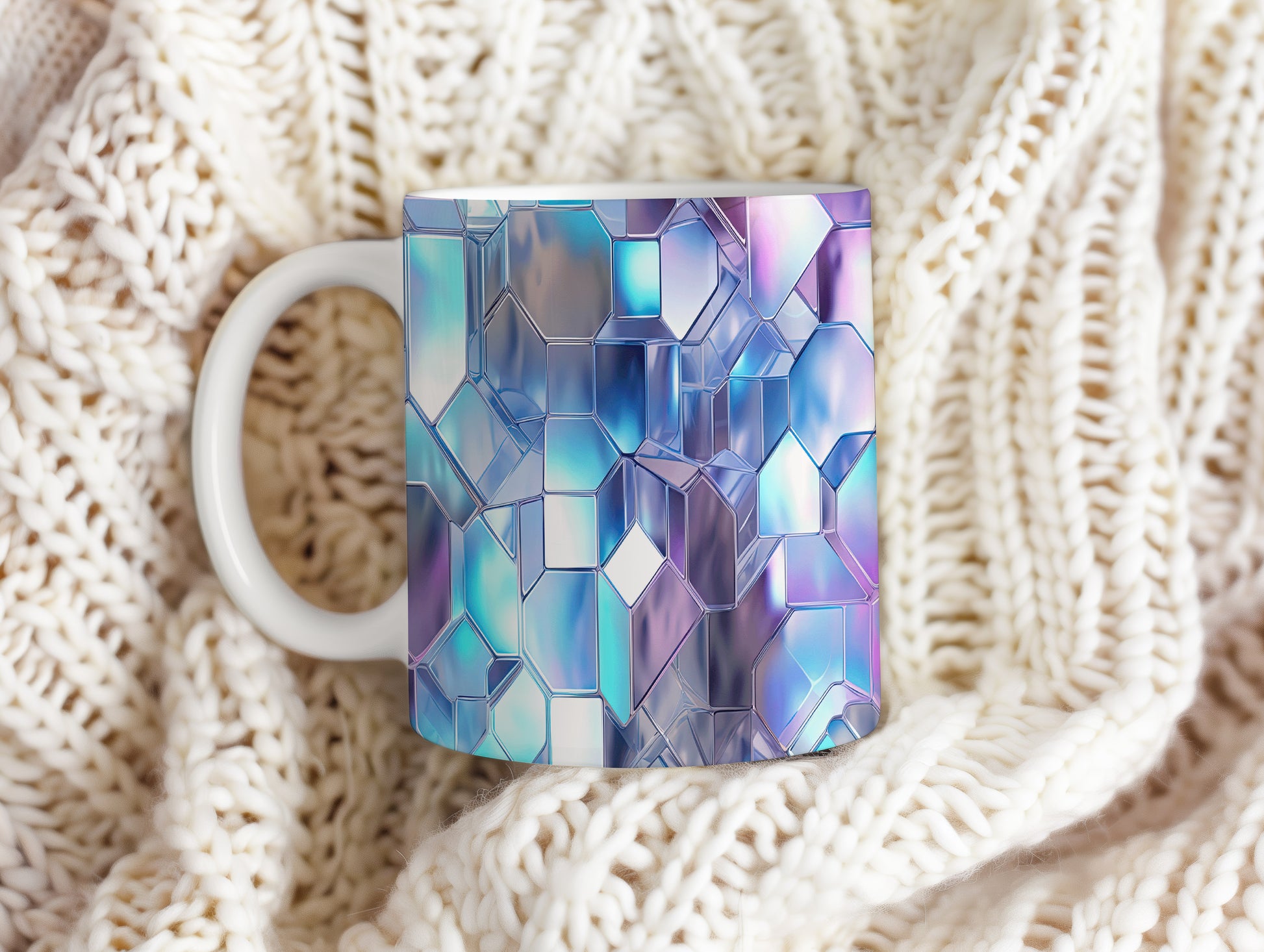 Hrnek s krystalickou mozaikou v modrých a fialových tónech – 3D efektem