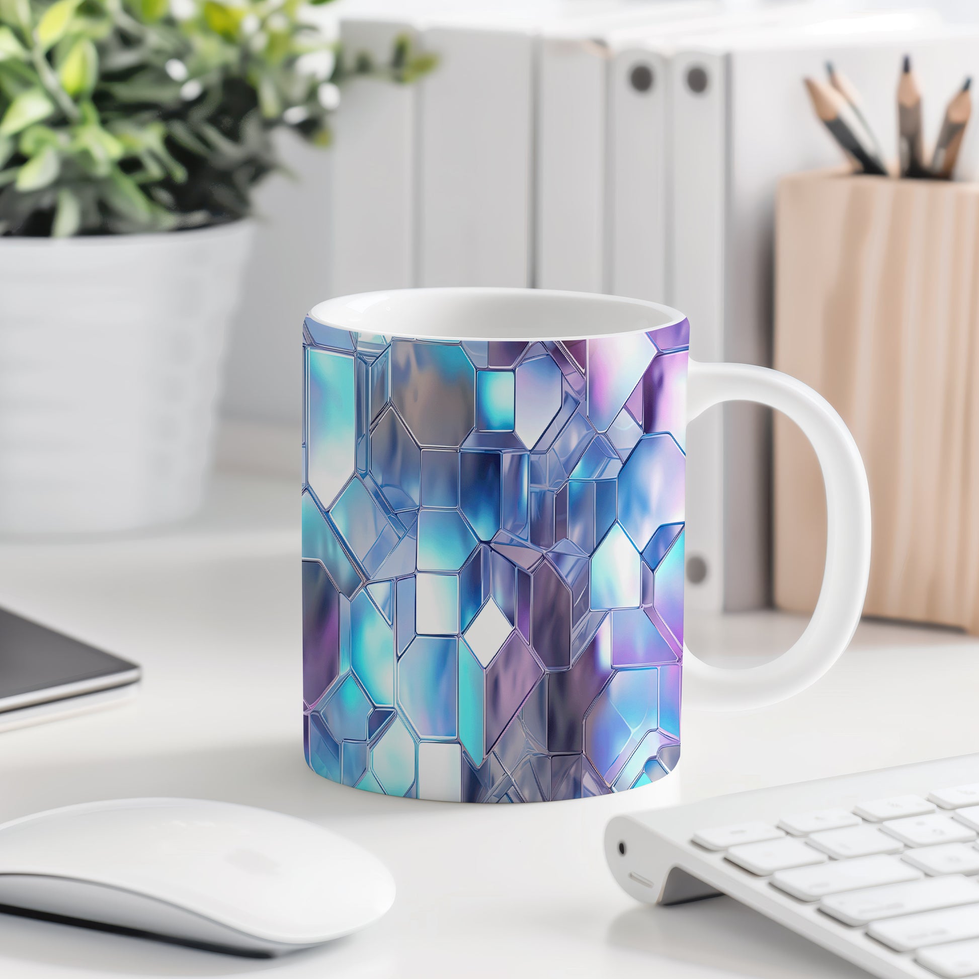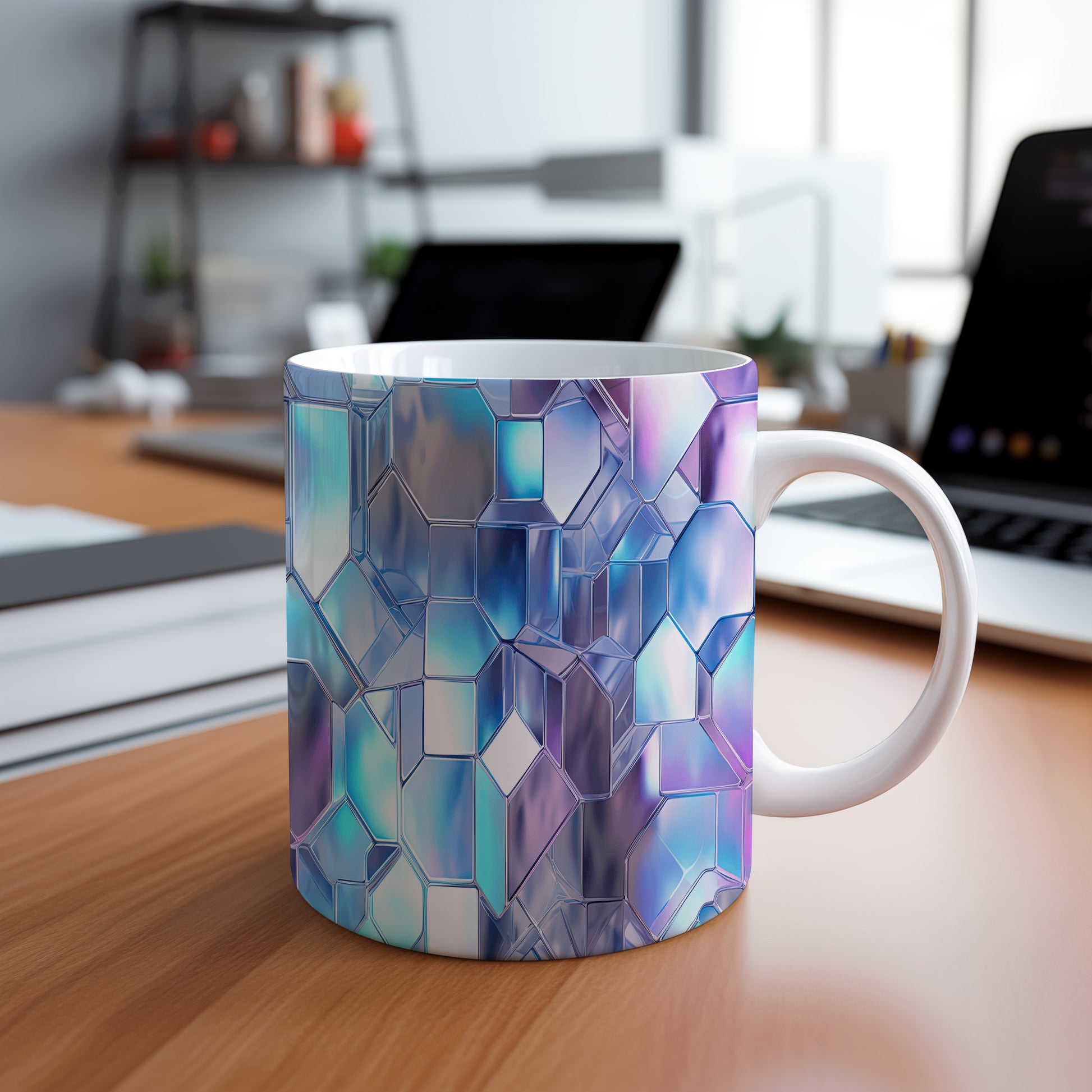 Tento hrnek s krystalickou mozaikou v modrých a fialových tónech přináší moderní a stylový design. Je ideální pro milovníky umění a originálních kousků, skvěle se hodí jako dárek pro přátele nebo rodinu. Materiál: keramika. Objem: 330 ml. Vhodné do myčky i mikrovlnky. Používáním tohoto hrnku si užijete nejen skvělý vzhled, ale i pohodlné pití oblíbených nápojů.