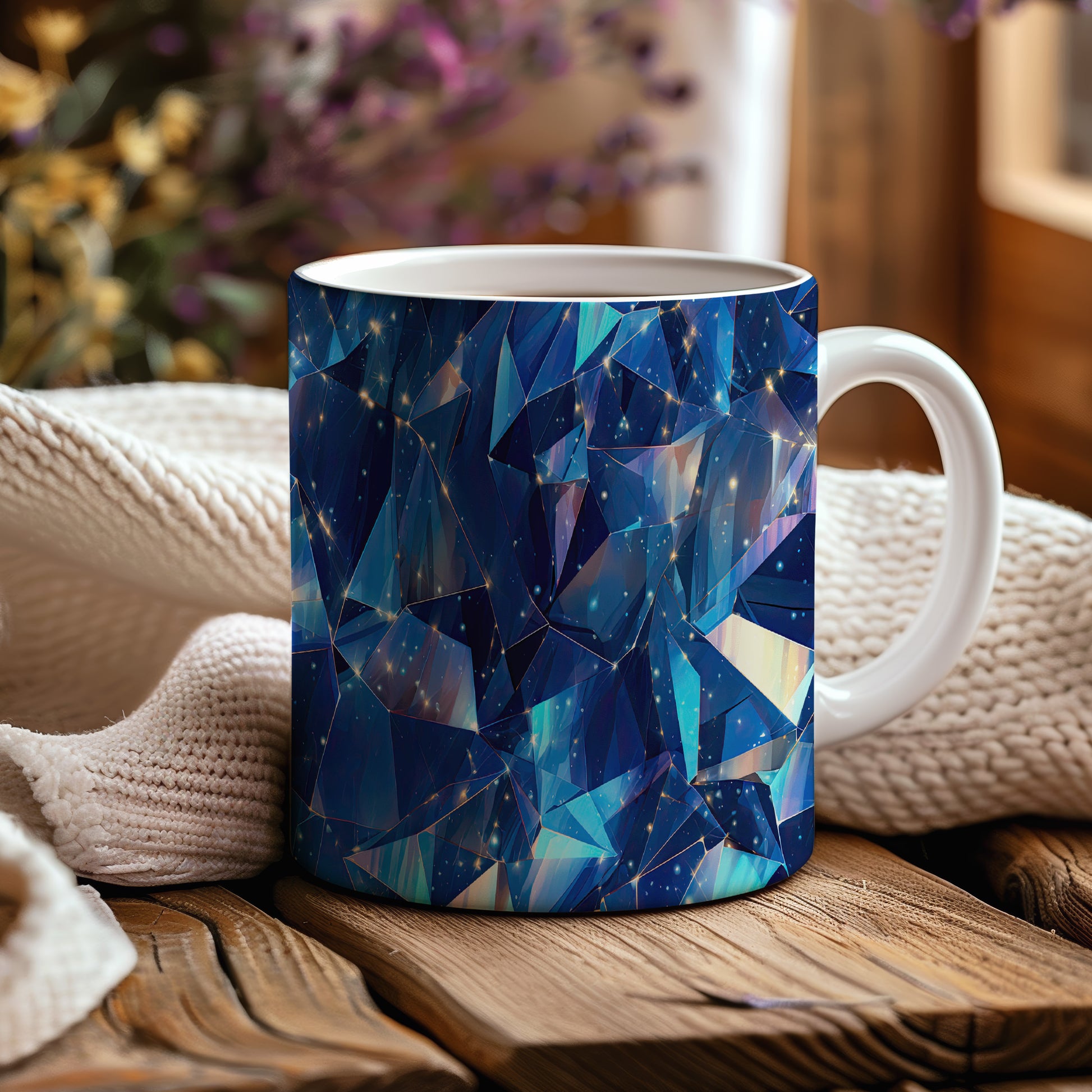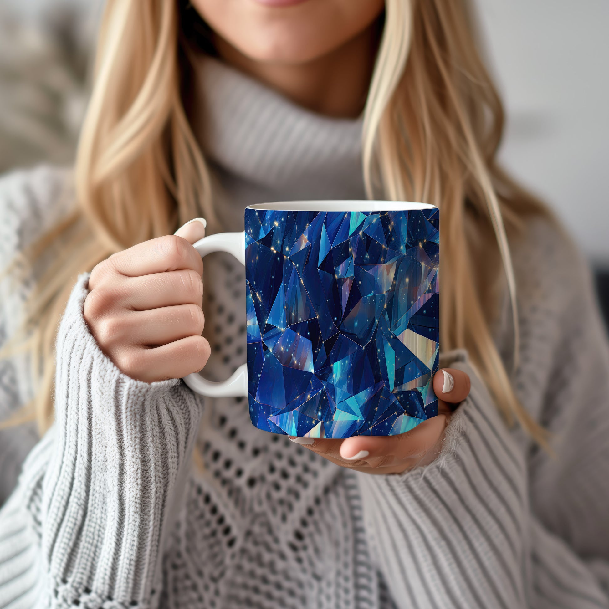 Tento hrnek s motivem krystalické mozaiky v modrých a tyrkysových tónech přináší do vašeho domova elegantní a moderní styl. Je ideální pro milovníky designu a skvělým dárkem pro přátele či rodinu. Materiál: keramika. Objem: 330 ml. Vhodné do myčky i mikrovlnky. Díky svému jedinečnému vzhledu a 3D efektu dodá každému nápoji šmrnc.