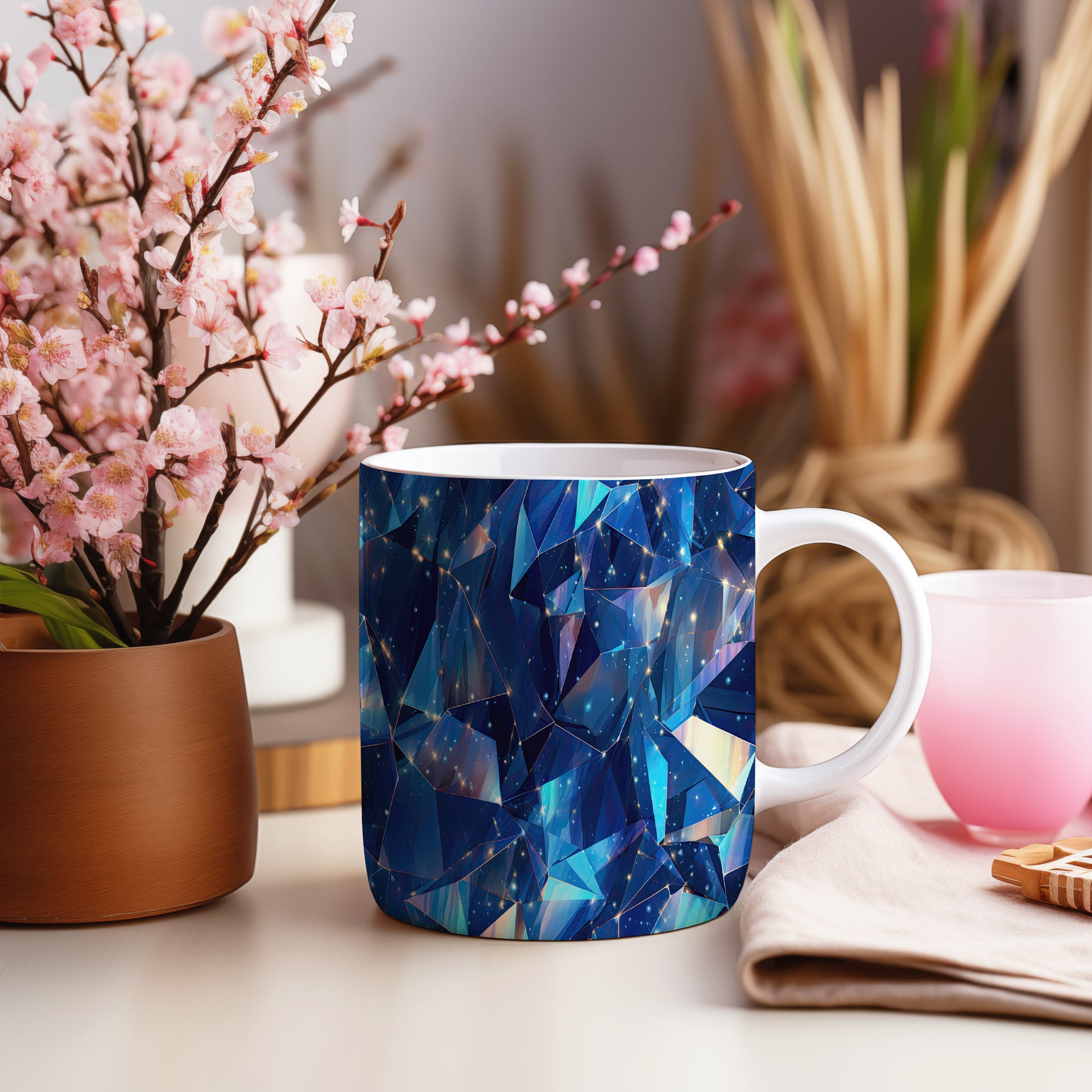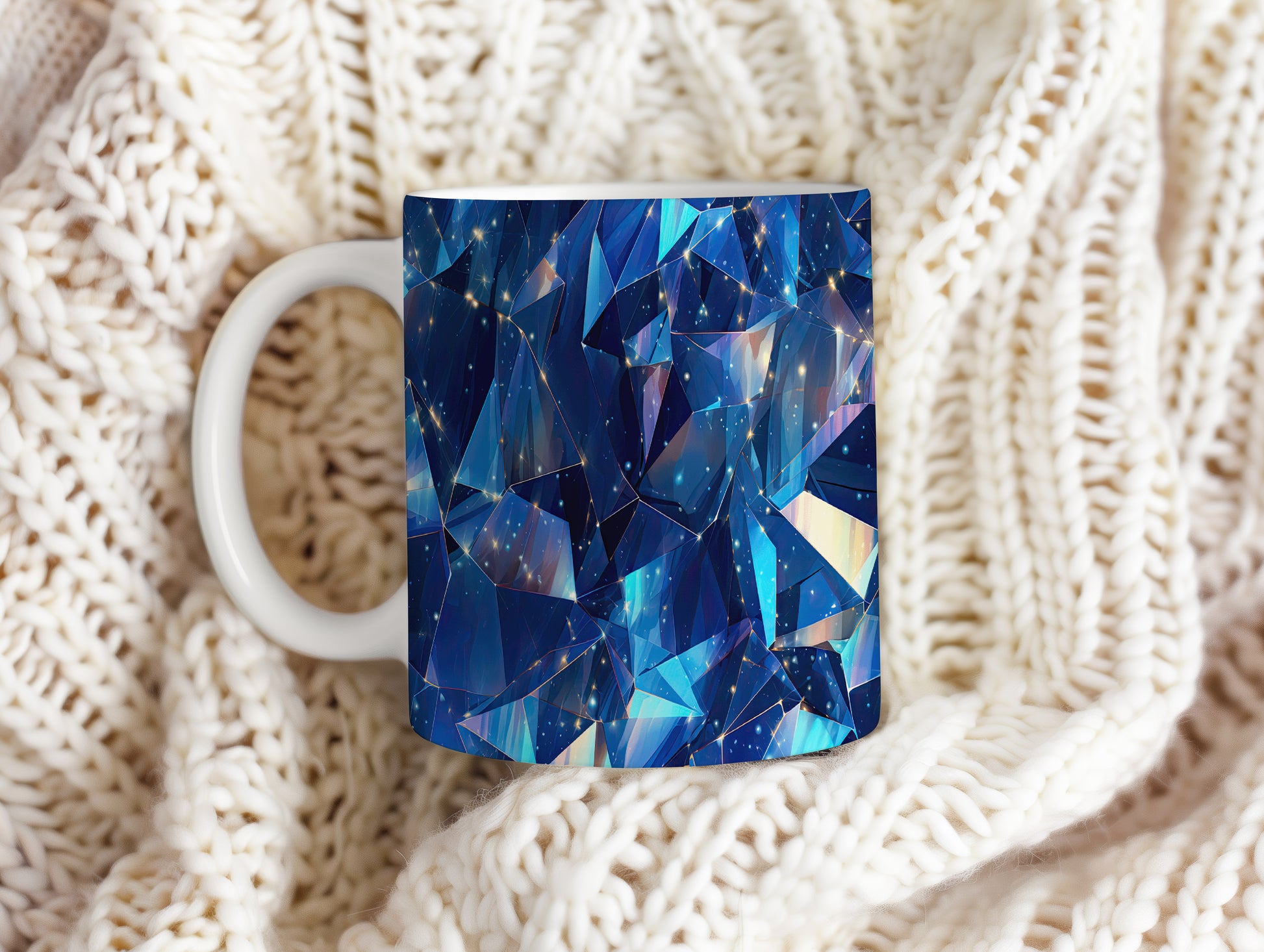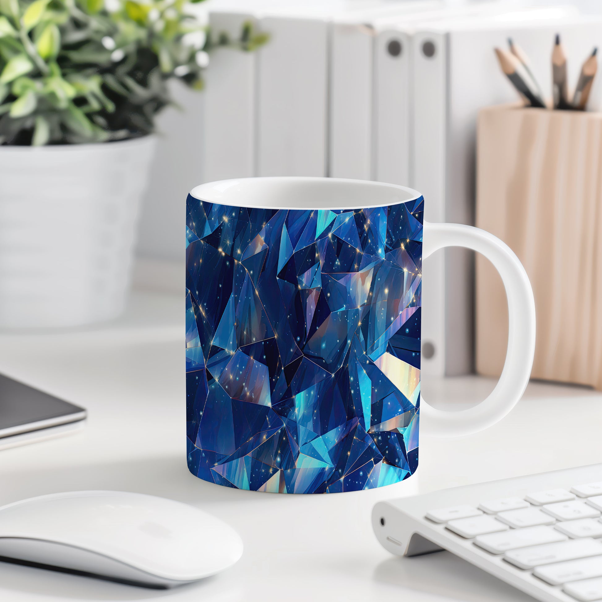 Hrnek s krystalickou mozaikou v modrých a tyrkysových tónech a 3D efekt…