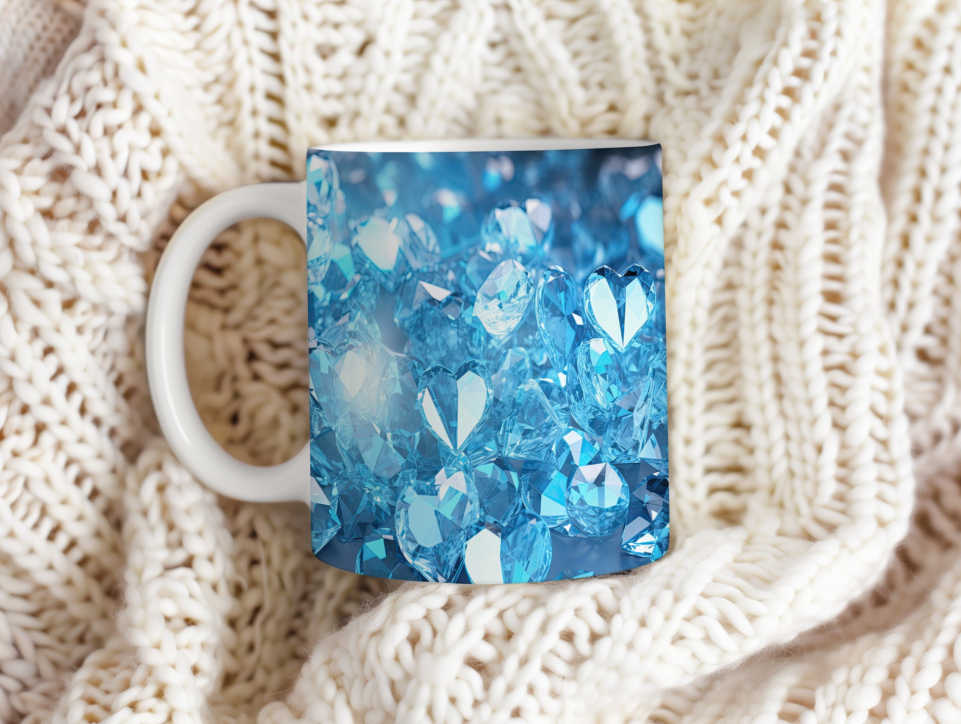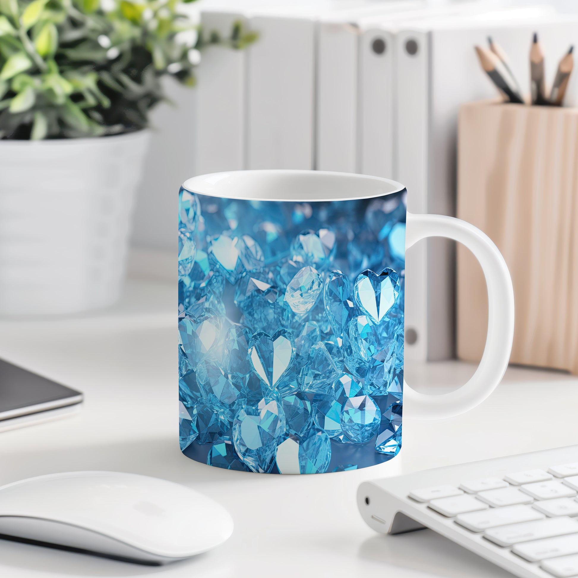 Hrnek s krystalickou mozaikou v modrých tónech – jemnými detaily