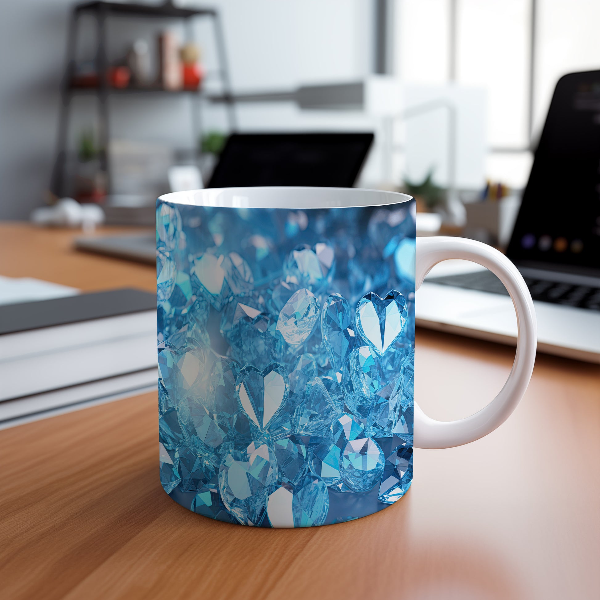 Tento hrnek s motivem krystalické mozaiky v modrých tónech přináší elegantní a moderní vzhled. Je ideální pro milovníky designu a skvělým dárkem pro přátele či rodinu. Materiál: keramika. Objem: 330 ml. Vhodné do myčky i mikrovlnky. Díky svému stylovému provedení dodá každému nápoji jedinečný šarm.