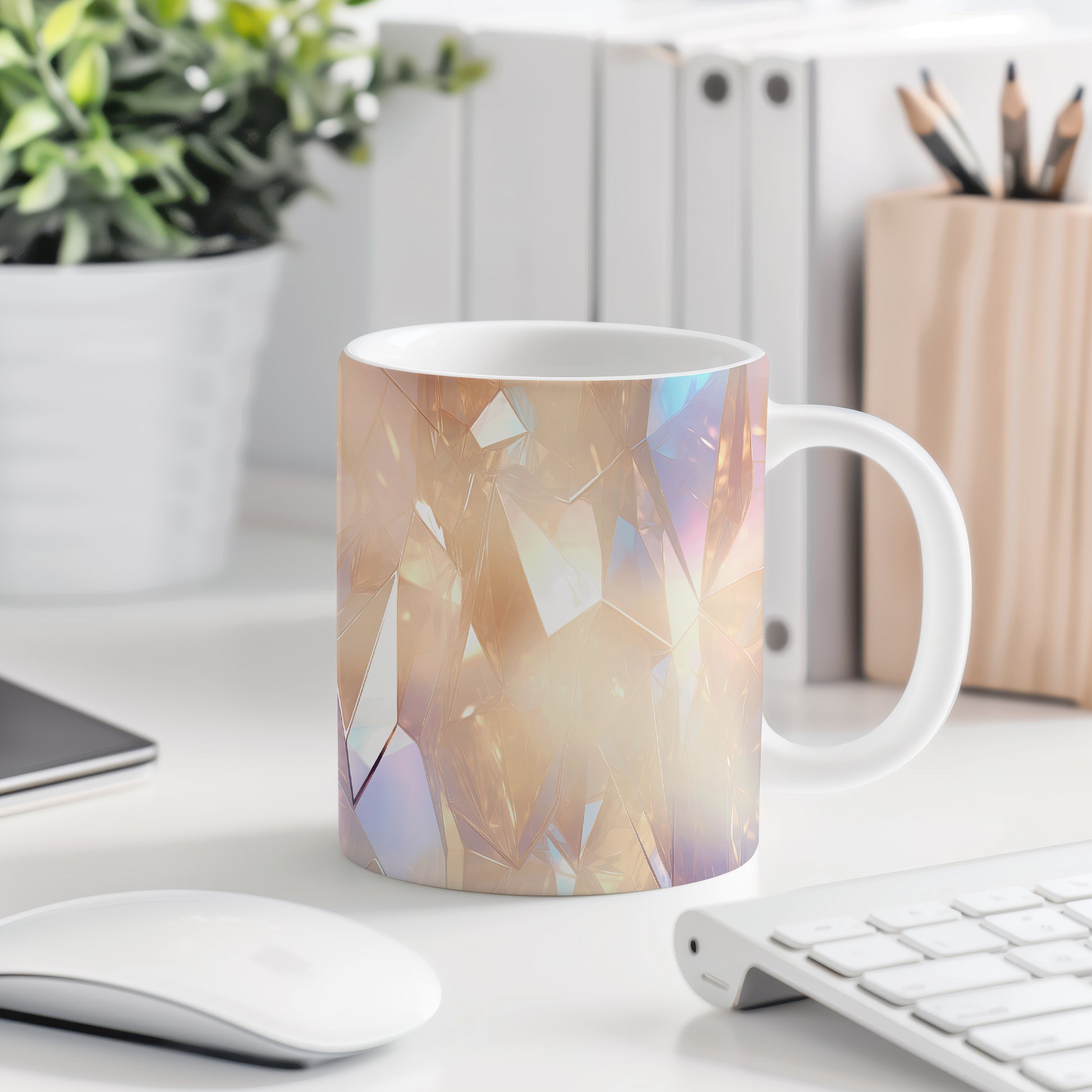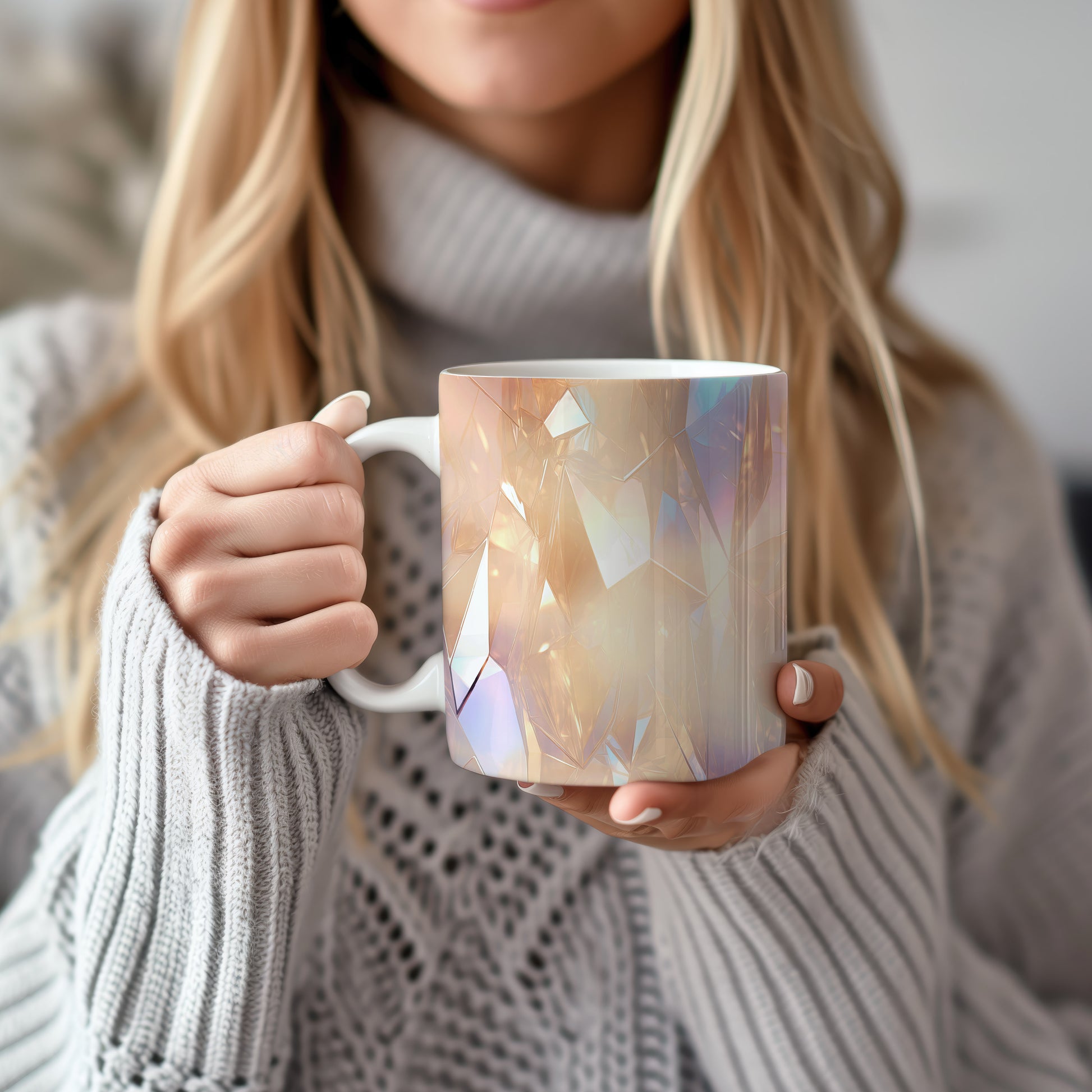 Tento hrnek s motivem krystalické mozaiky v růžových a modrých tónech přináší elegantní a moderní vzhled. Je ideální pro milovníky originálního designu a skvělým dárkem pro přátele či rodinu. Materiál: keramika. Objem: 330 ml. Vhodné do myčky i mikrovlnky. Díky svému objemu je perfektní pro kávu, čaj nebo jiné oblíbené nápoje.