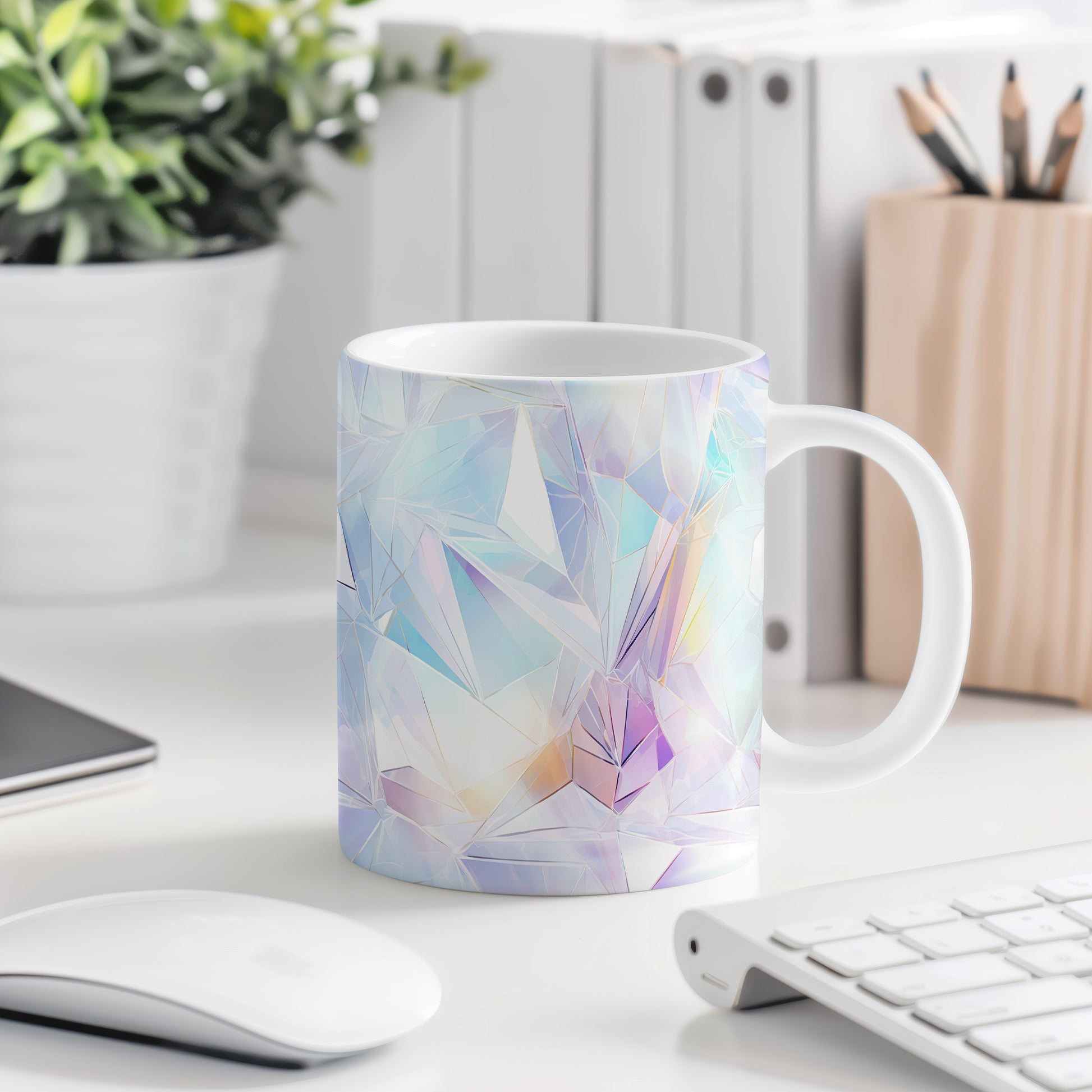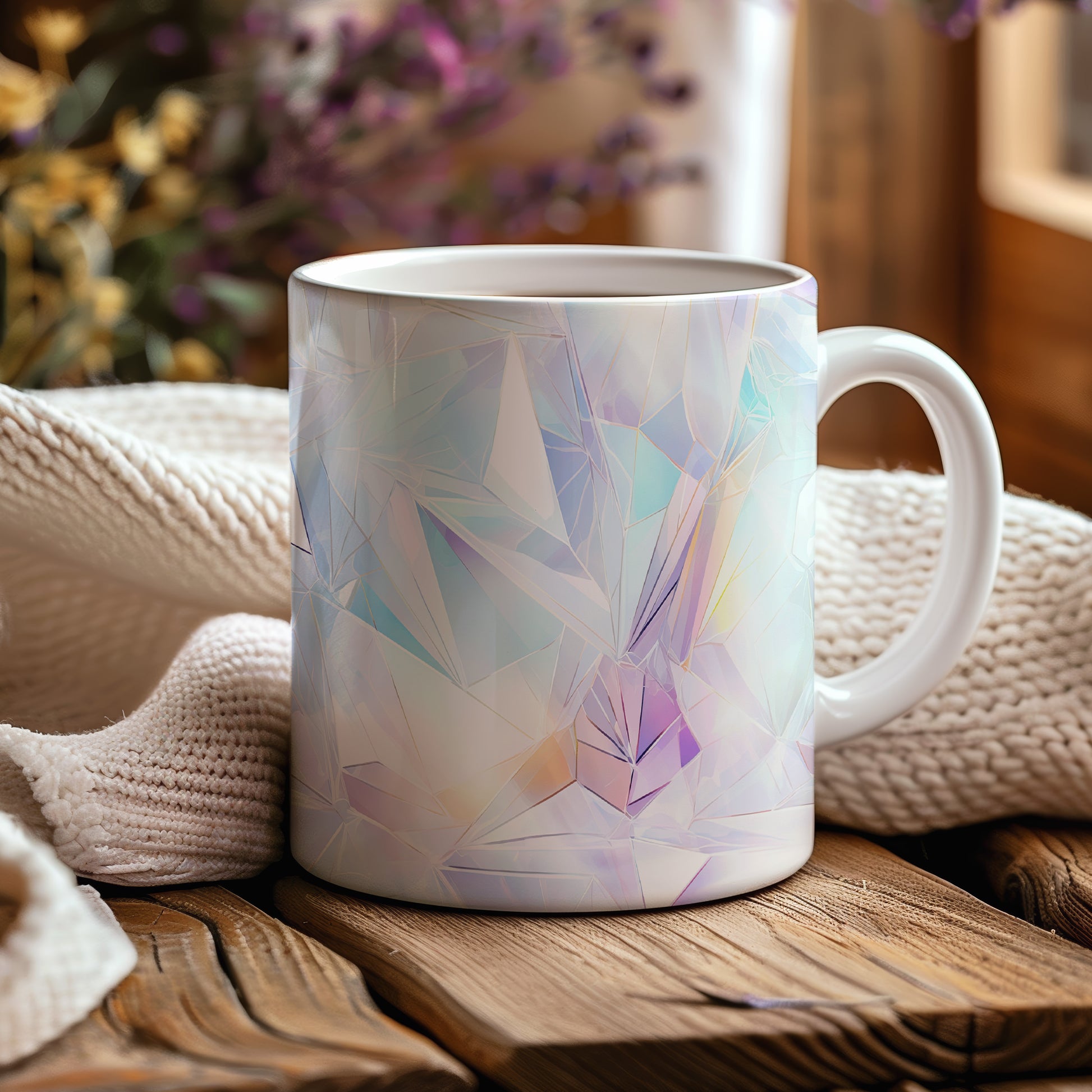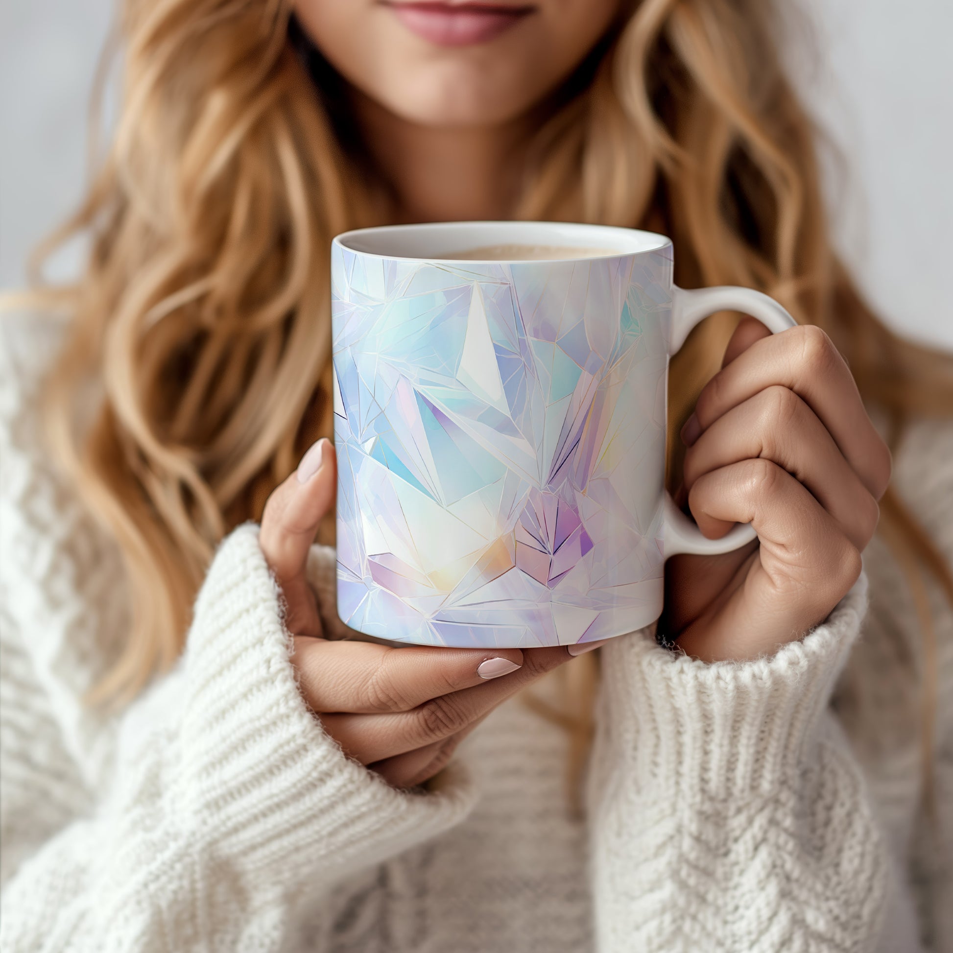 Tento hrnek zdobí krystalická mozaika v jemných pastelových barvách, zejména modré a růžové. Je ideální pro milovníky originálního designu a skvělým dárkem pro přátele či rodinu. Materiál: keramika. Objem: 330 ml. Vhodné do myčky i mikrovlnky. Díky svému stylovému vzhledu přinese do každodenního pití kávy nebo čaje nádech elegance.