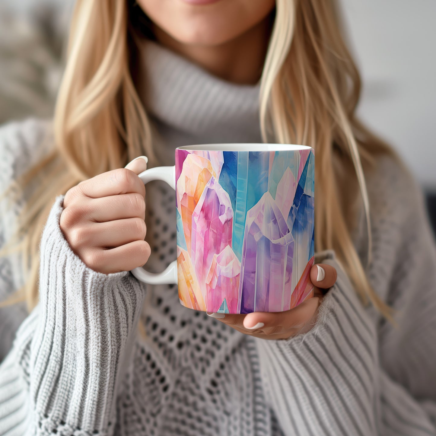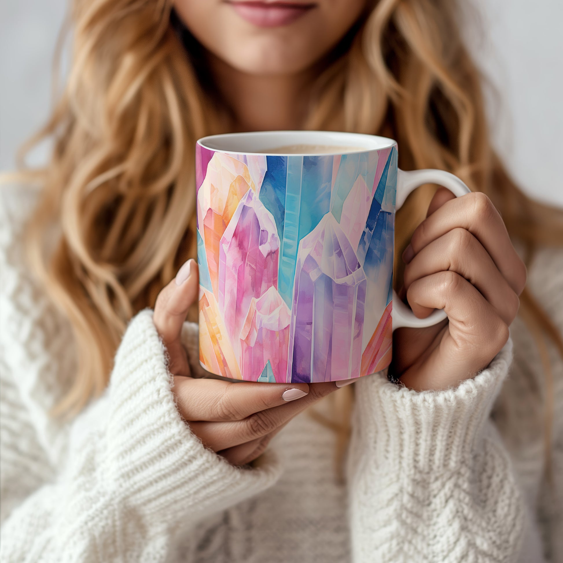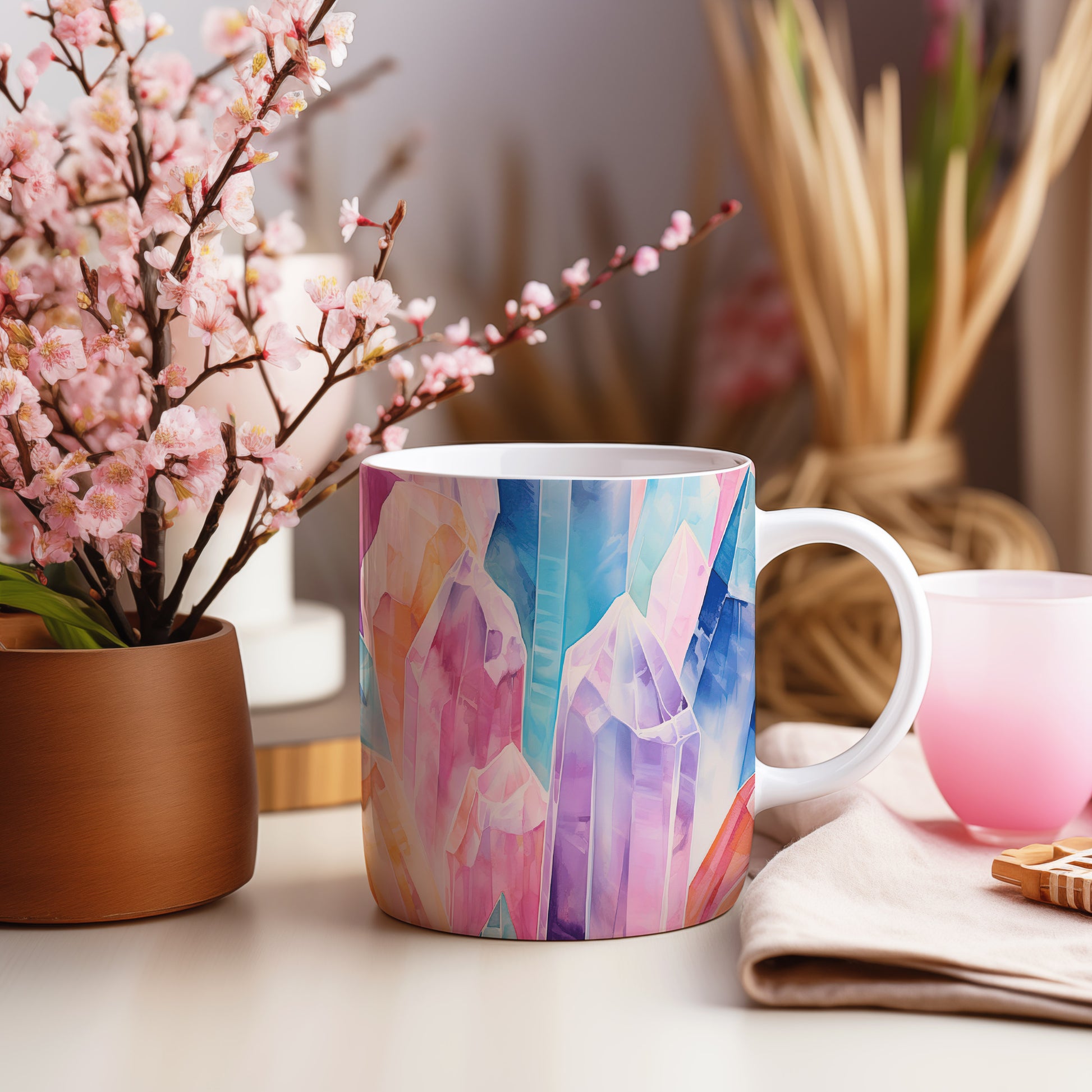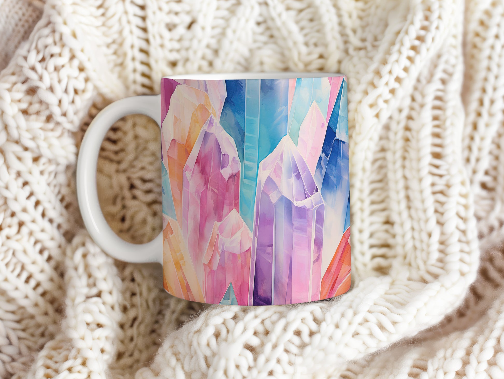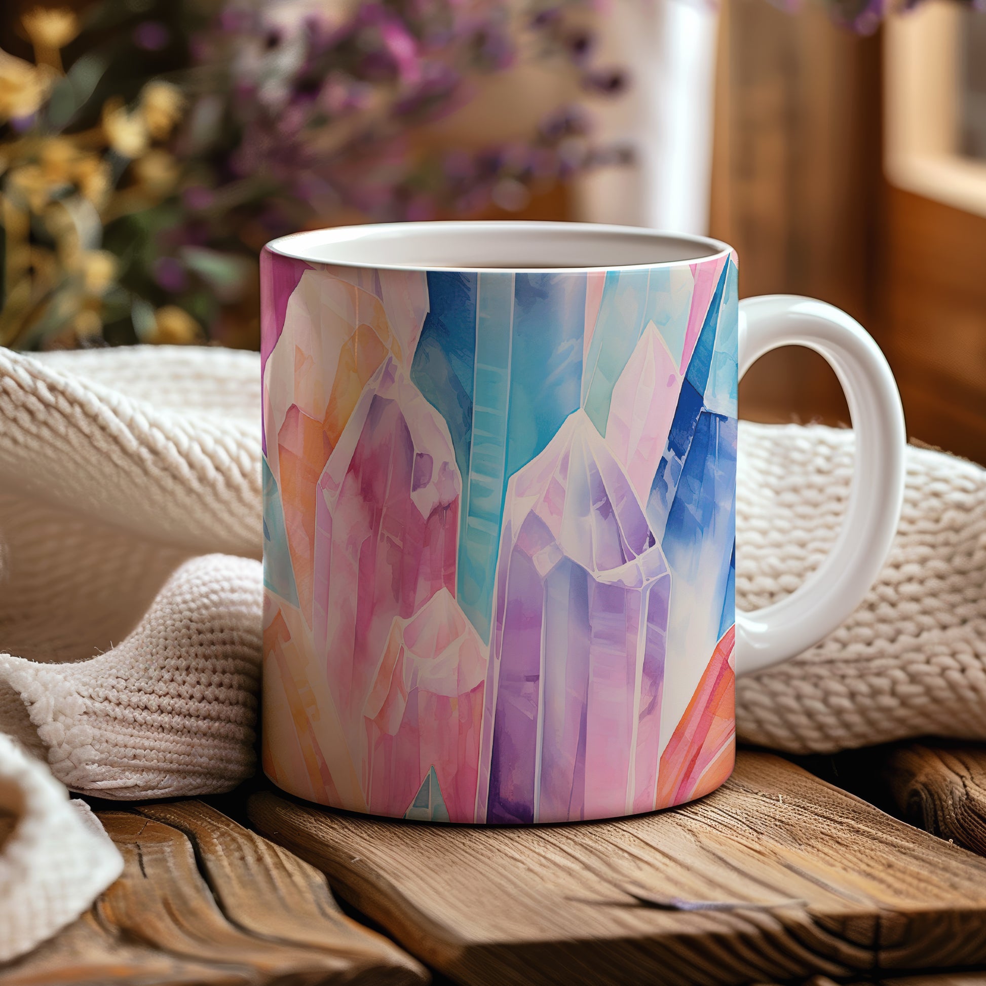 Hrnek s krystalickou mozaikou v pastelových tónech – digitální ilustrací