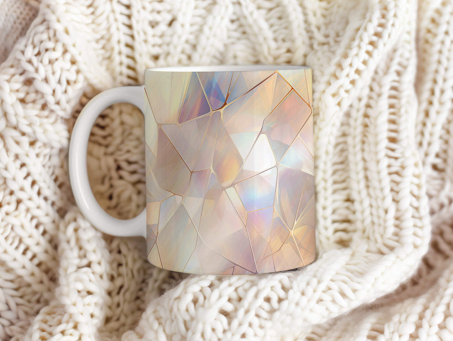 Hrnek s krystalickou mozaikou v pastelových tónech – jemnými detaily