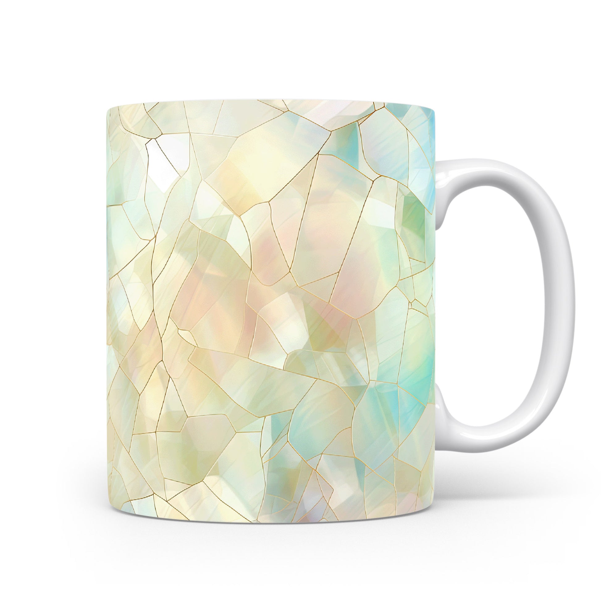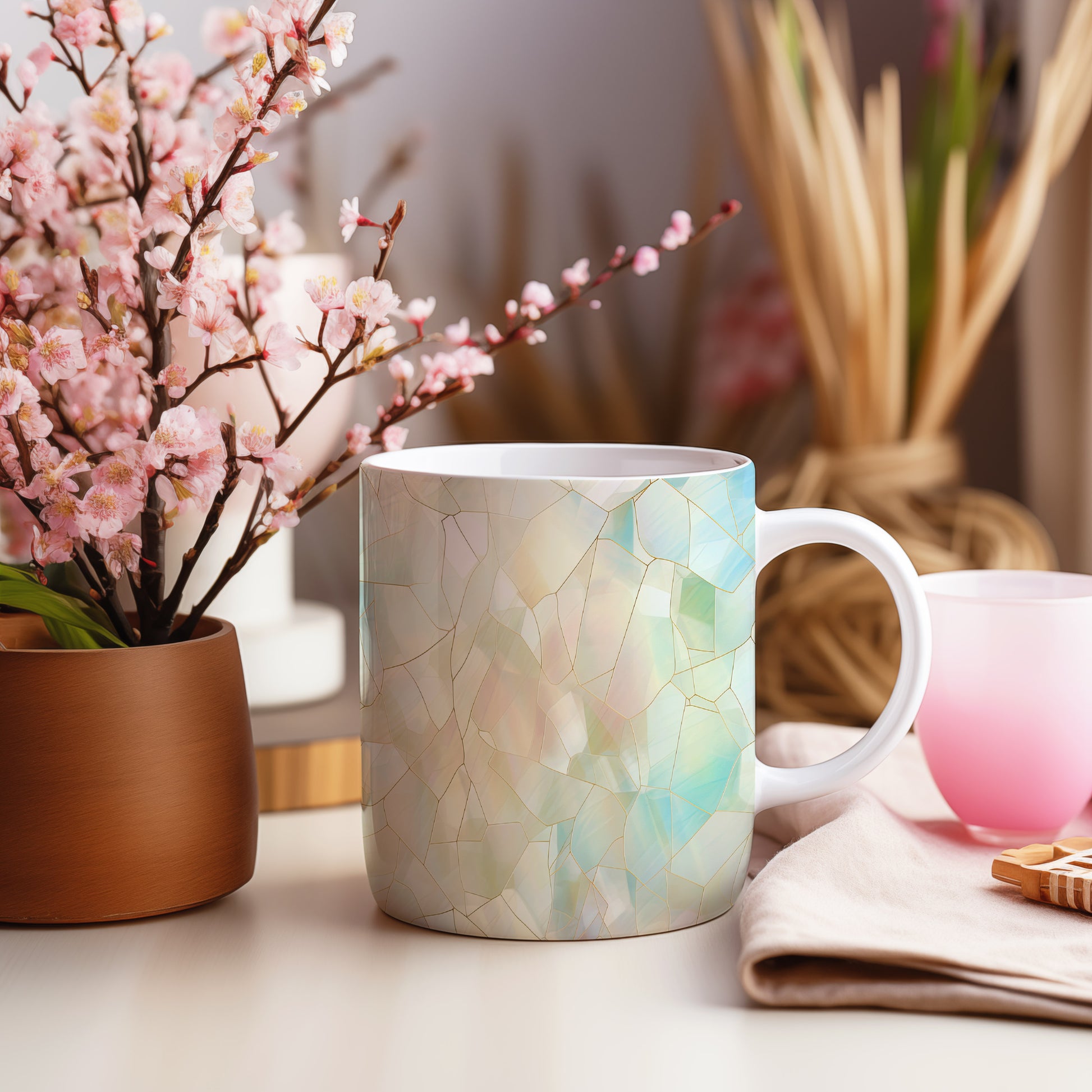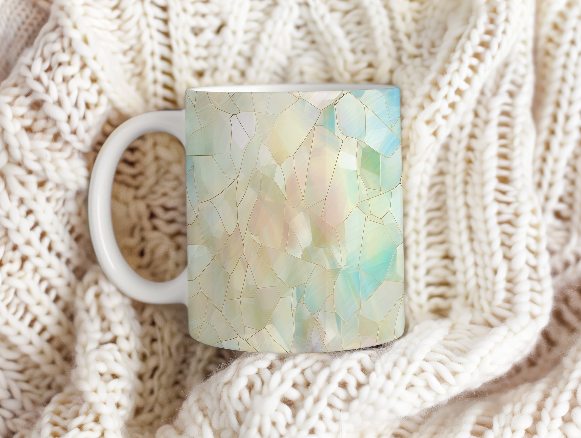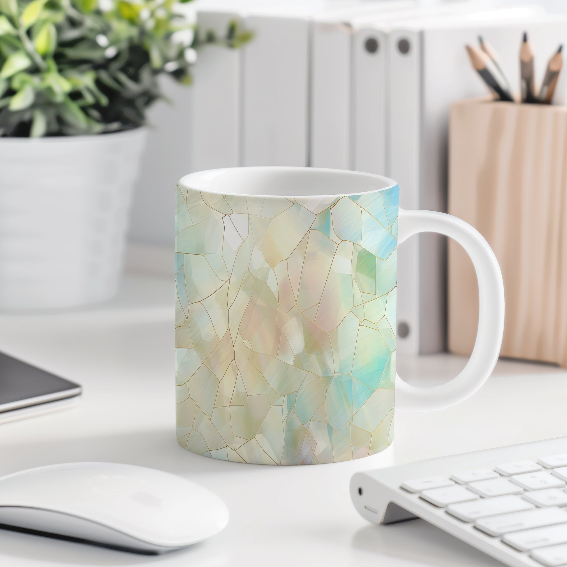 Hrnek s krystalickou mozaikou v pastelových tónech – modrými detaily