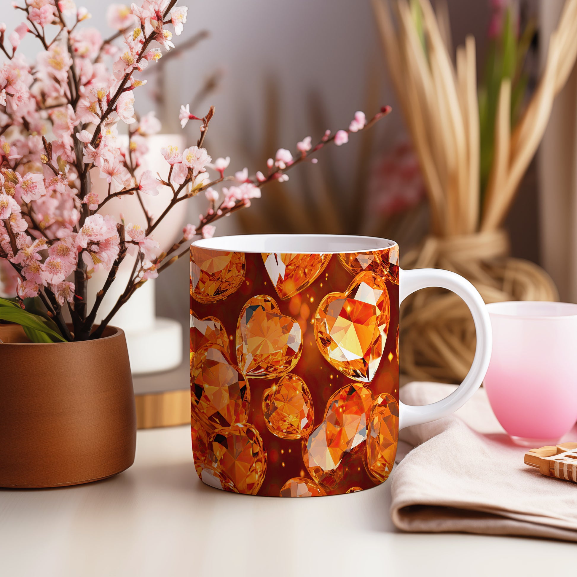 Hrnek s krystalickou mozaikou v teplých tónech