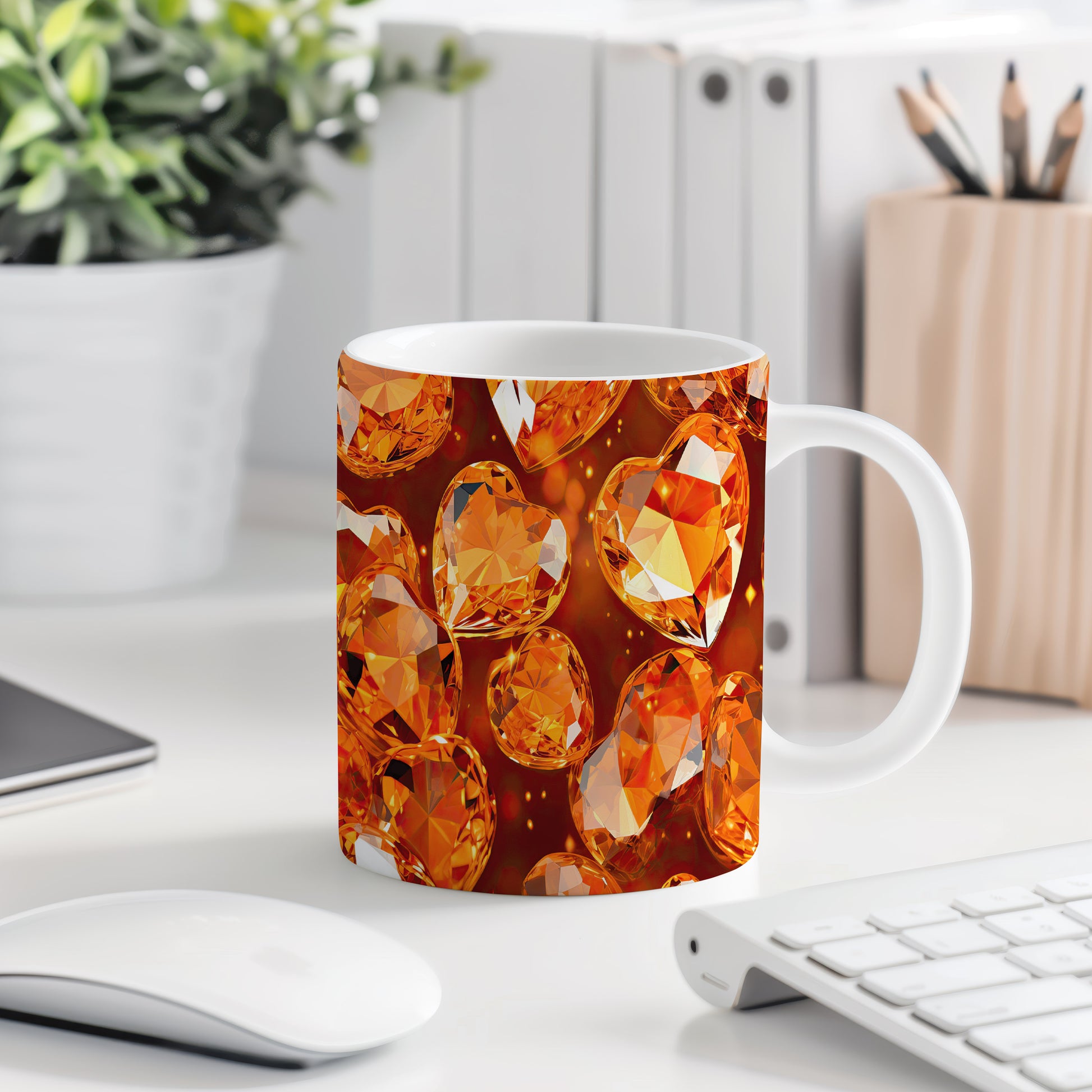 Tento hrnek s krystalickou mozaikou v oranžových a hnědých tónech přináší teplý a atraktivní vzhled. Je ideální pro milovníky originálního designu a skvělým dárkem pro přátele nebo rodinu. Materiál: keramika. Objem: 330 ml. Vhodné do myčky i mikrovlnky. Používáním tohoto hrnku si užijete nejen krásný design, ale i praktické vlastnosti.
