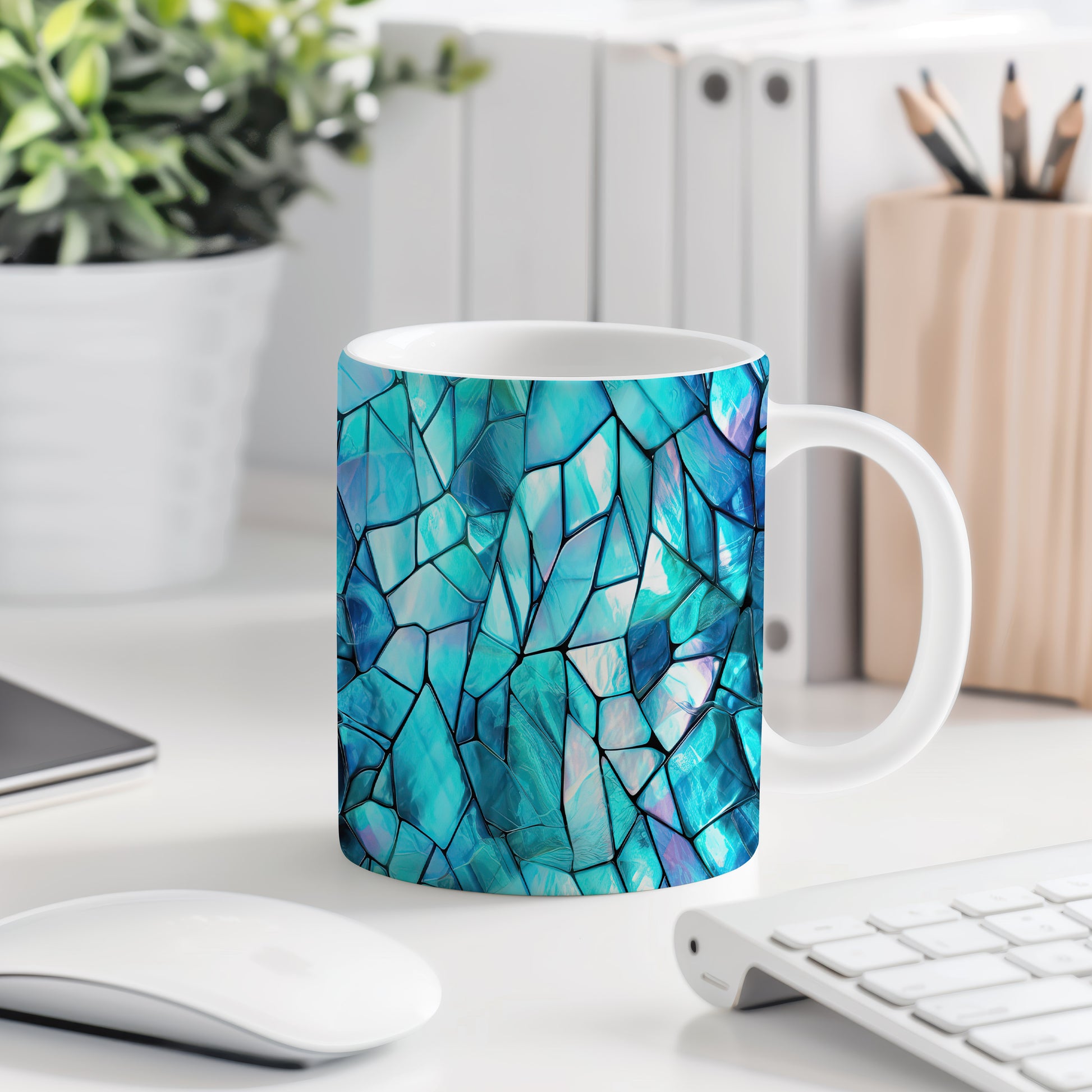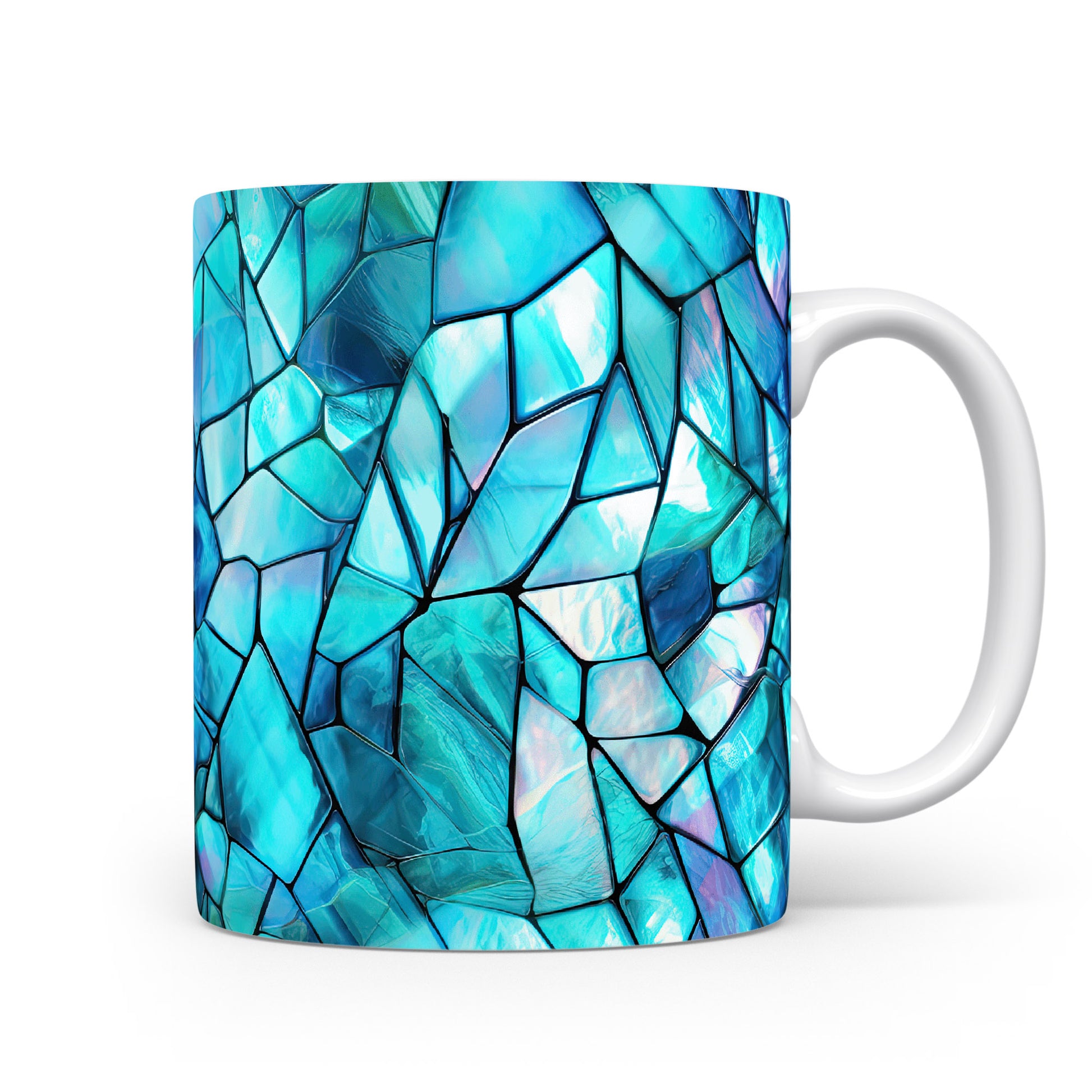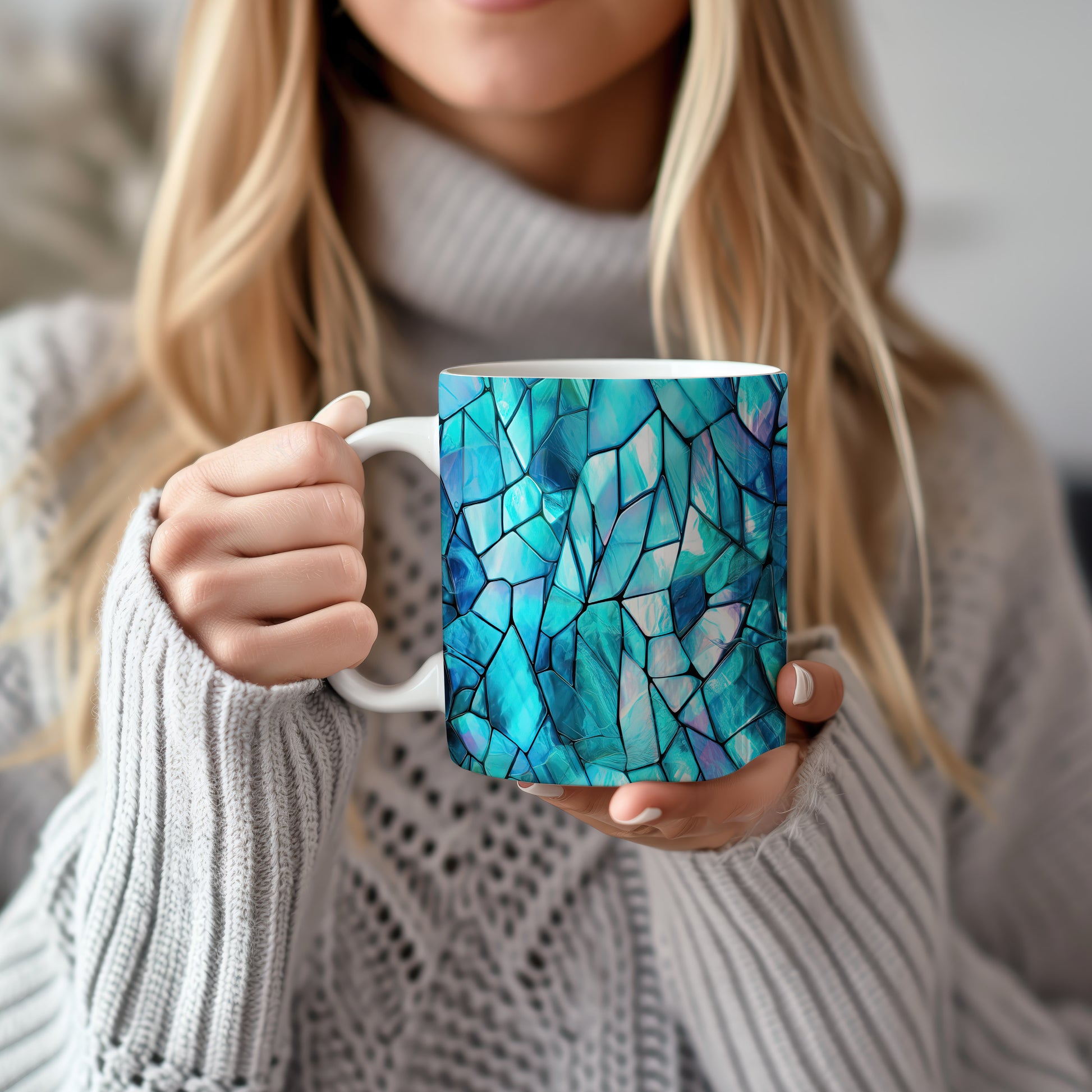 Hrnek s krystalickou mozaikou v tyrkysových a modrých tónech a 3D efekt…