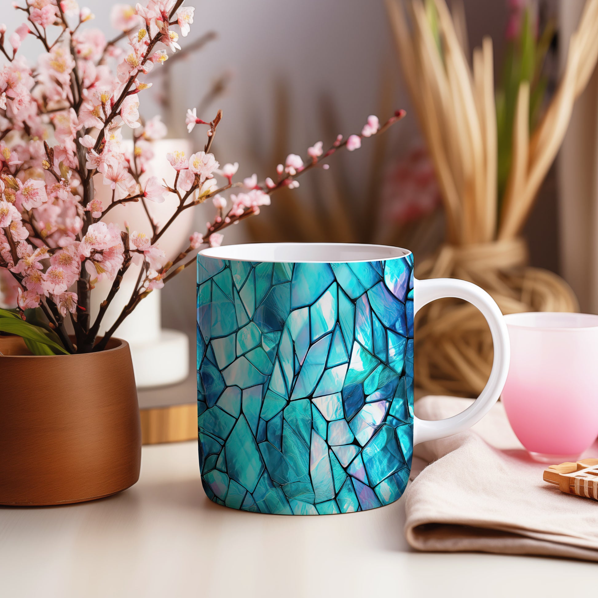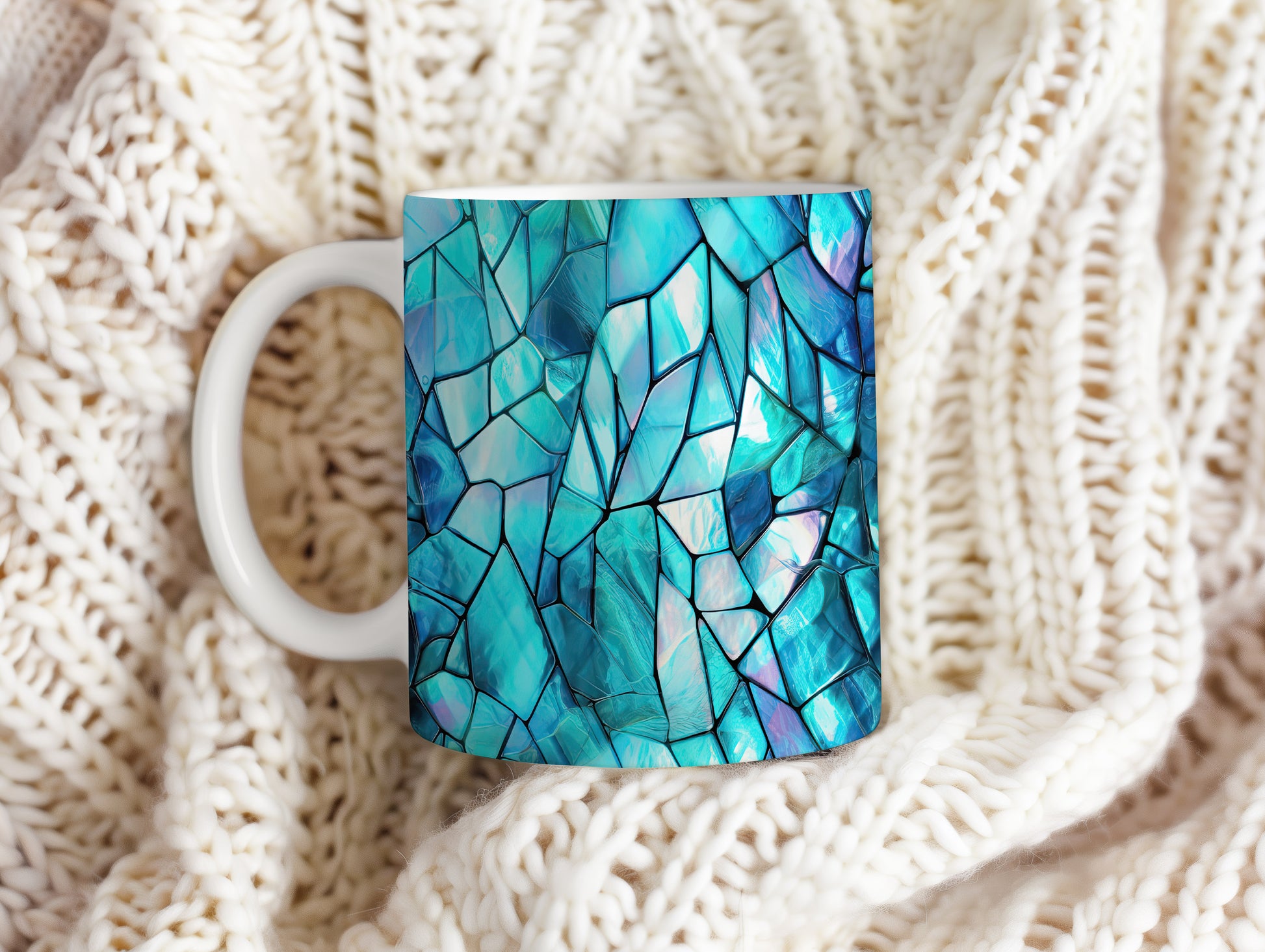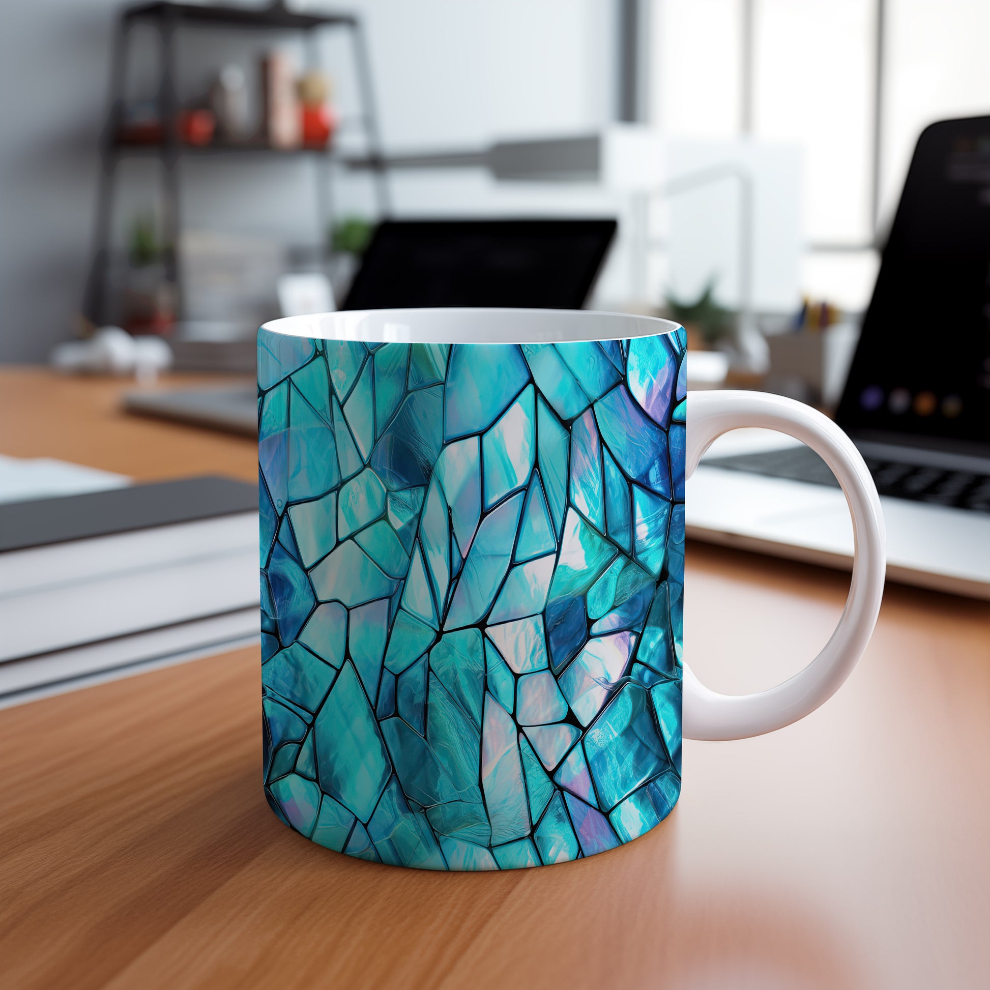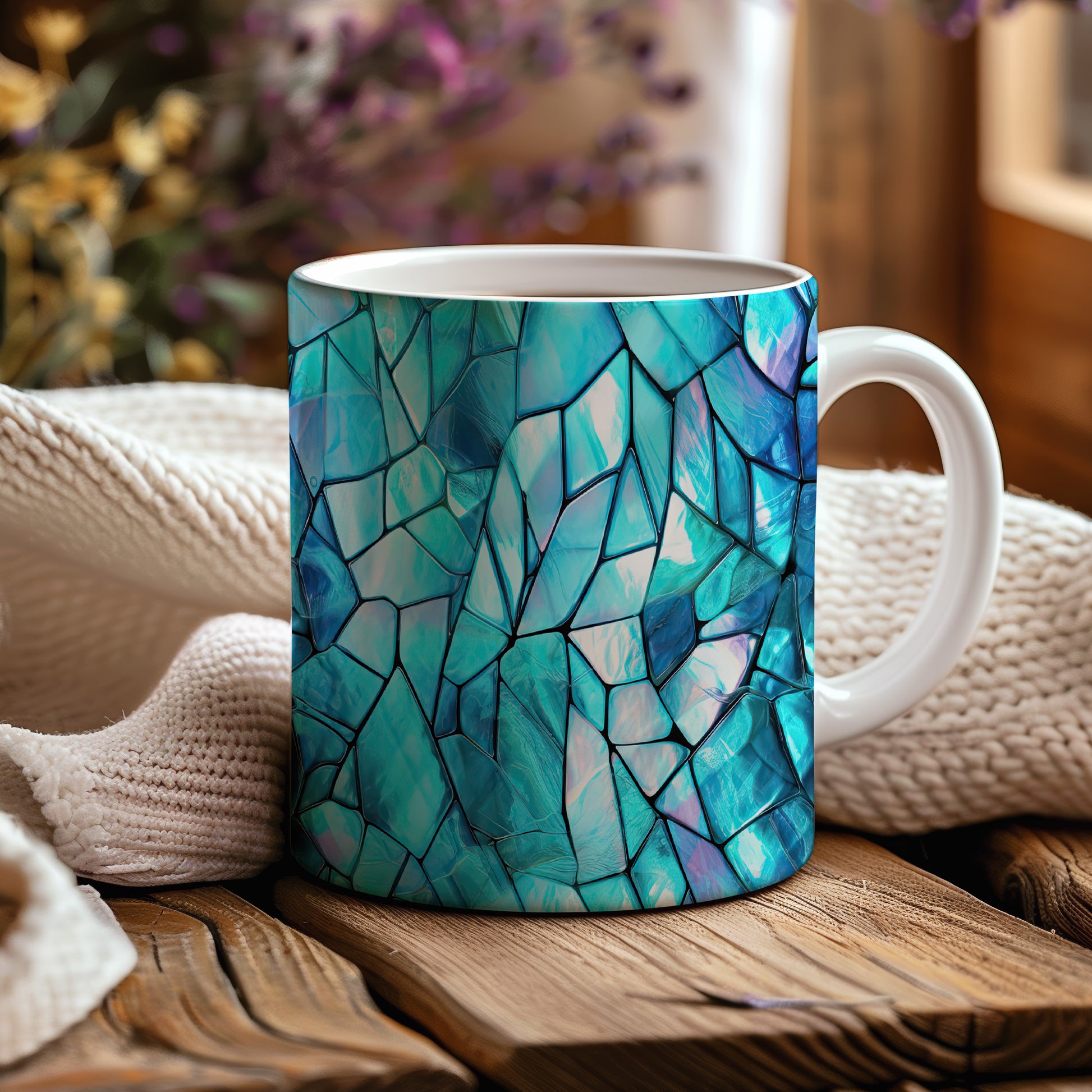 Hrnek s krystalickou mozaikou v tyrkysových a modrých tónech a 3D efekt…