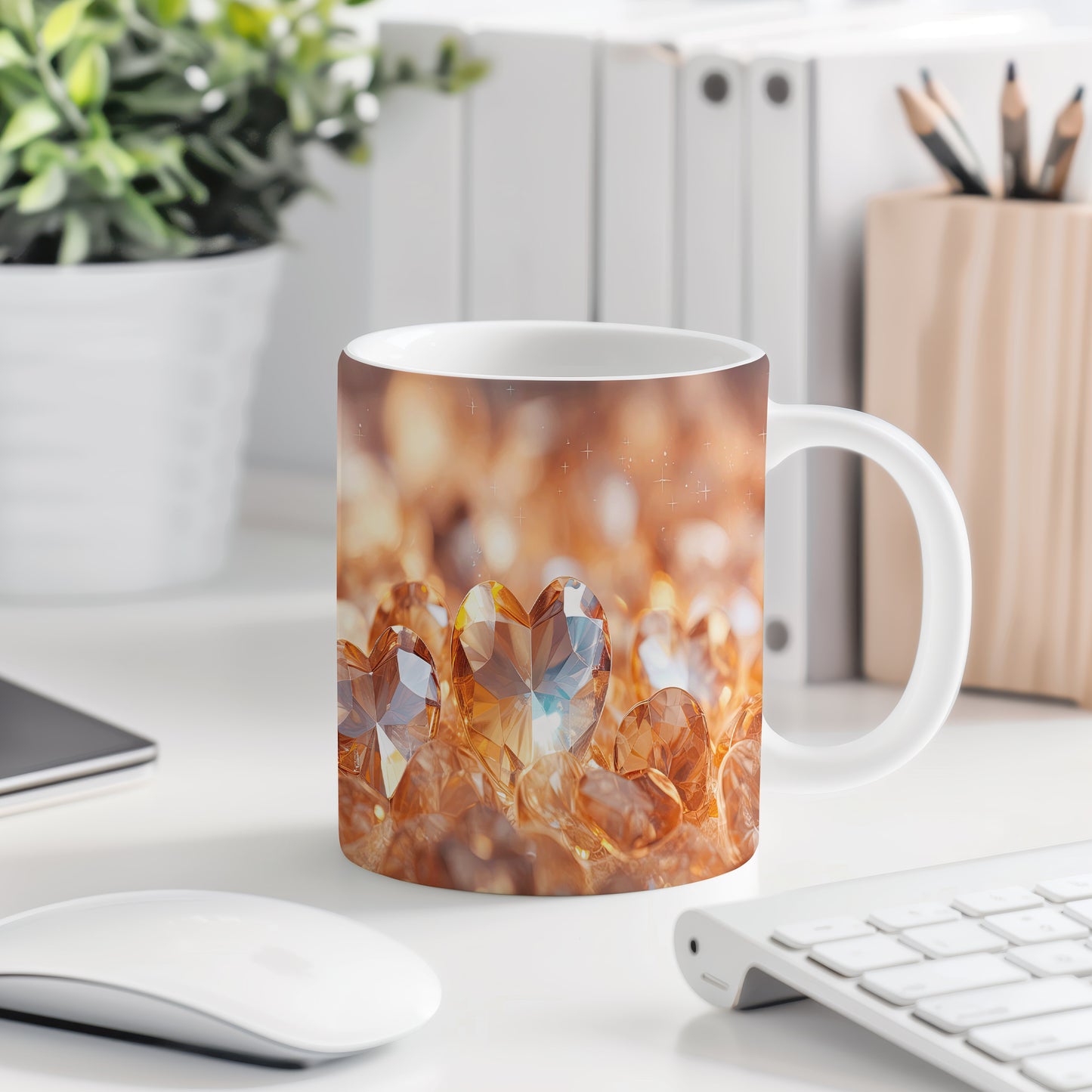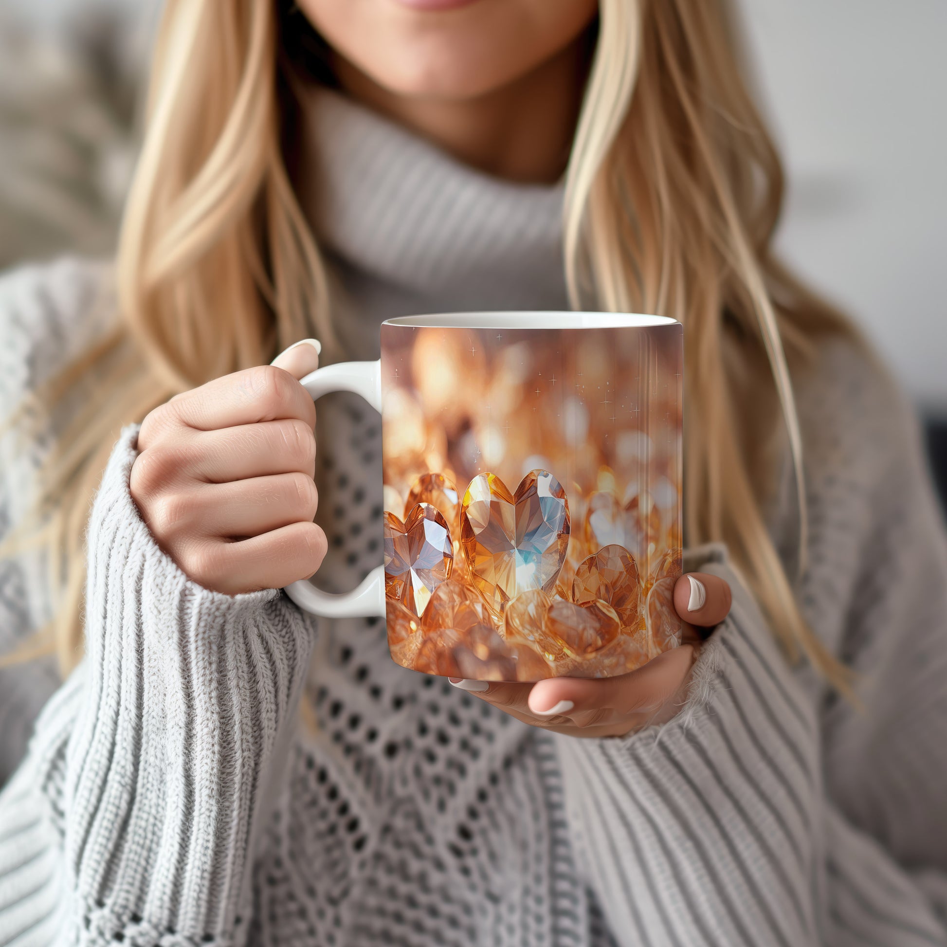 Tento hrnek s krystalickou mozaikou v zlatých a oranžových tónech přináší elegantní a moderní design. Je ideální pro milovníky stylového nádobí a skvělým dárkem pro přátele či rodinu. Materiál: keramika. Objem: 330 ml. Vhodné do myčky i mikrovlnky. Díky svému jedinečnému vzhledu přidá šmrnc každému stolu.