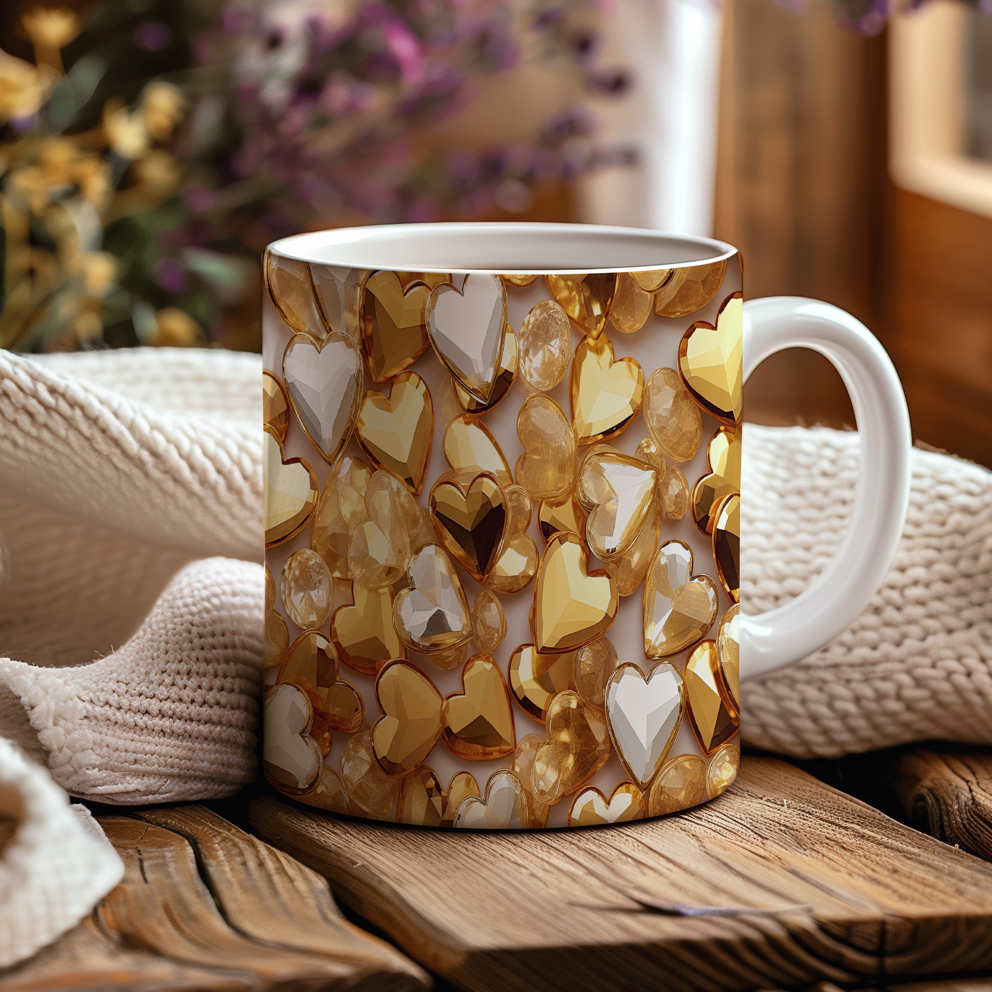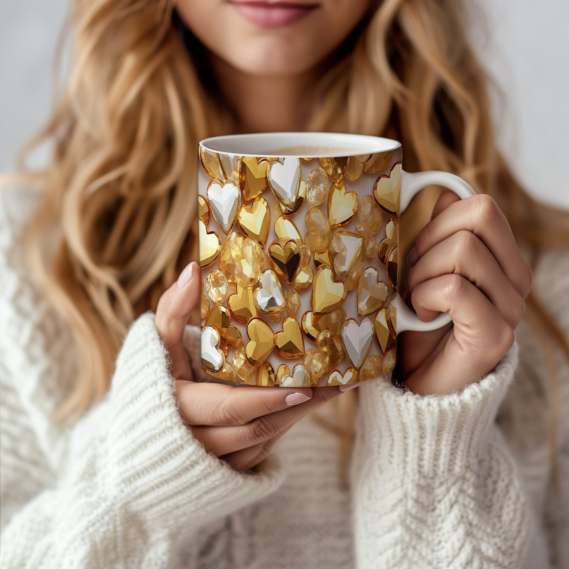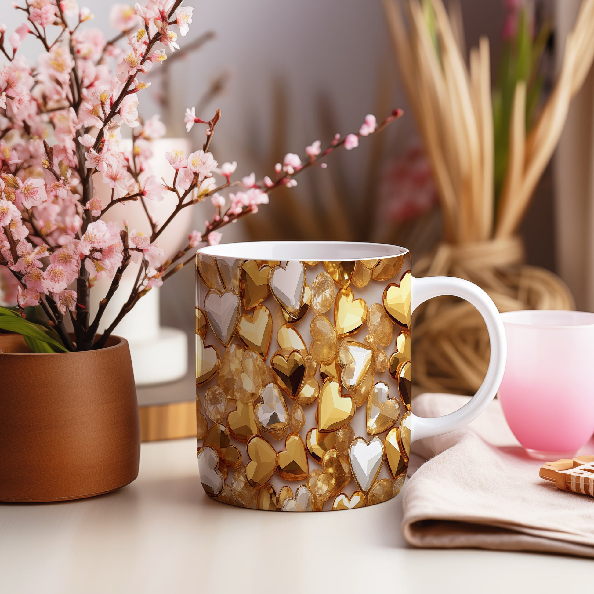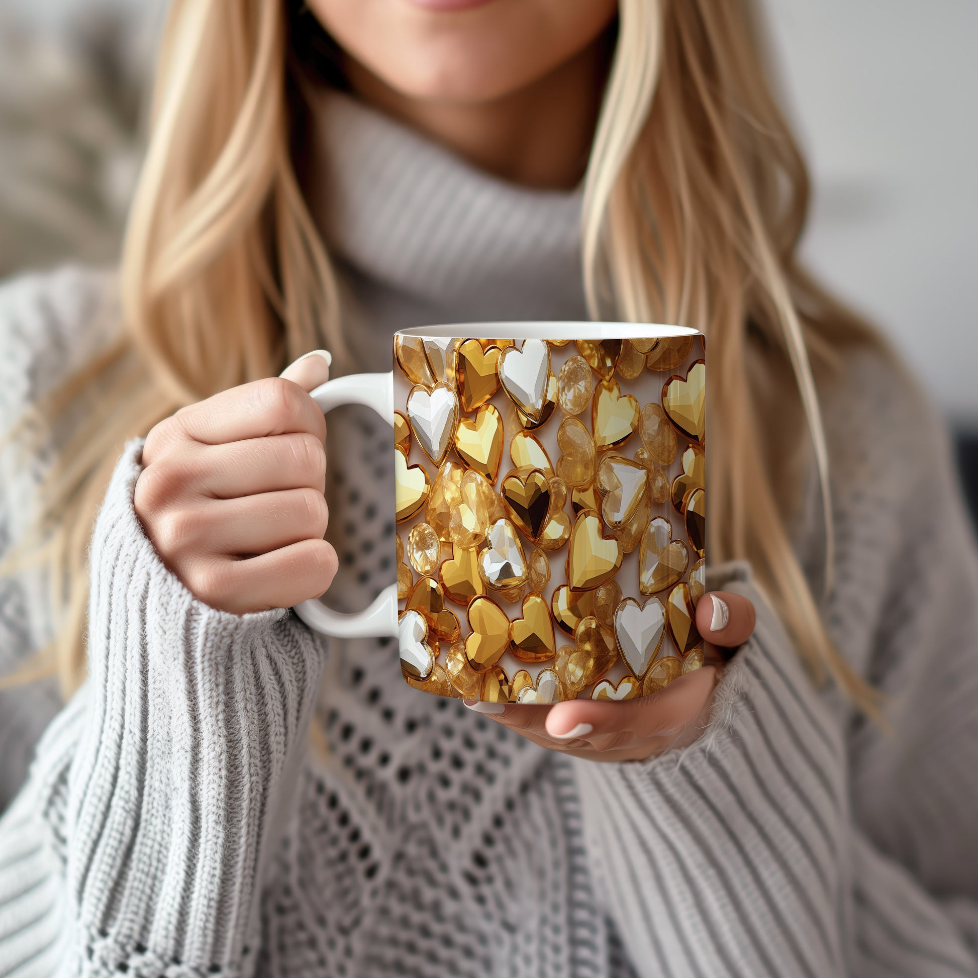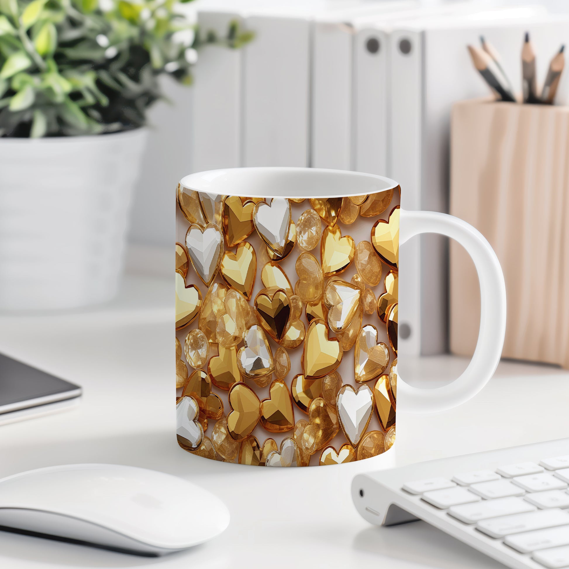 Tento hrnek s motivem krystalické mozaiky přináší elegantní design s lesklými hexagonálními a srdčitými tvary. Je ideální pro milovníky stylového nádobí a skvělým dárkem pro přátele či rodinu. Materiál: keramika. Objem: 330 ml. Vhodné do myčky i mikrovlnky. Díky svému jedinečnému vzhledu se stane ozdobou každého stolu.