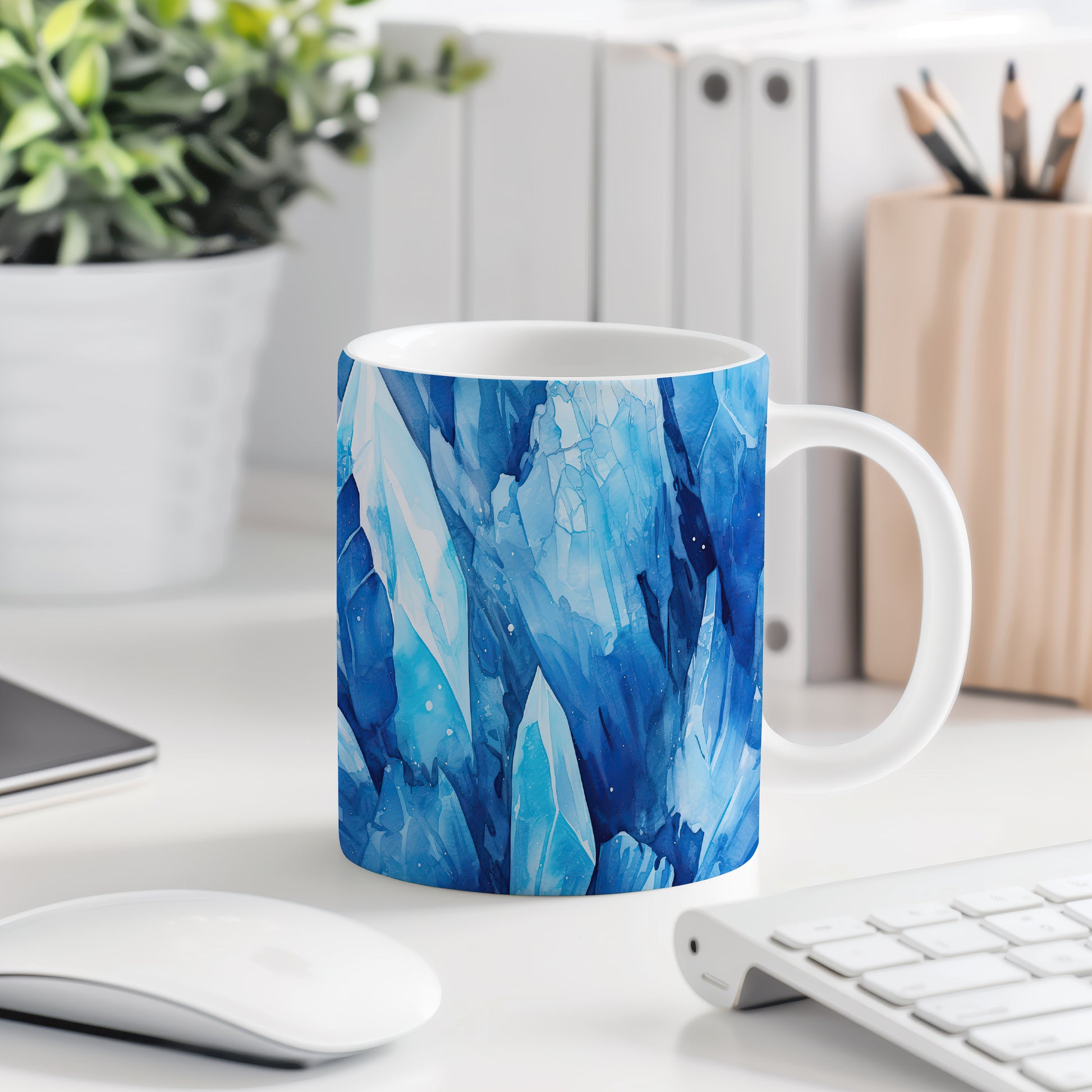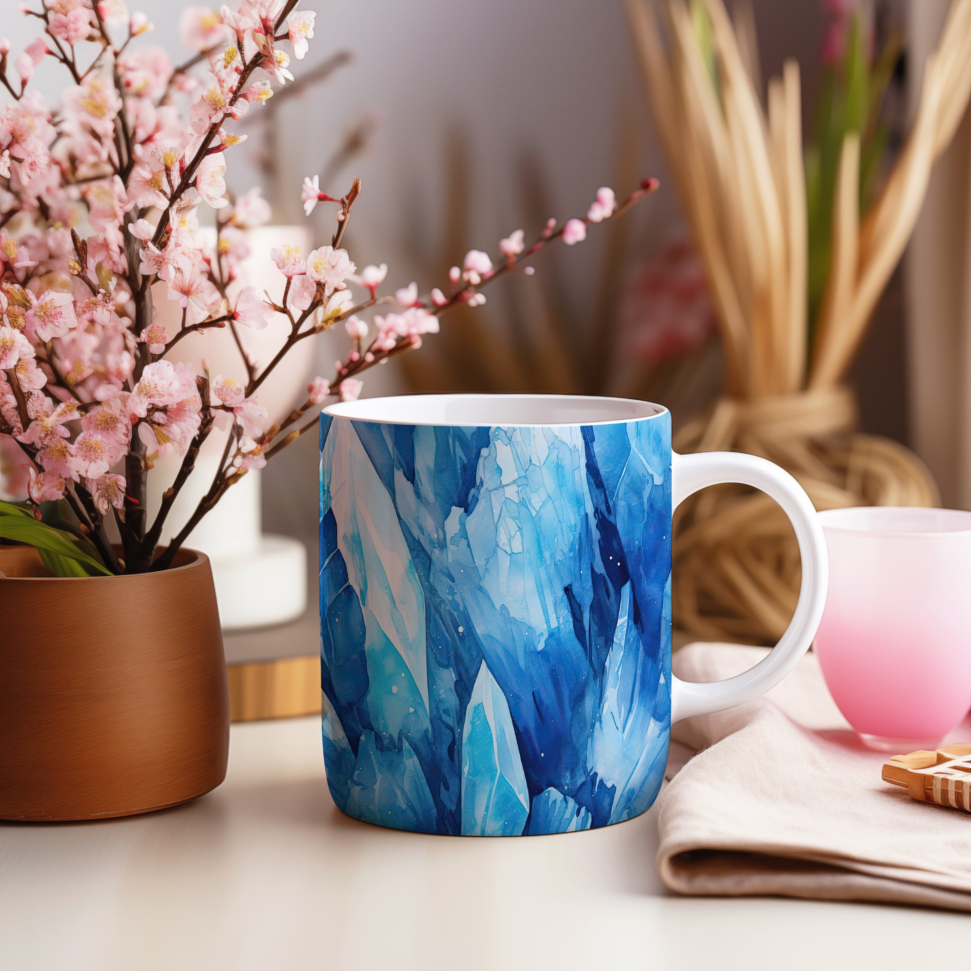 Tento hrnek s motivem krystalů v modrých a akvamarinových tónech přináší osvěžující a dynamický vzhled. Je ideální pro milovníky moderního designu a skvělým dárkem pro přátele či rodinu. Materiál: keramika. Objem: 330 ml. Vhodné do myčky i mikrovlnky. Používání tohoto hrnku dodá vašim nápojům styl a eleganci.