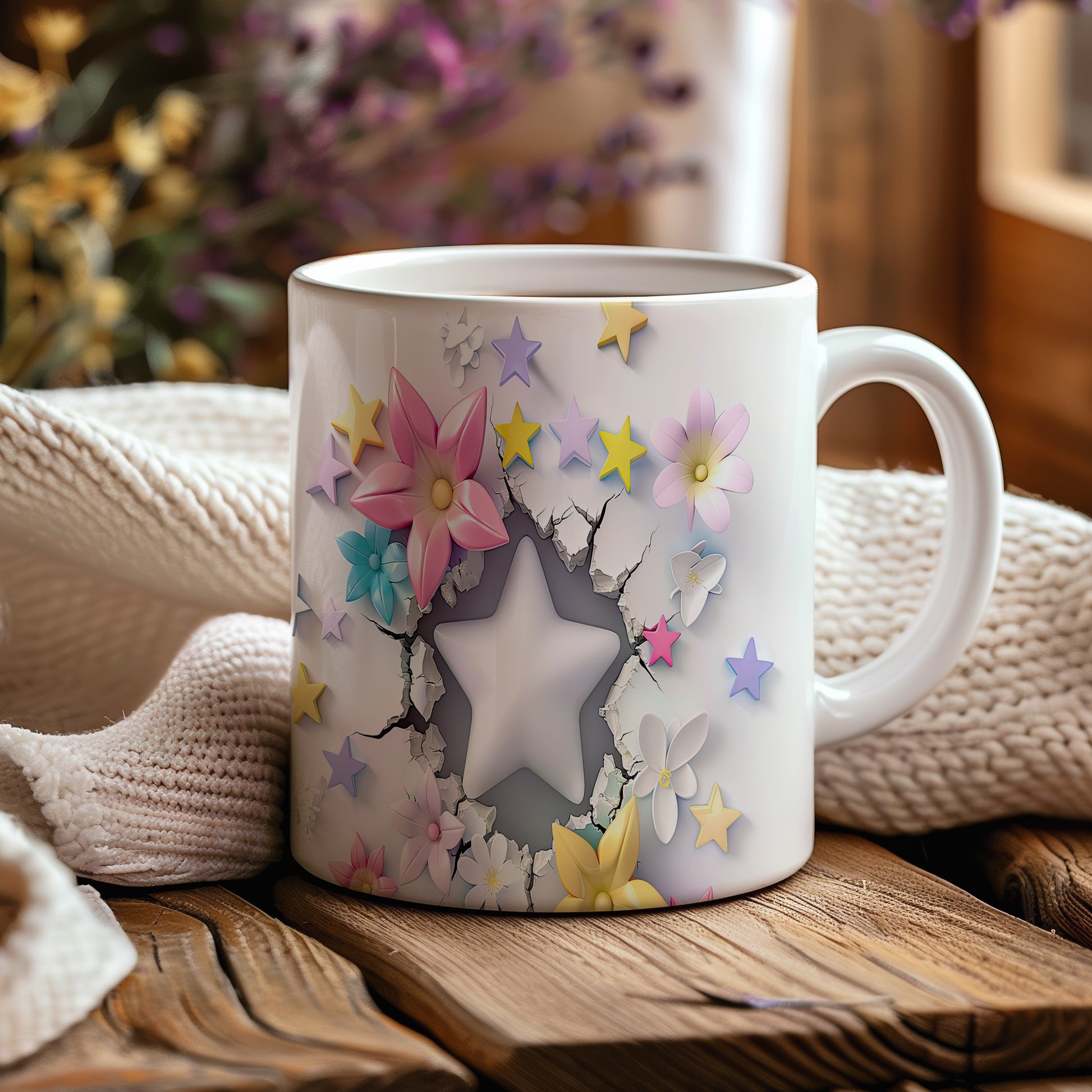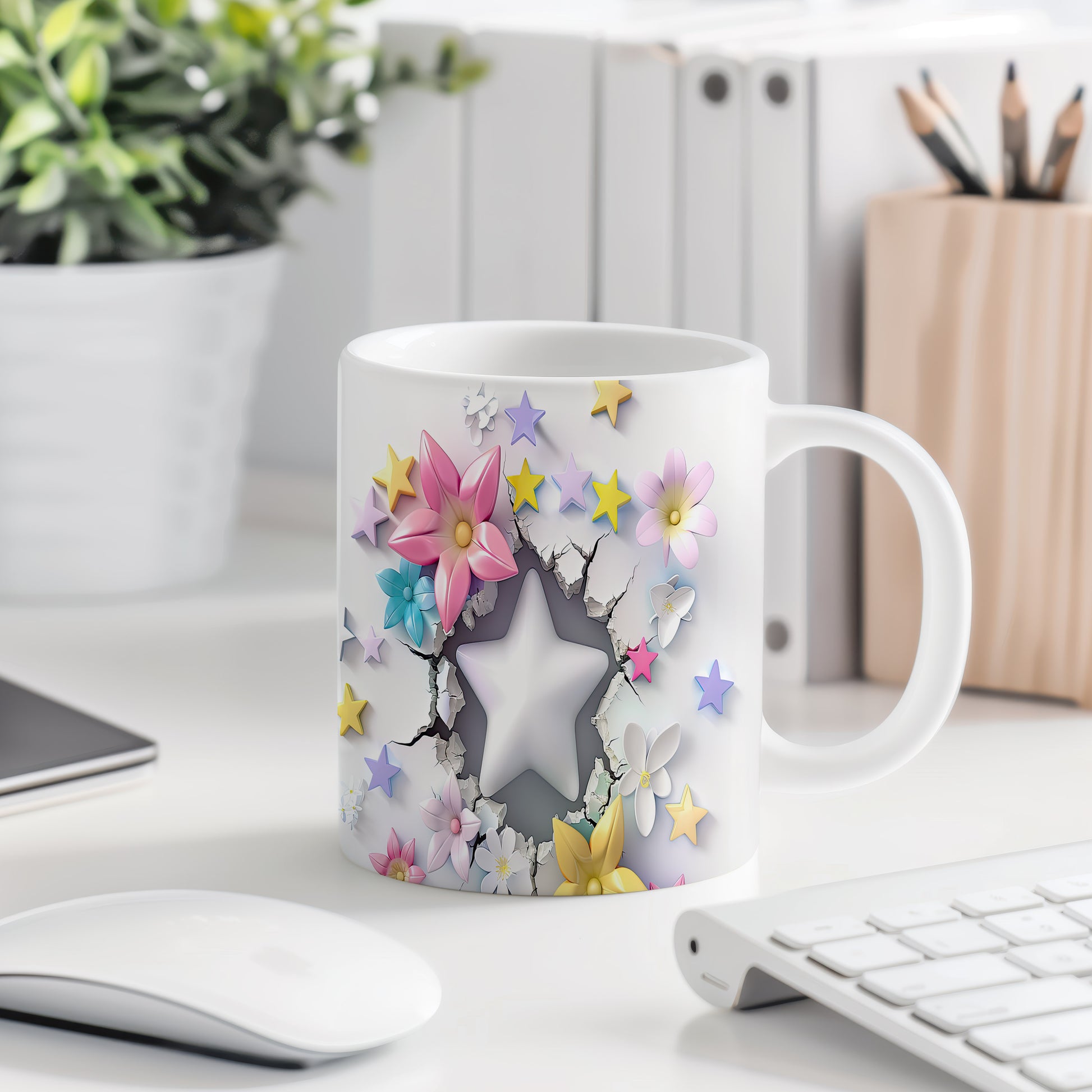 Tento keramický hrnek s motivem květin a 3D efektem hvězdy je skvělým doplňkem pro každého milovníka přírody. Je ideální jako dárek pro přátele nebo rodinu, kteří ocení originální design. Materiál: keramika. Objem: 330 ml. Vhodné do myčky i mikrovlnky. Při každém doušku si užijete jedinečný zážitek z pití.