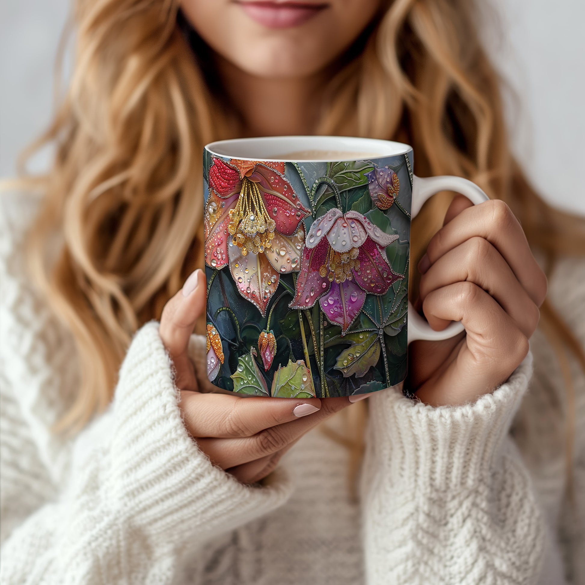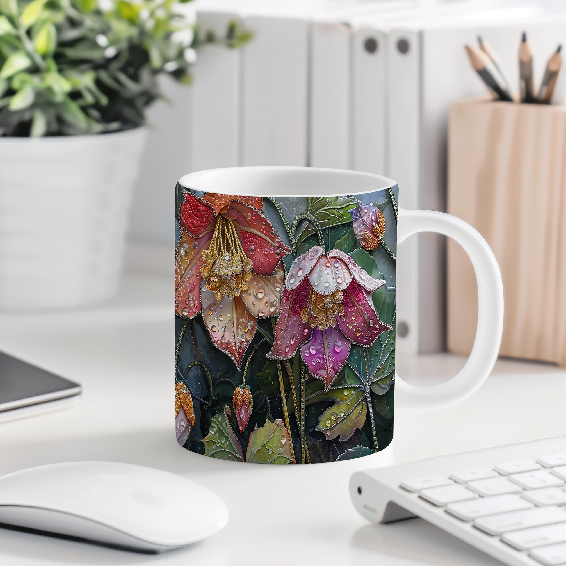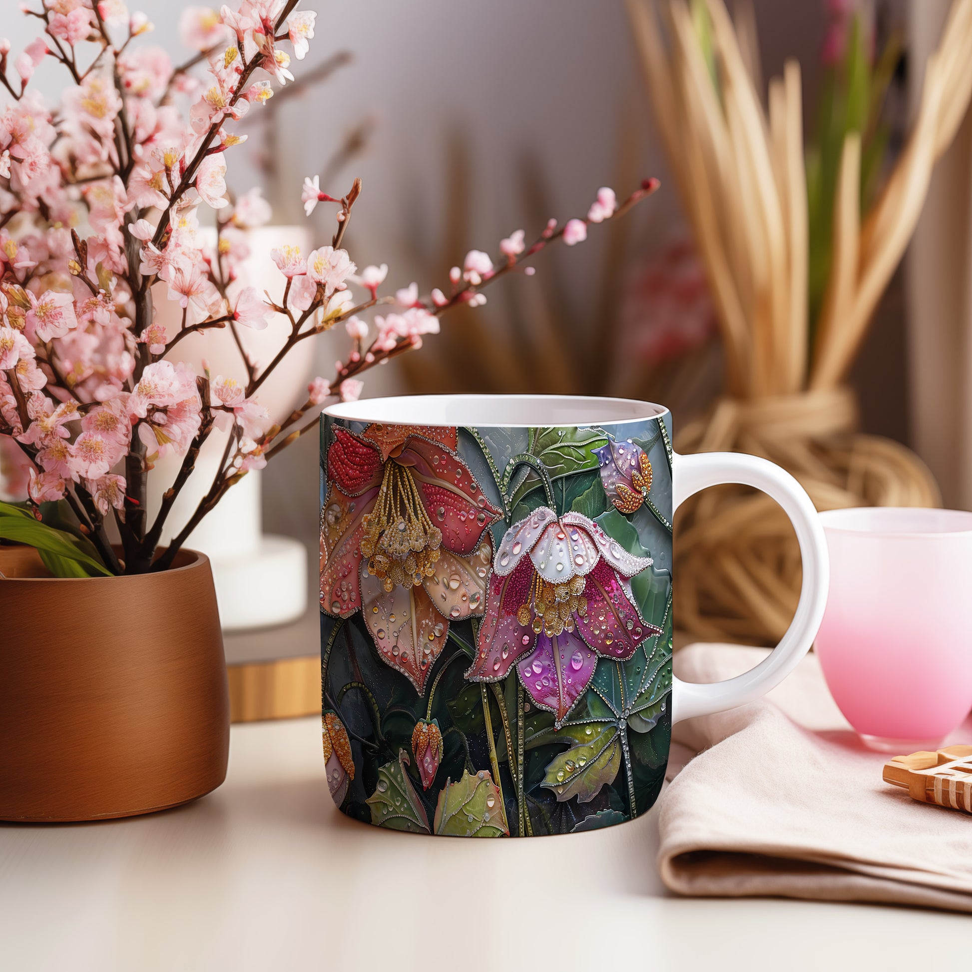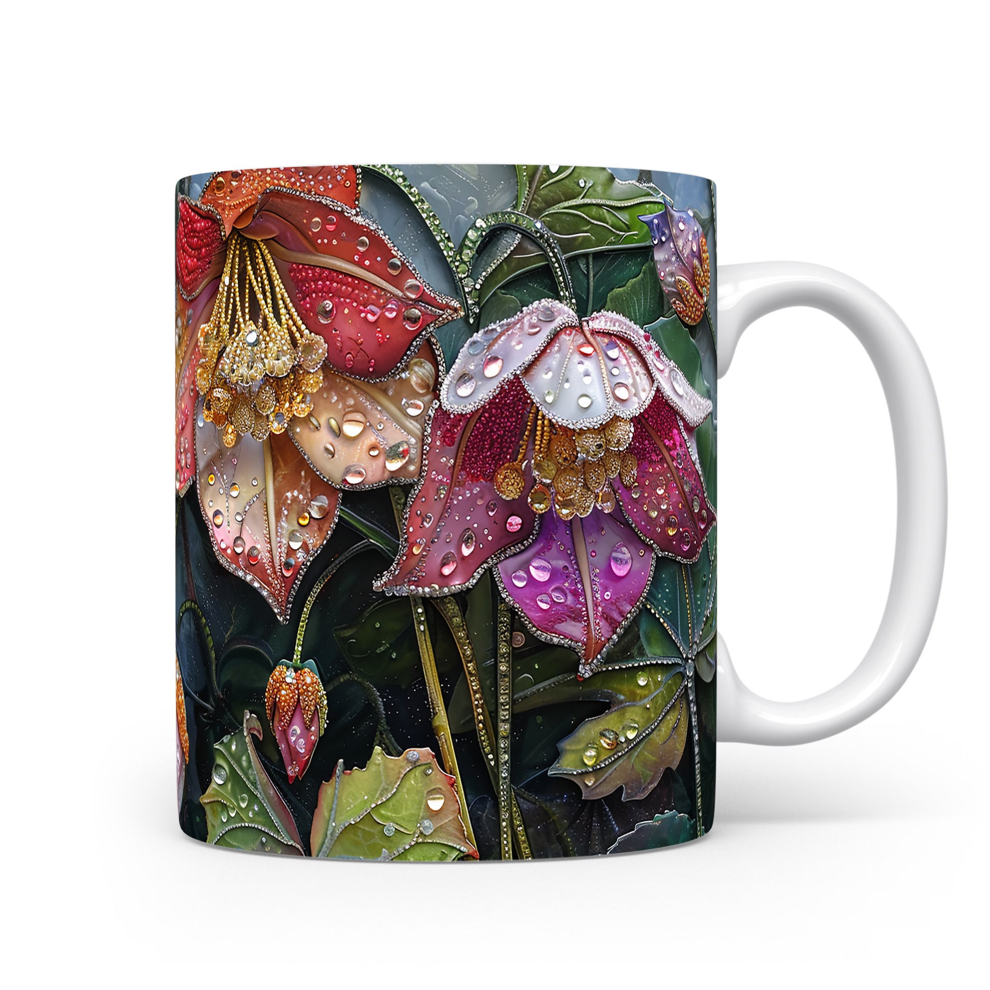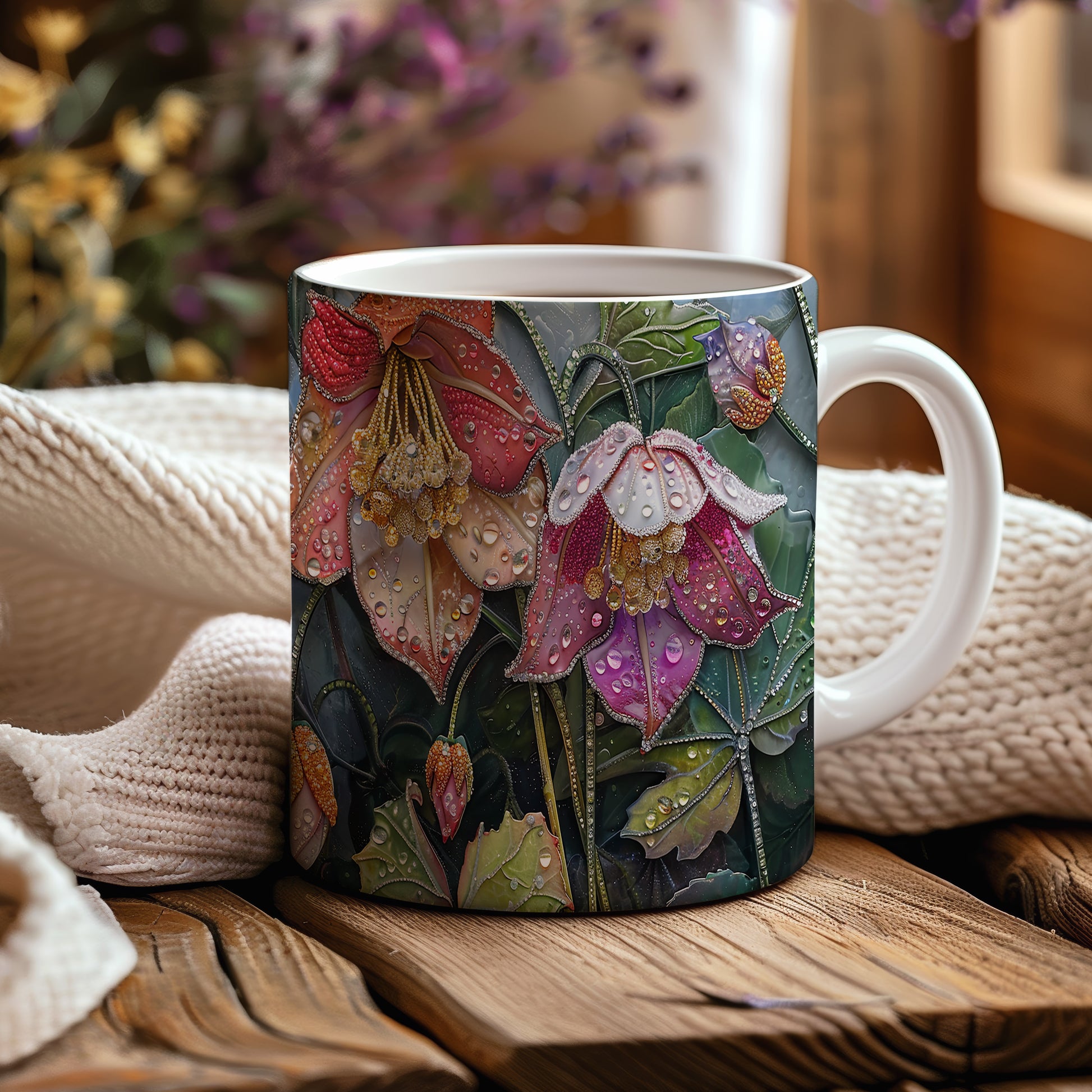 Tento hrnek je zdobený realistickým motivem květin s kapkami rosy, což mu dodává elegantní vzhled. Je ideální pro milovníky přírody a květin, skvělý tip na dárek pro každou příležitost. Materiál: keramika. Objem: 330 ml. Vhodné do myčky i mikrovlnky. Používání tohoto hrnku přináší radost z každého doušku.