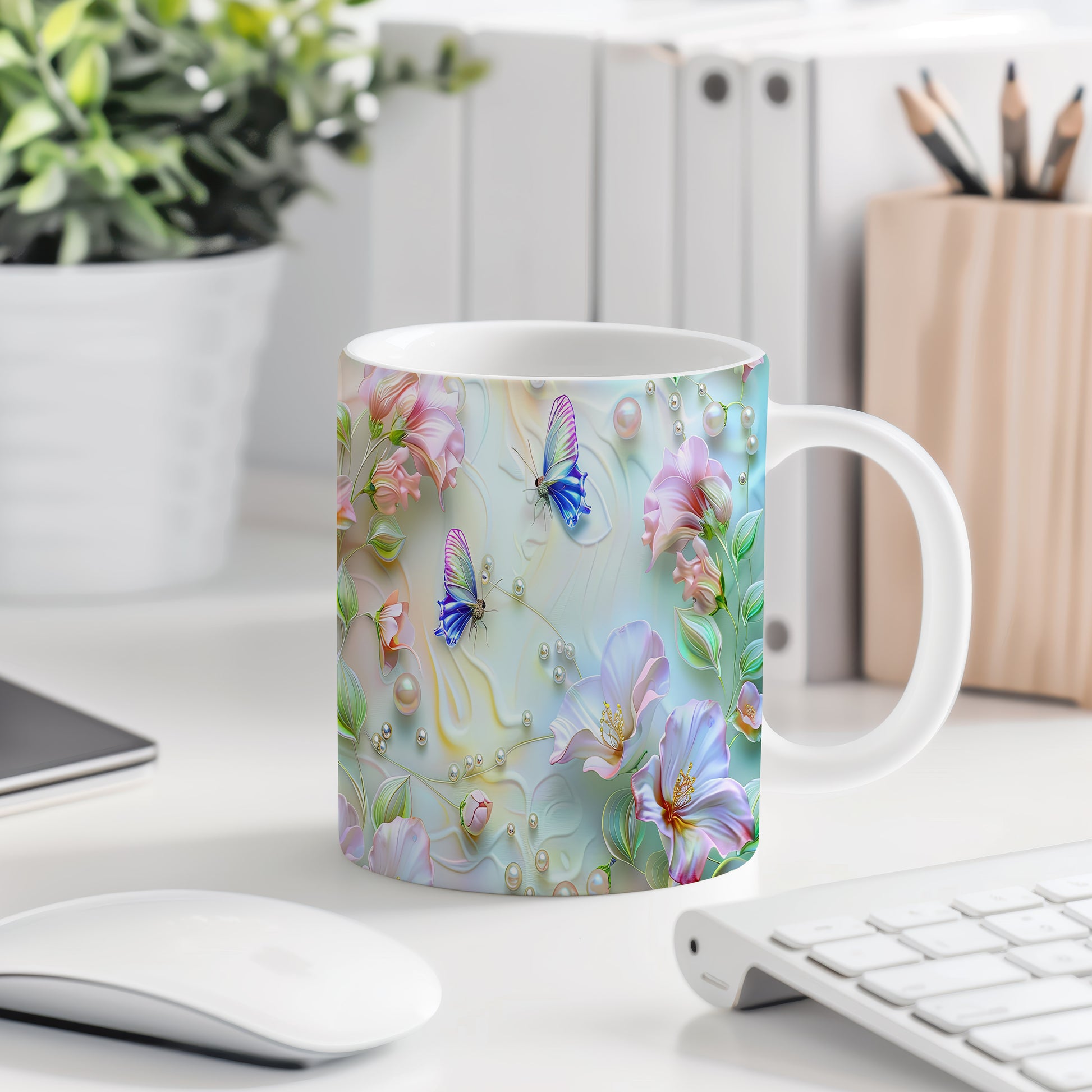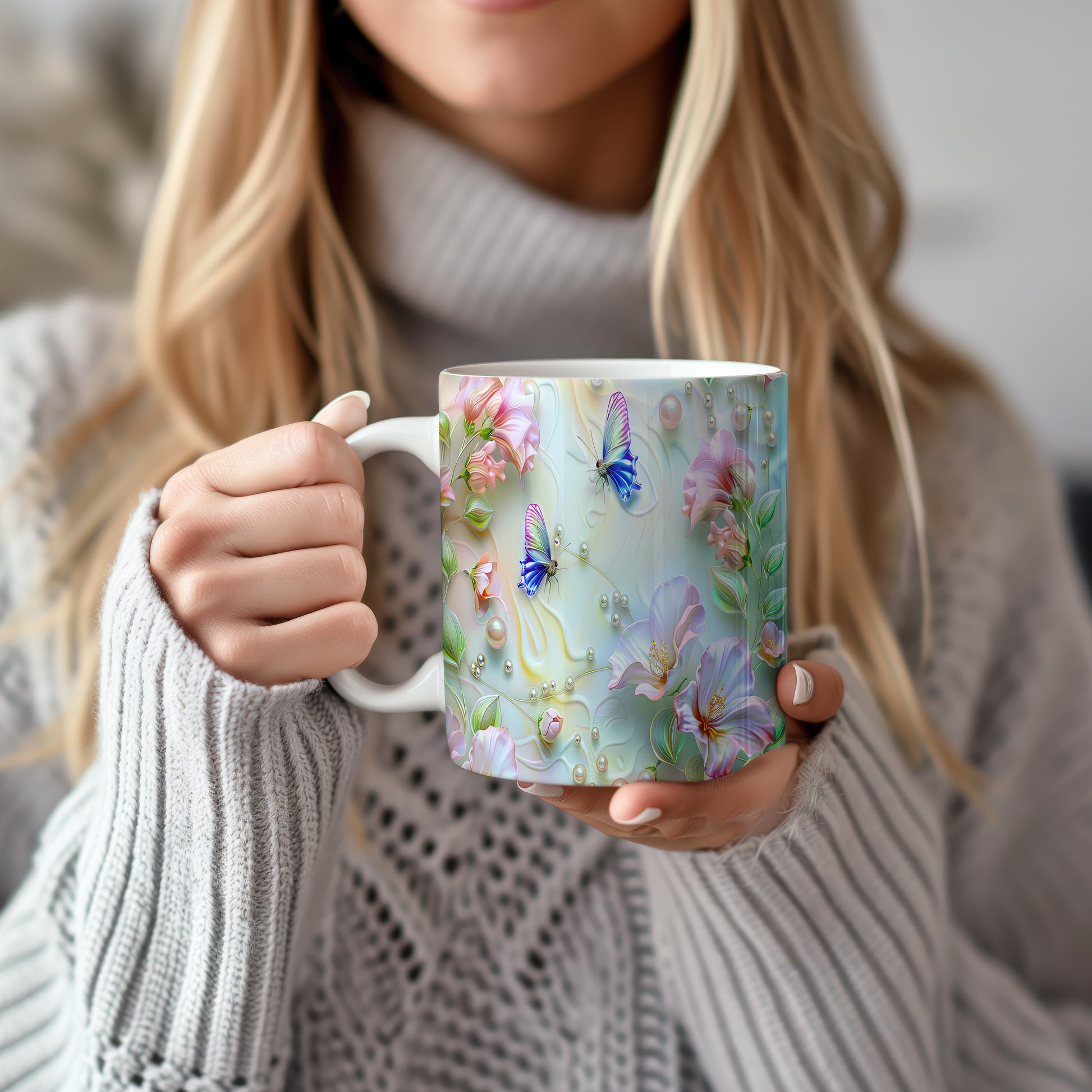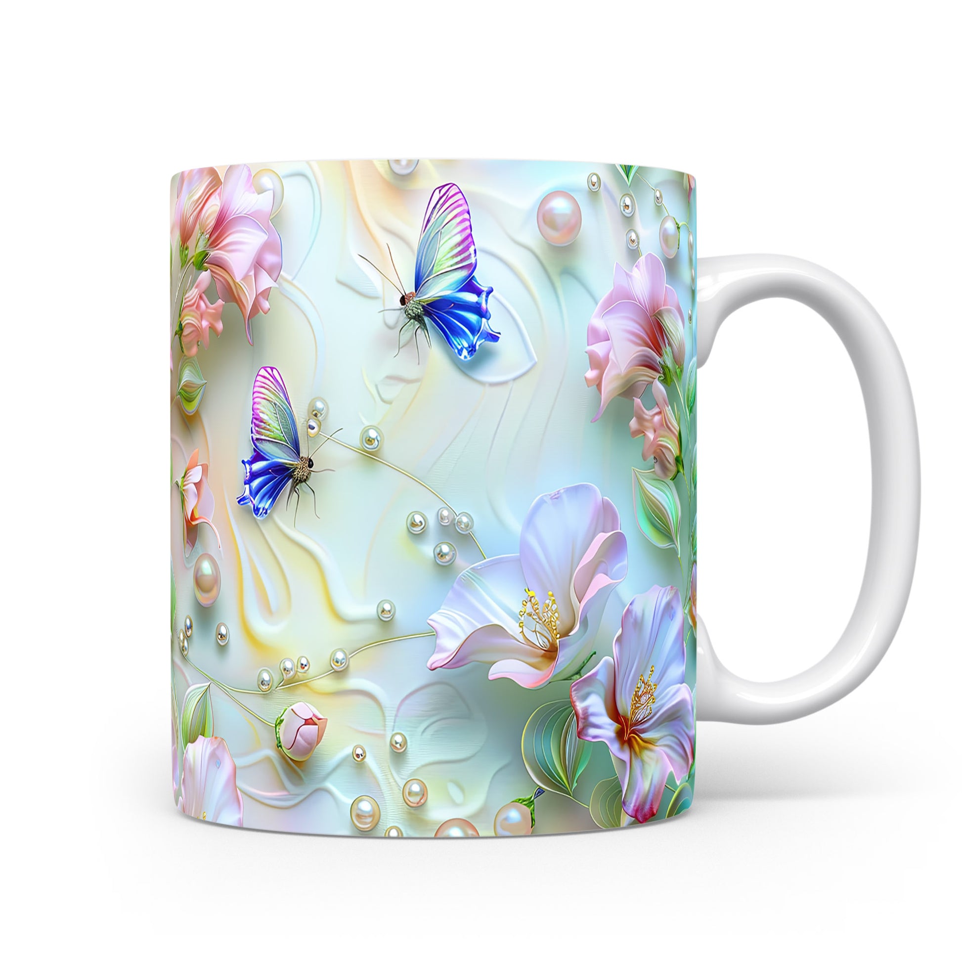 Tento keramický hrnek s jemným motivem květin a modrých motýlů přináší do vašeho dne nádech elegance a přírody. Je ideální pro milovníky květin a přírody, skvělý tip na dárek pro blízké. Materiál: keramika. Objem: 330 ml. Vhodné do myčky i mikrovlnky. Díky svému designu se stane oblíbeným společníkem při každém doušku vašeho oblíbeného nápoje.