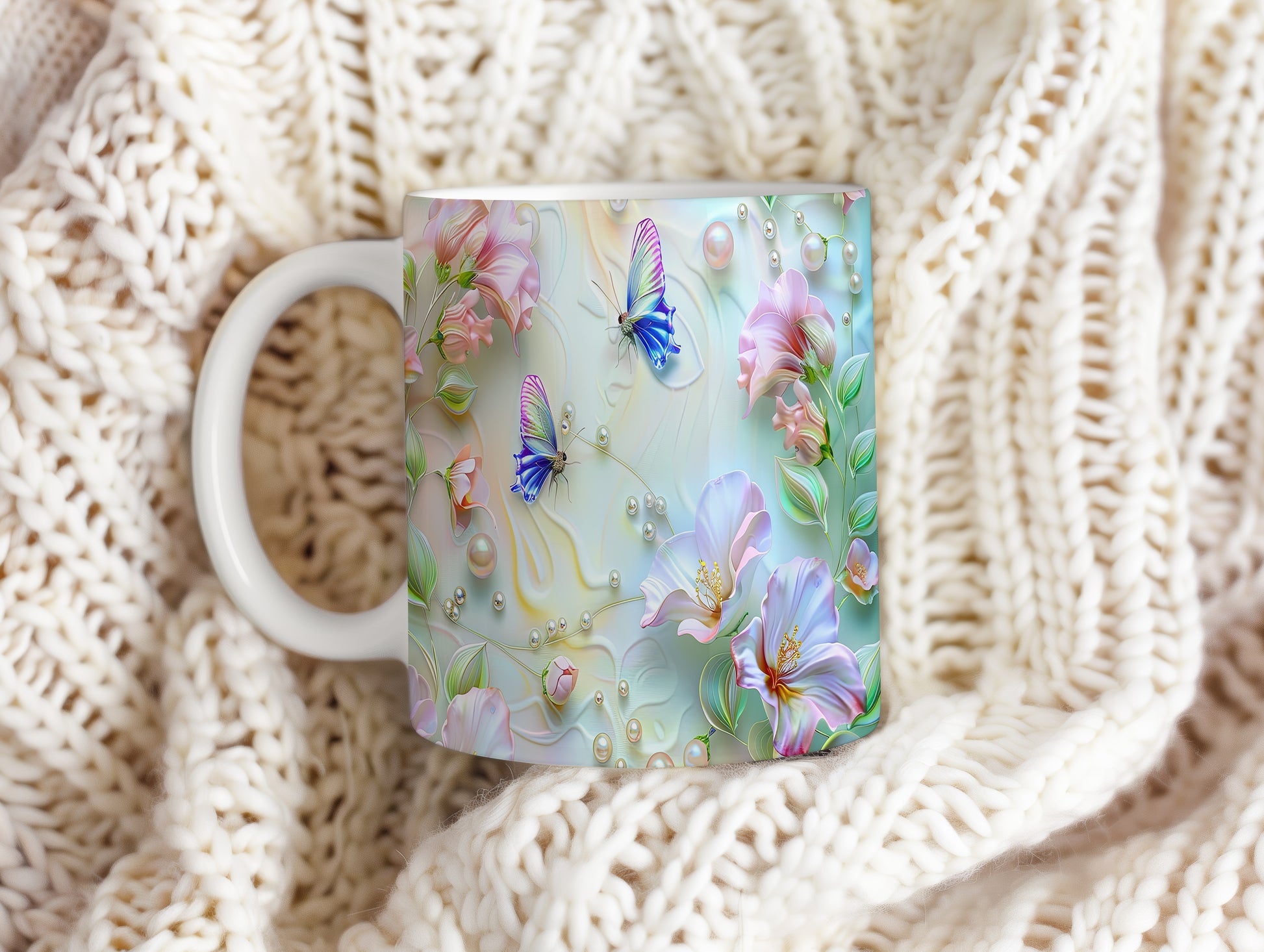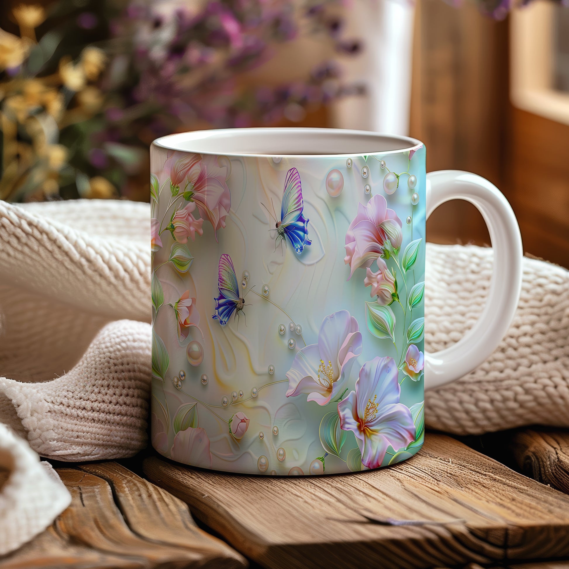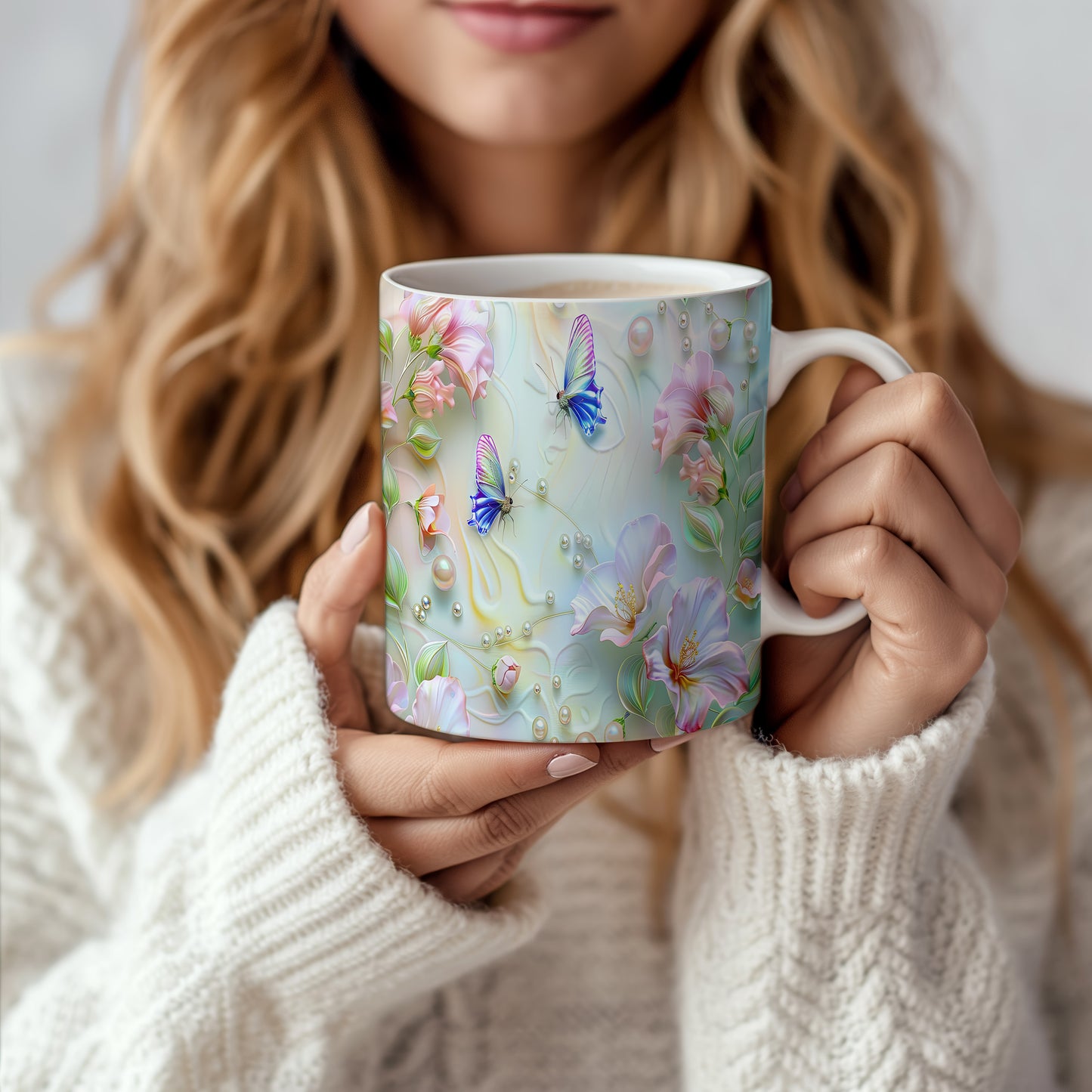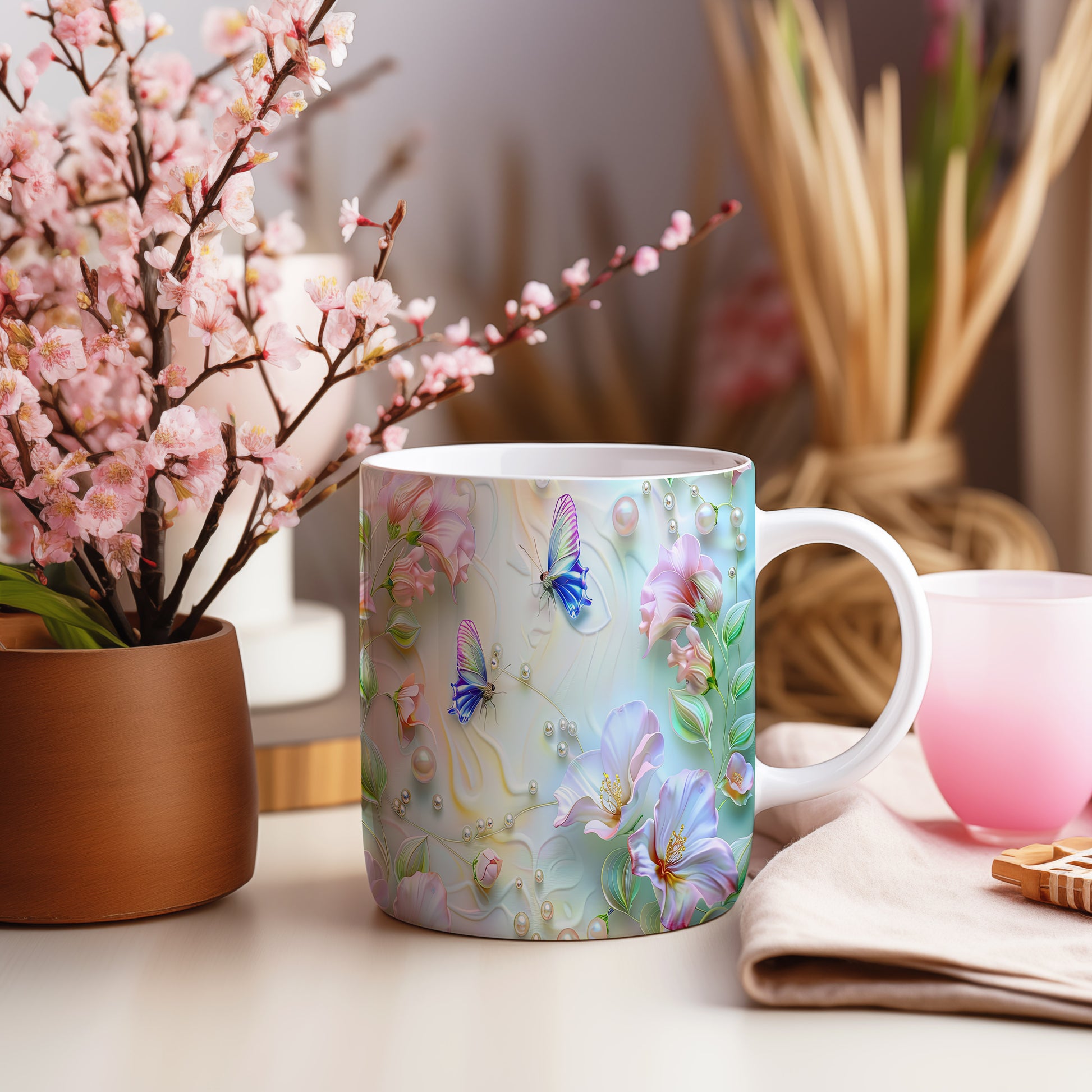 Tento keramický hrnek s jemným motivem květin a modrých motýlů přináší do vašeho dne nádech elegance a přírody. Je ideální pro milovníky květin a přírody, skvělý tip na dárek pro blízké. Materiál: keramika. Objem: 330 ml. Vhodné do myčky i mikrovlnky. Díky svému designu se stane oblíbeným společníkem při každém doušku vašeho oblíbeného nápoje.