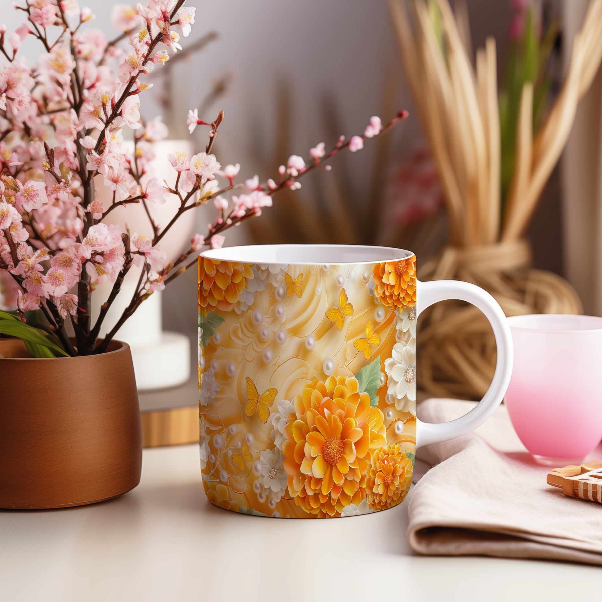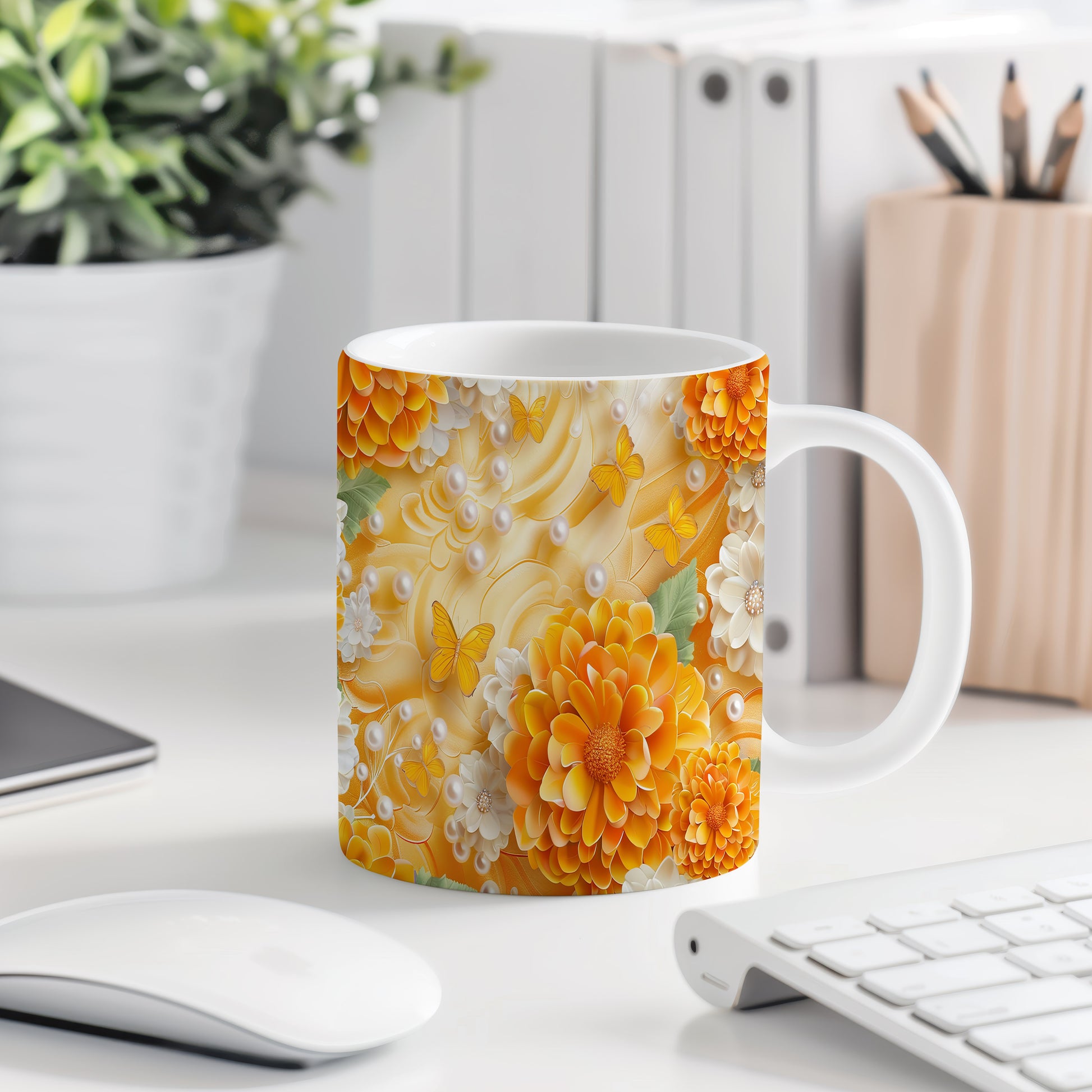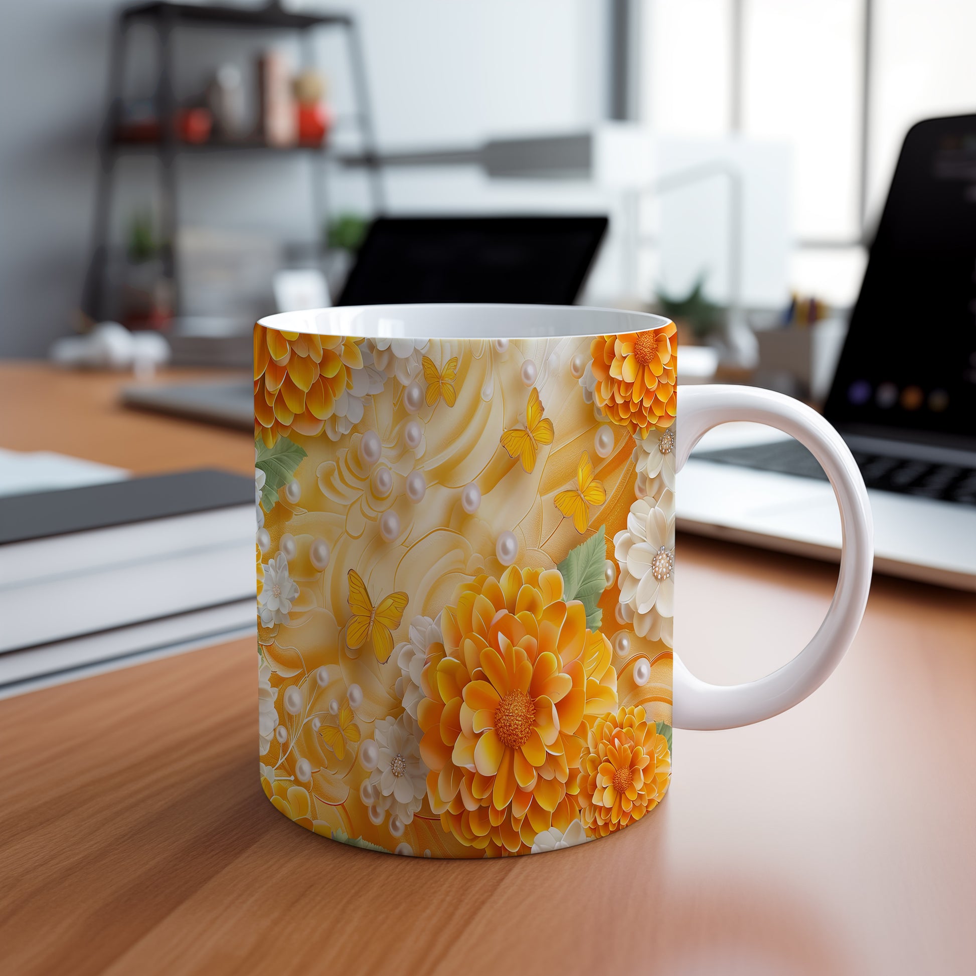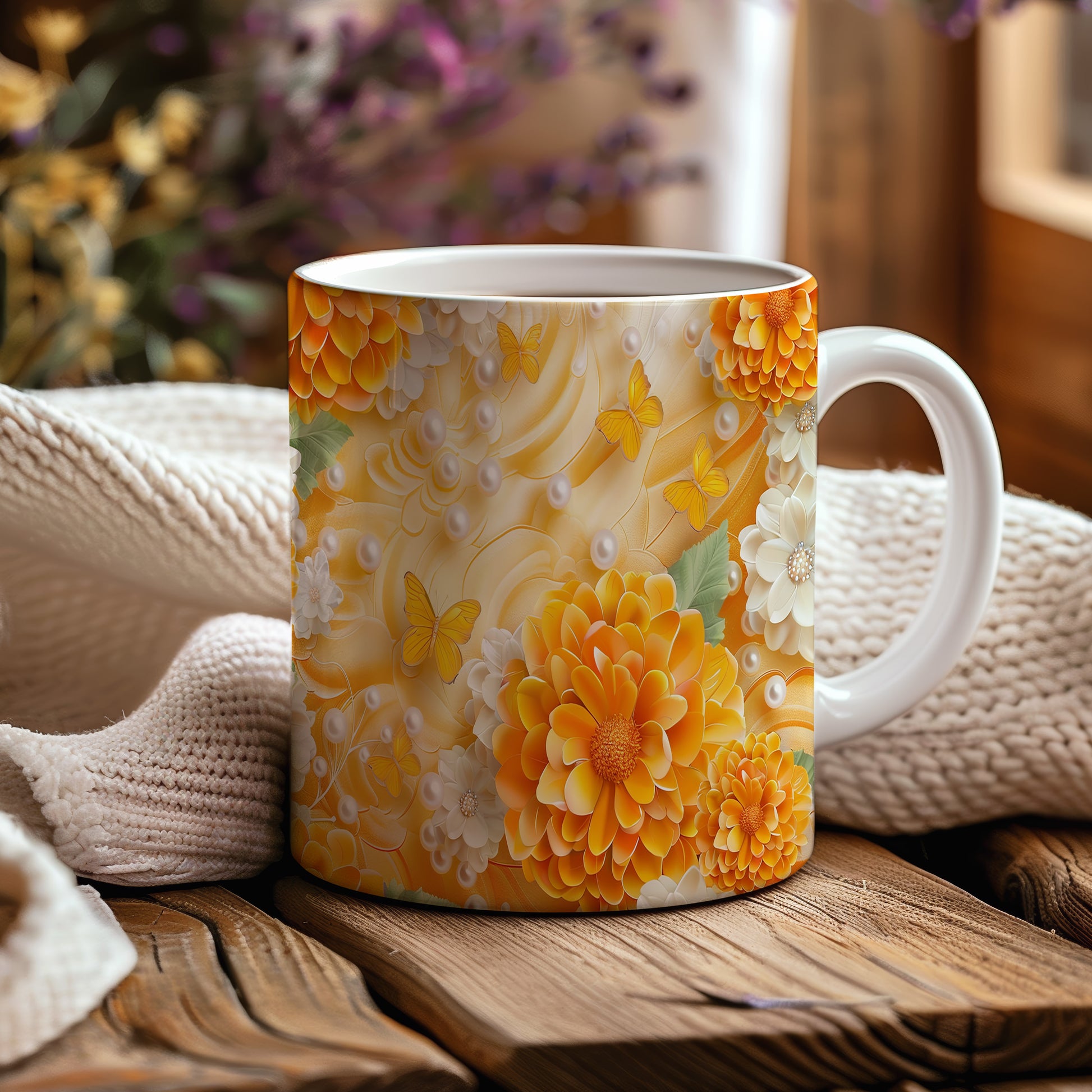 Tento hrnek s motivem pestrých květin a motýlů přináší do každého dne svěží nádech. Je ideální pro milovníky přírody a kreativních designů, skvělý tip na dárek pro blízké. Materiál: keramika. Objem: 330 ml. Vhodné do myčky i mikrovlnky. Používání tohoto hrnku vám zpříjemní každé ráno a dodá radost do vašeho dne.