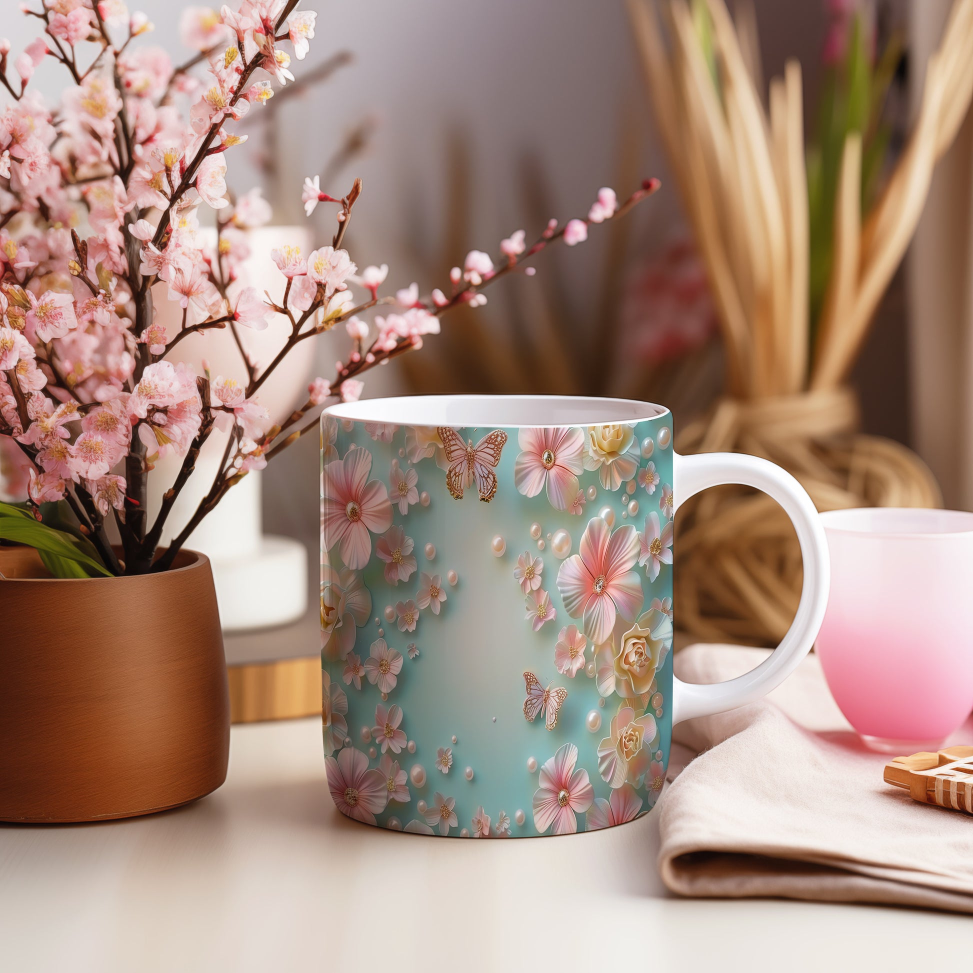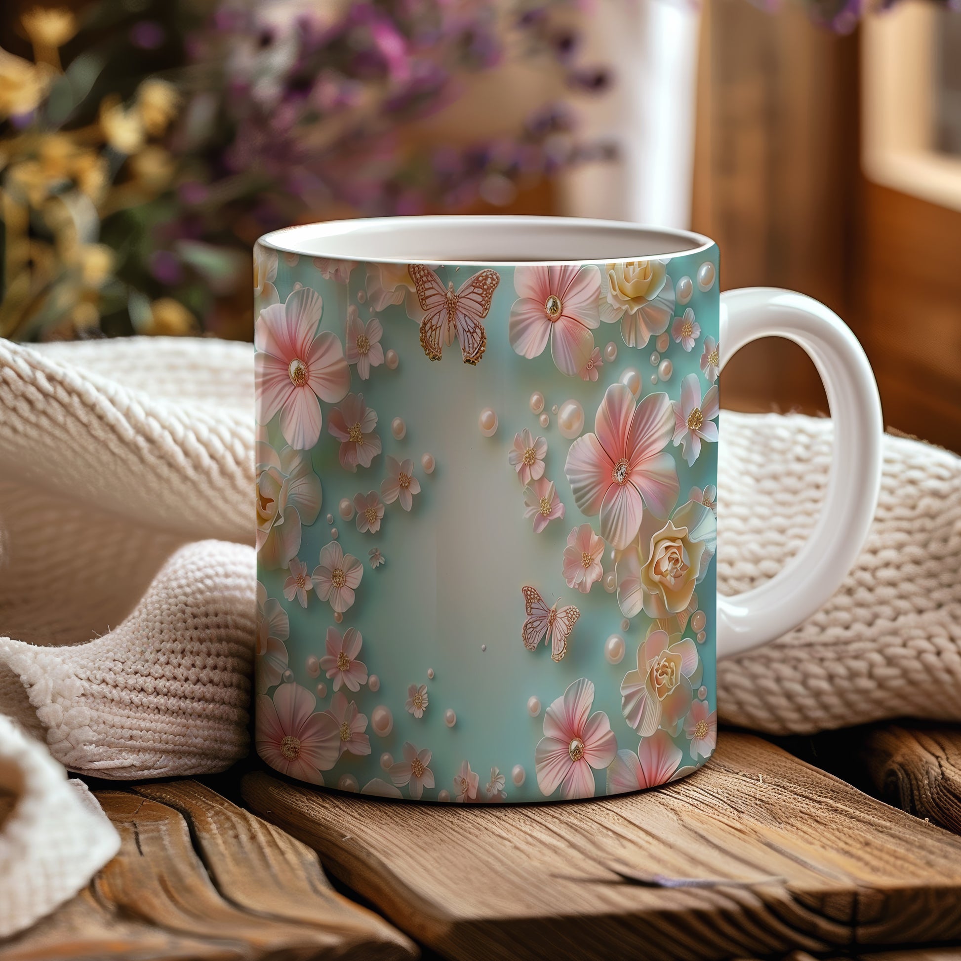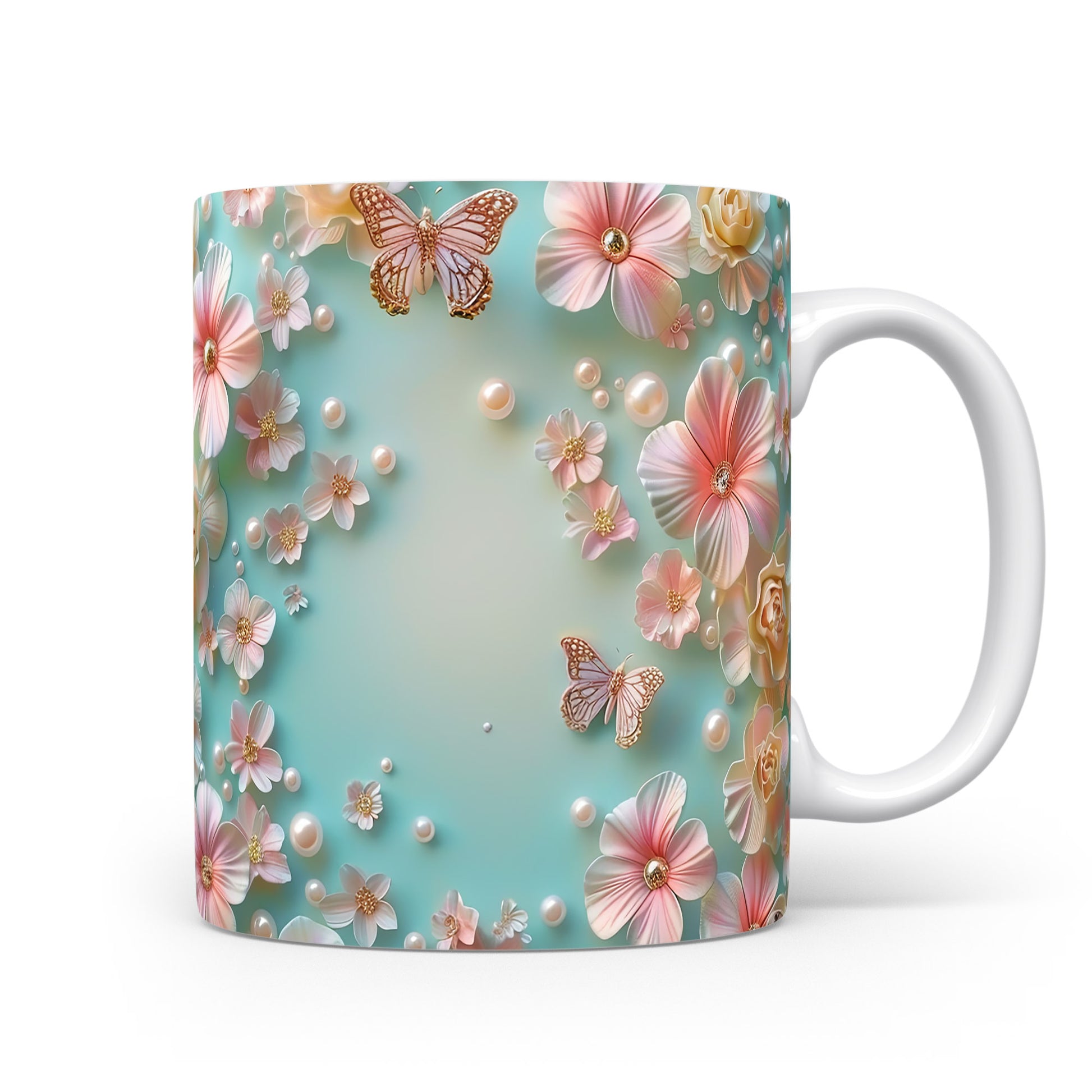 Hrnek s jemnými květinami a motýly na modrém pozadí. Tento elegantní kousek je ideální pro milovníky přírody a designu, skvěle se hodí jako dárek pro přátele či rodinu. Materiál: keramika. Objem: 330 ml. Vhodné do myčky i mikrovlnky. Díky svému stylovému vzhledu přináší radost do každodenního pití.