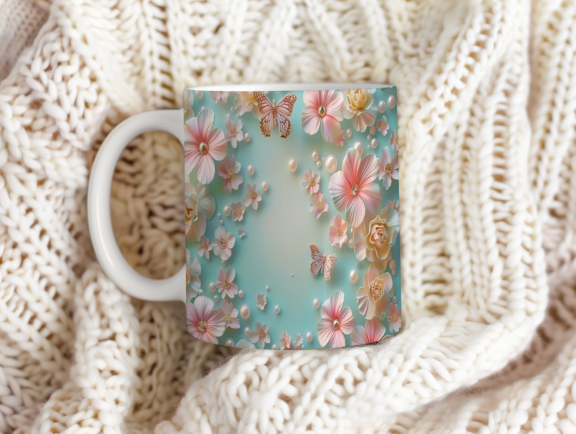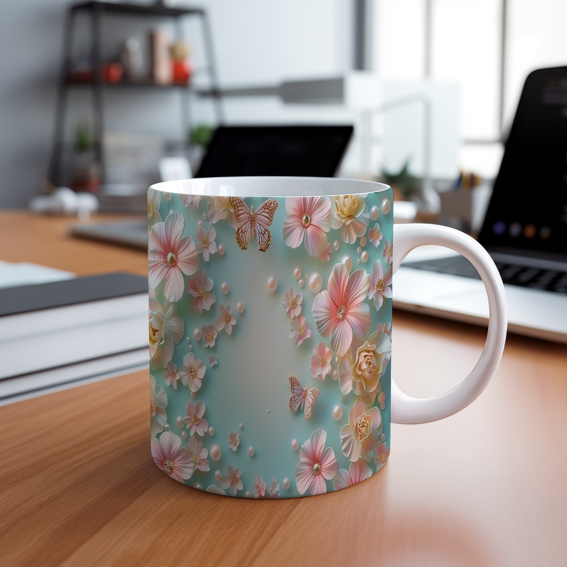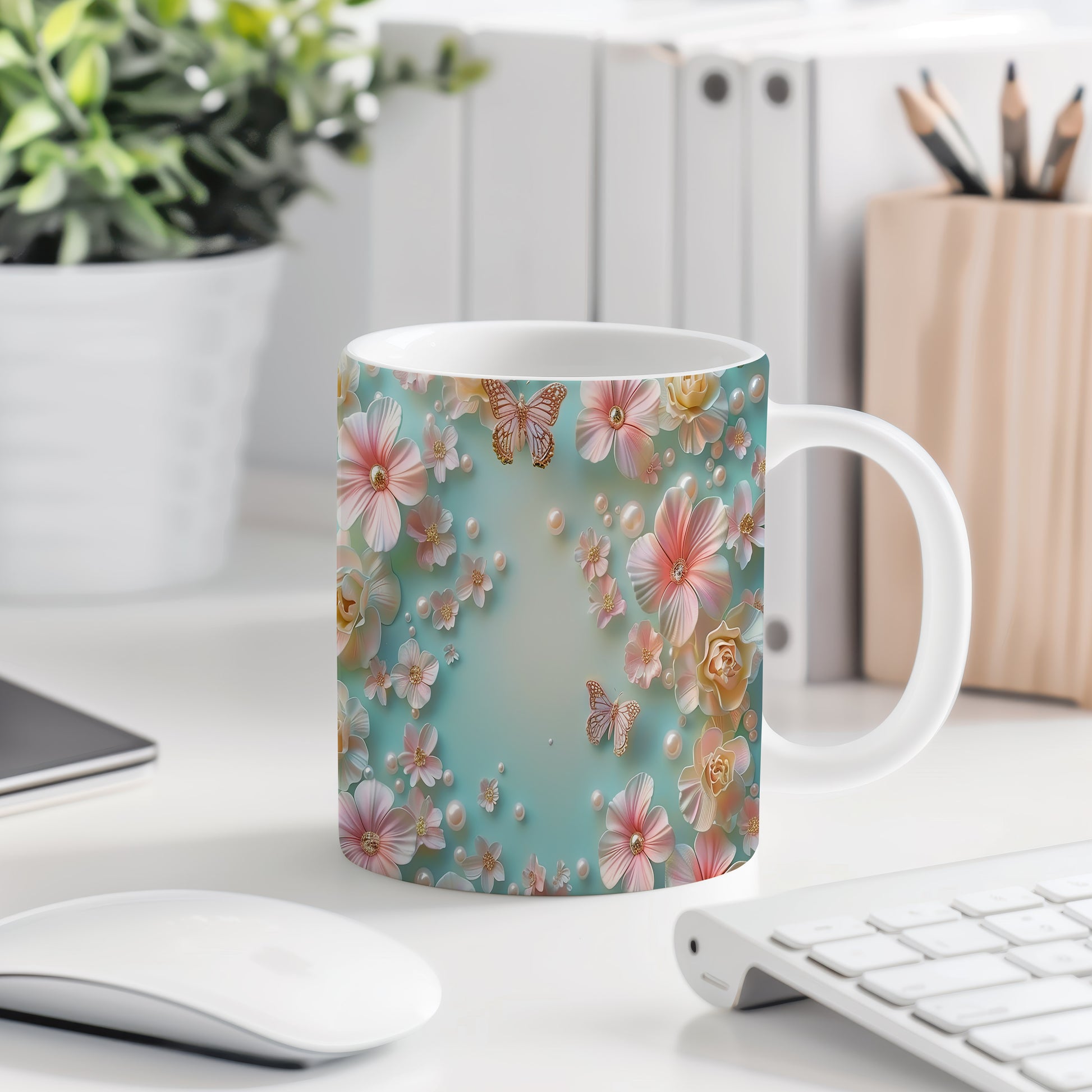 Hrnek s jemnými květinami a motýly na modrém pozadí. Tento elegantní kousek je ideální pro milovníky přírody a designu, skvěle se hodí jako dárek pro přátele či rodinu. Materiál: keramika. Objem: 330 ml. Vhodné do myčky i mikrovlnky. Díky svému stylovému vzhledu přináší radost do každodenního pití.