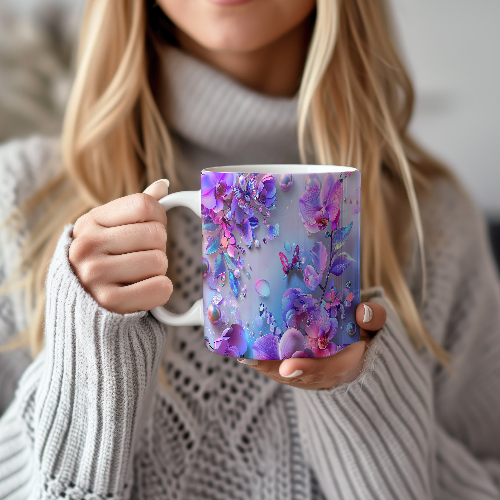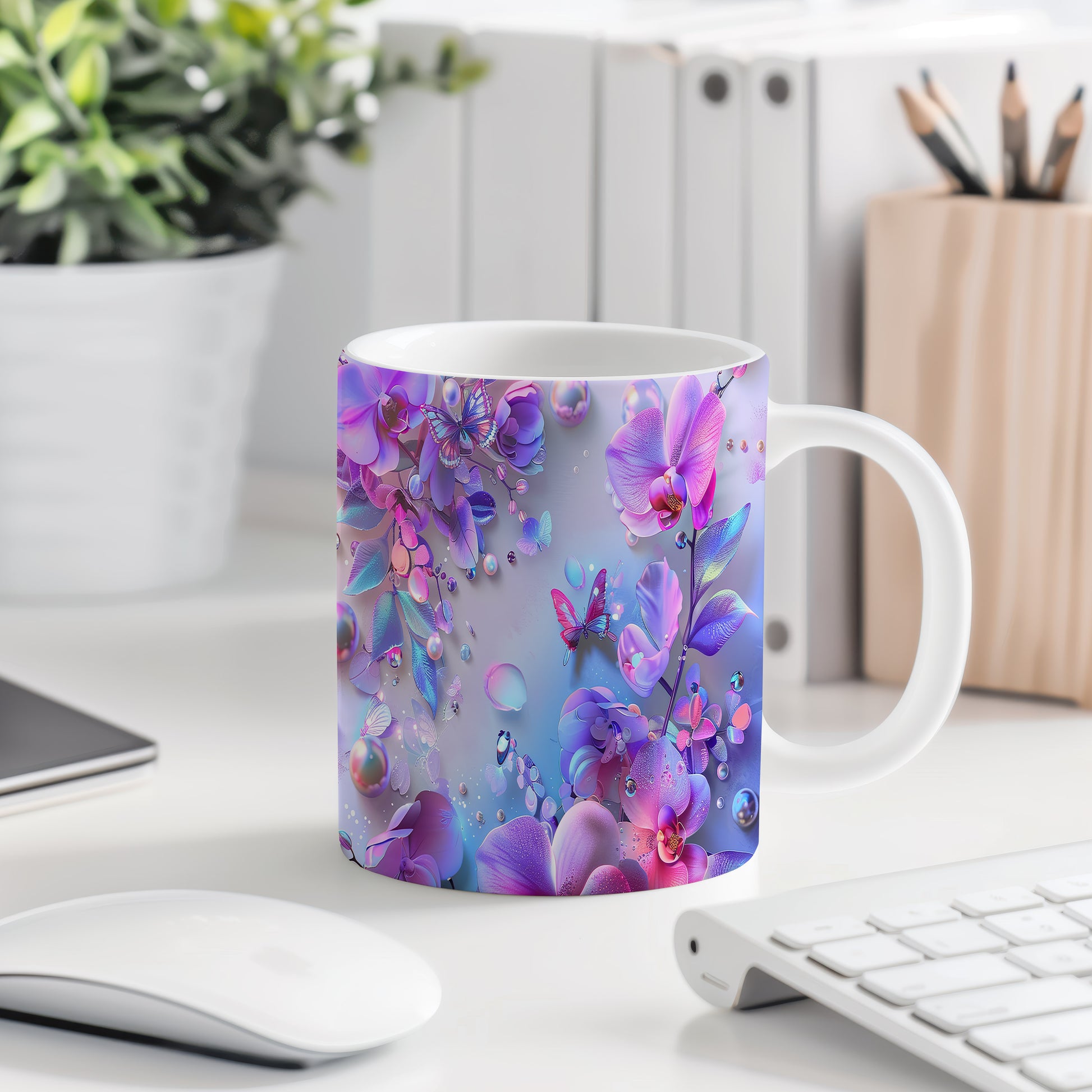 Keramický hrnek s krásným květinovým vzorem a motýly, ideální pro milovníky přírody. Tento hrnek je skvělým dárkem pro každého, kdo ocení jemné detaily a barevnost. Materiál: keramika. Objem: 330 ml. Vhodné do myčky i mikrovlnky. Používání tohoto hrnku přináší radost z pití oblíbeného nápoje.