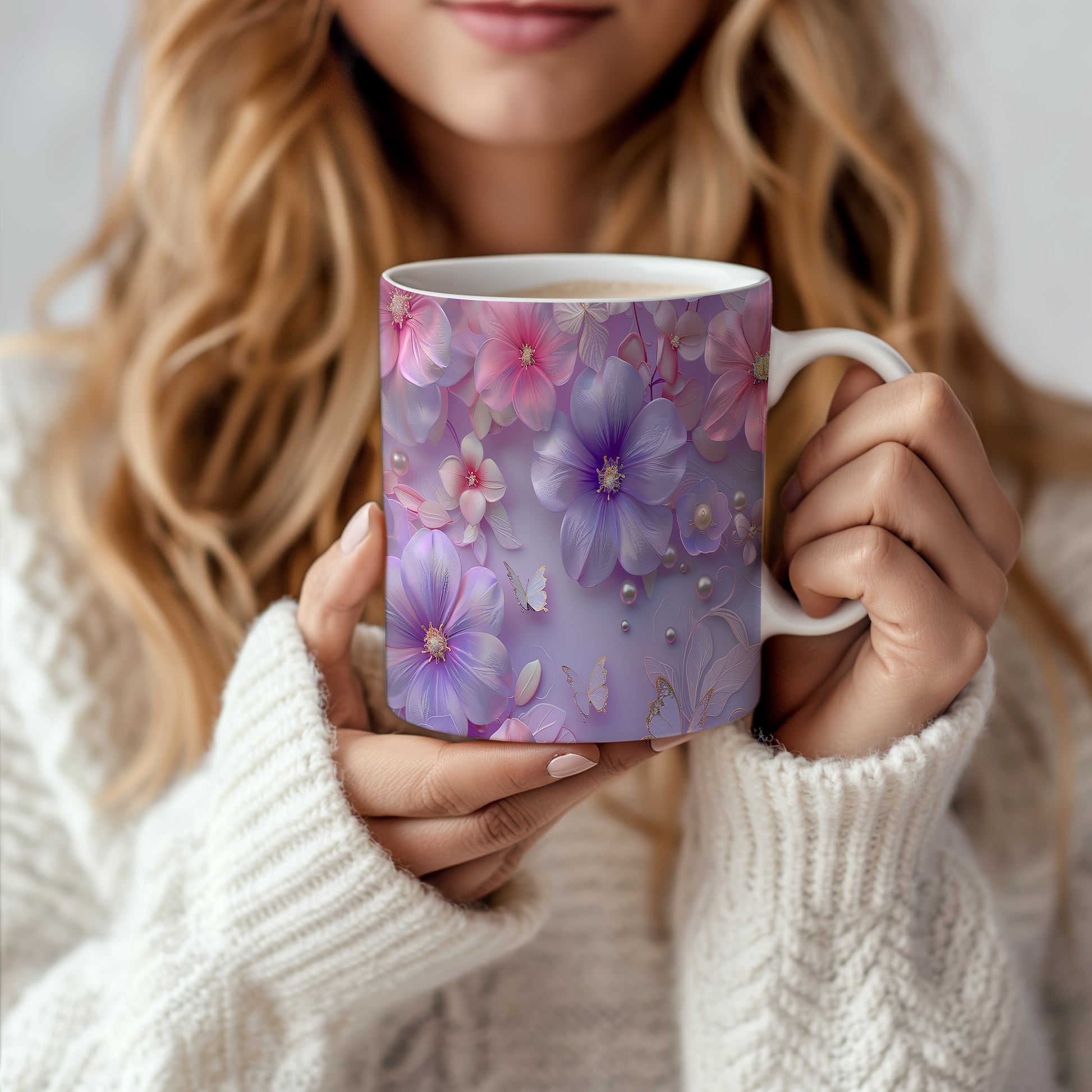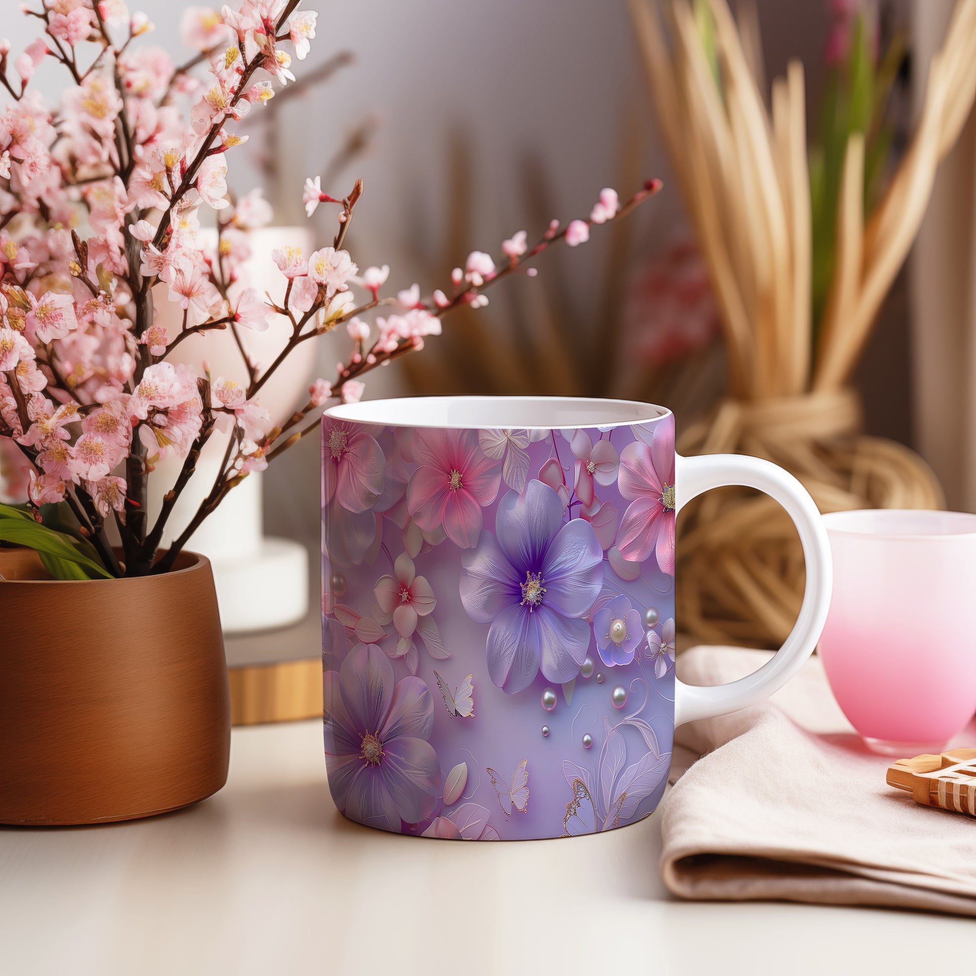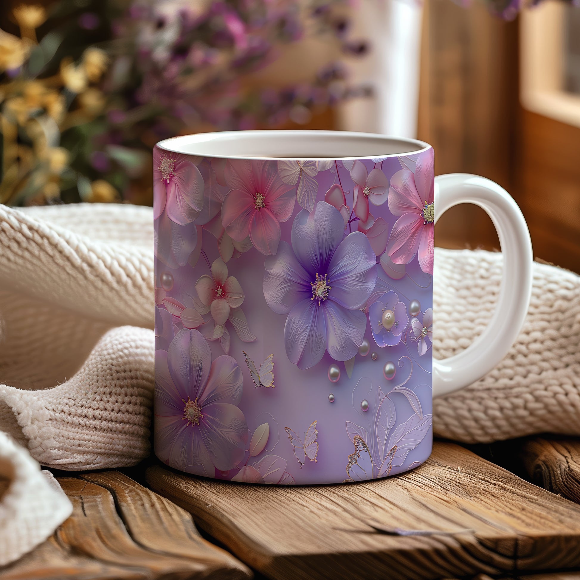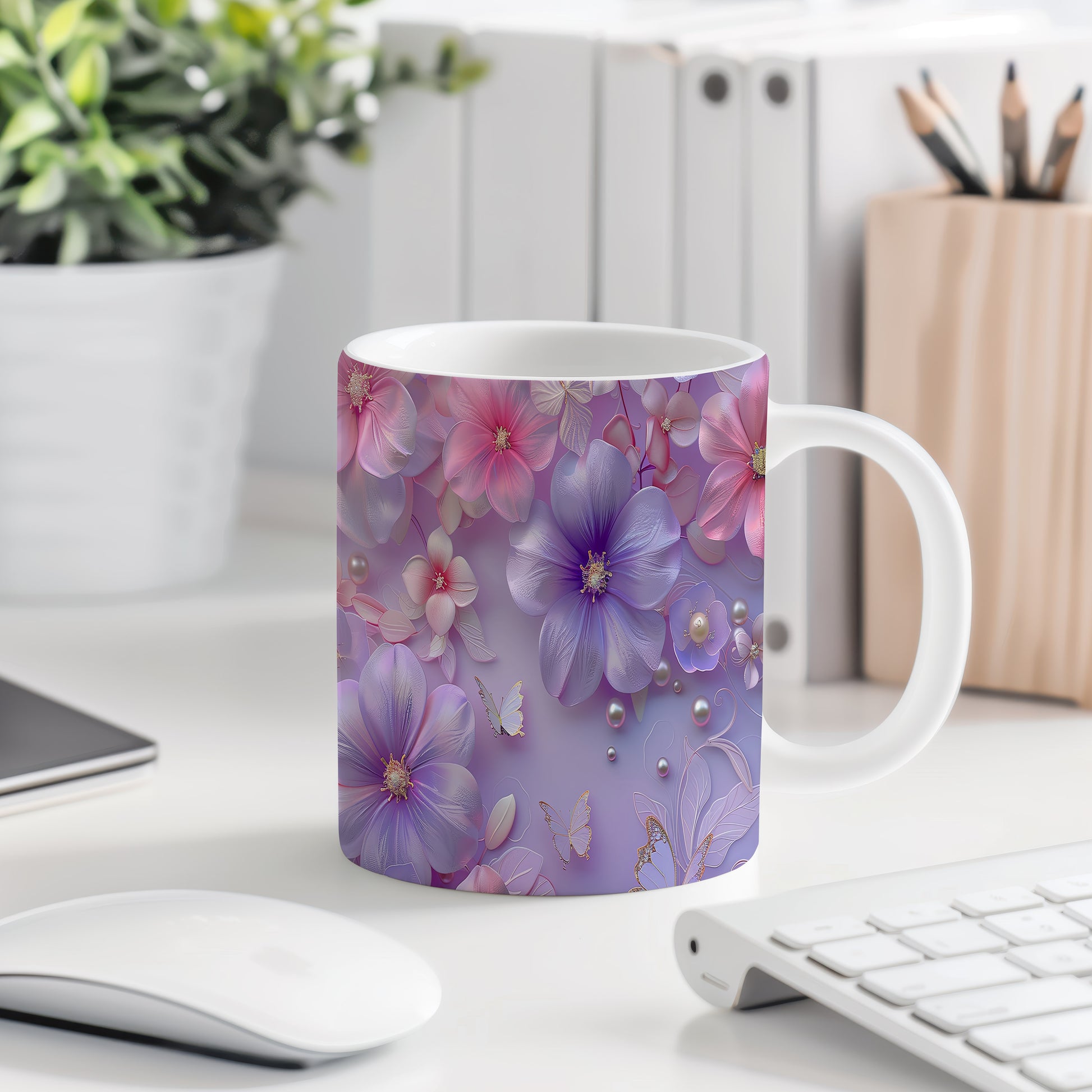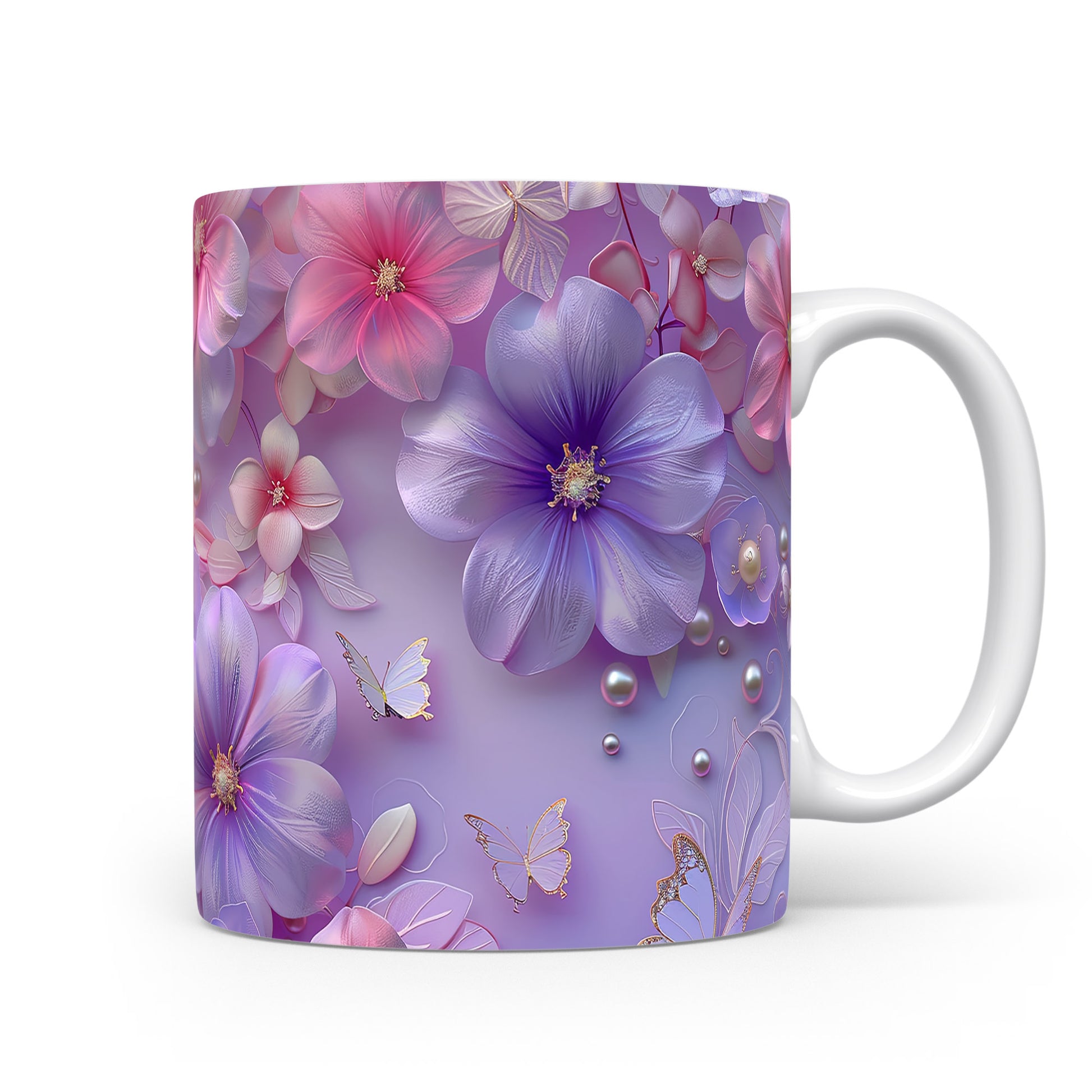 Tento keramický hrnek s jemným květinovým vzorem a motýly přináší do vašeho dne nádech elegance a přírody. Je ideální pro milovníky květin a přírodních motivů, skvělý tip na dárek pro přátele nebo rodinu. Materiál: keramika. Objem: 330 ml. Vhodné do myčky i mikrovlnky. Používáním tohoto hrnku si užijete nejen krásný design, ale také praktické využití.
