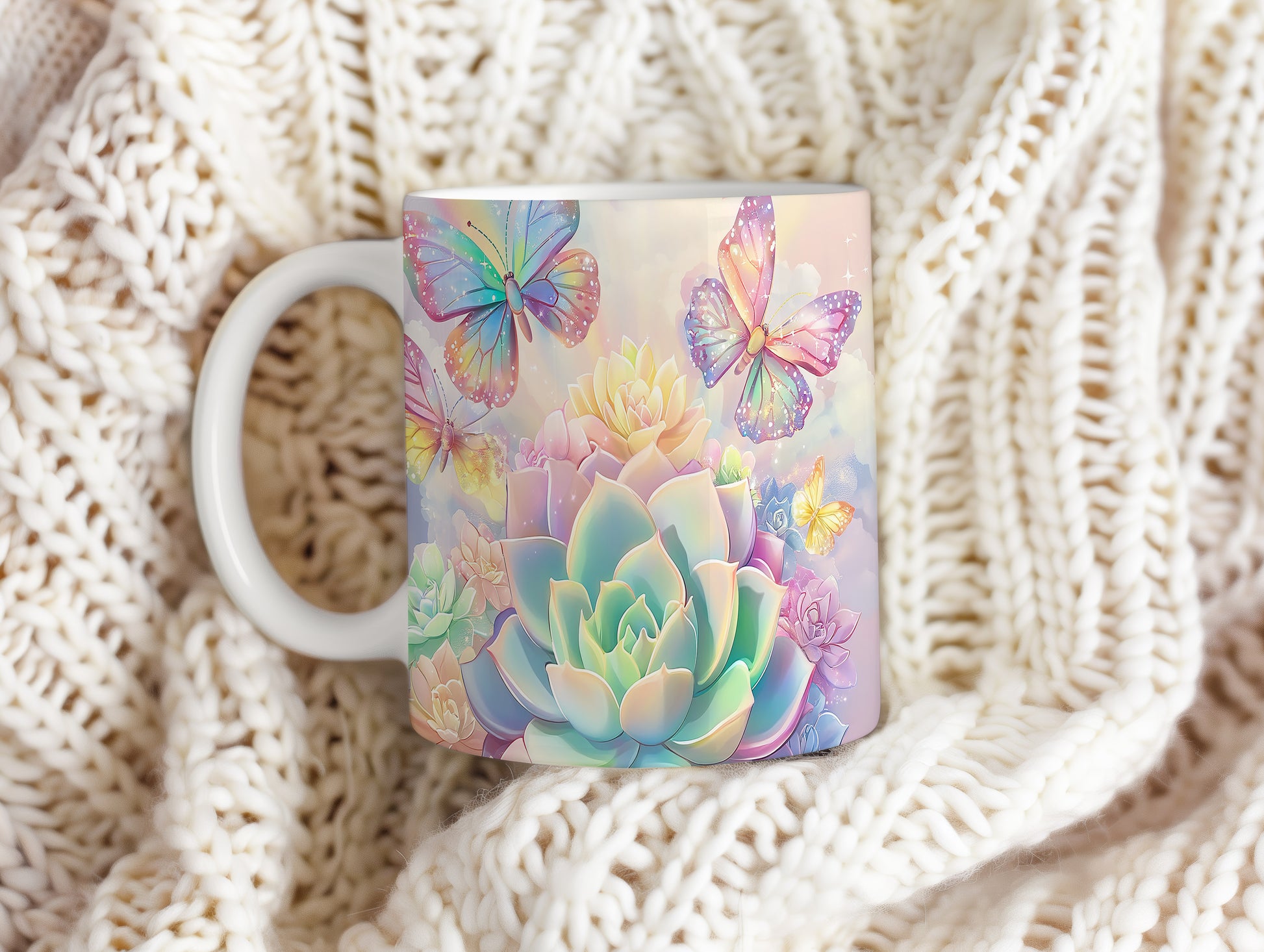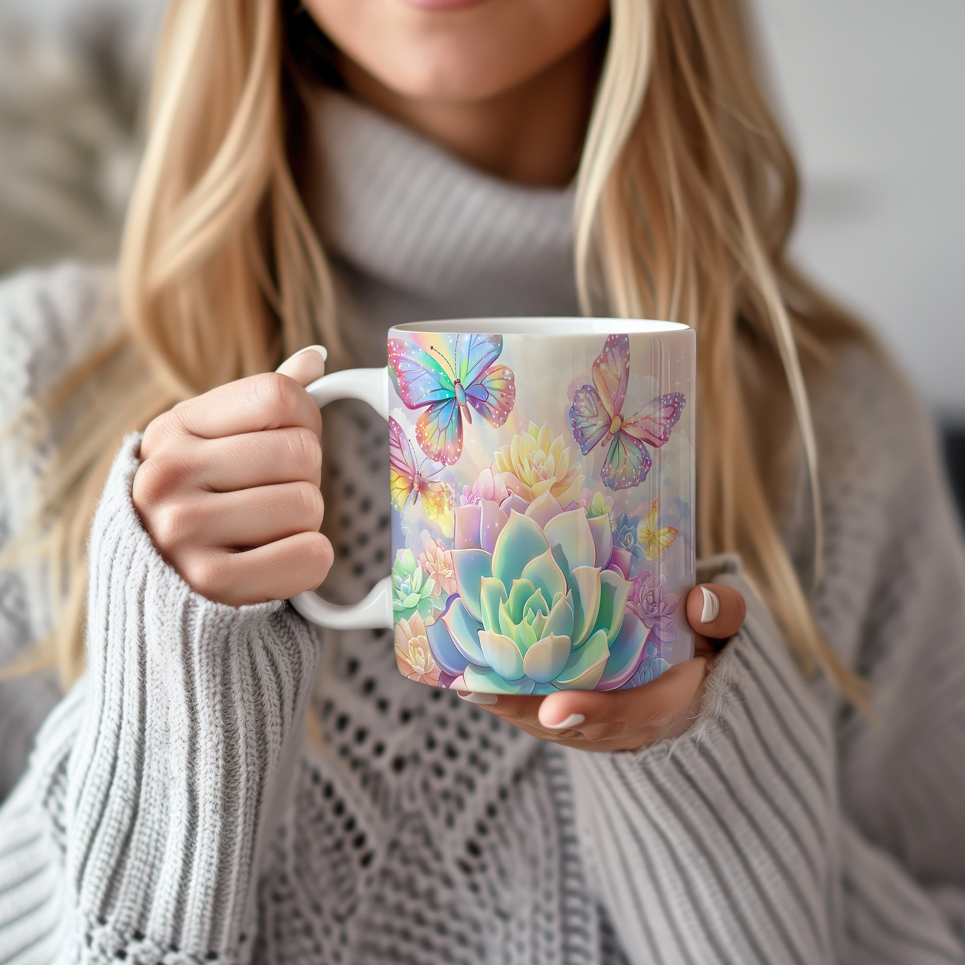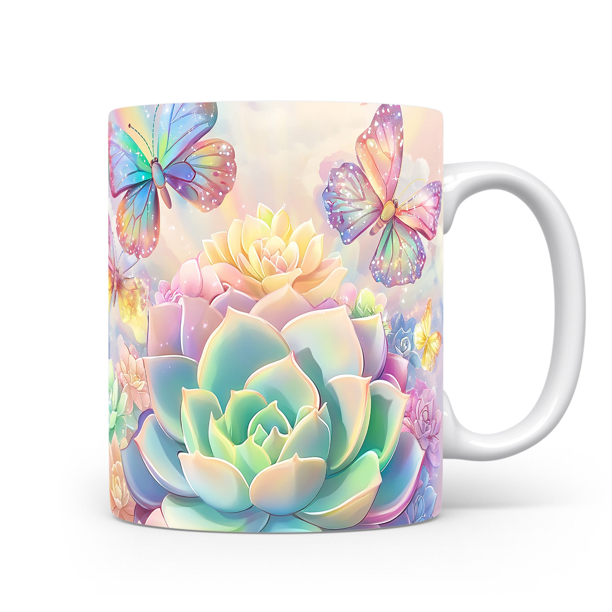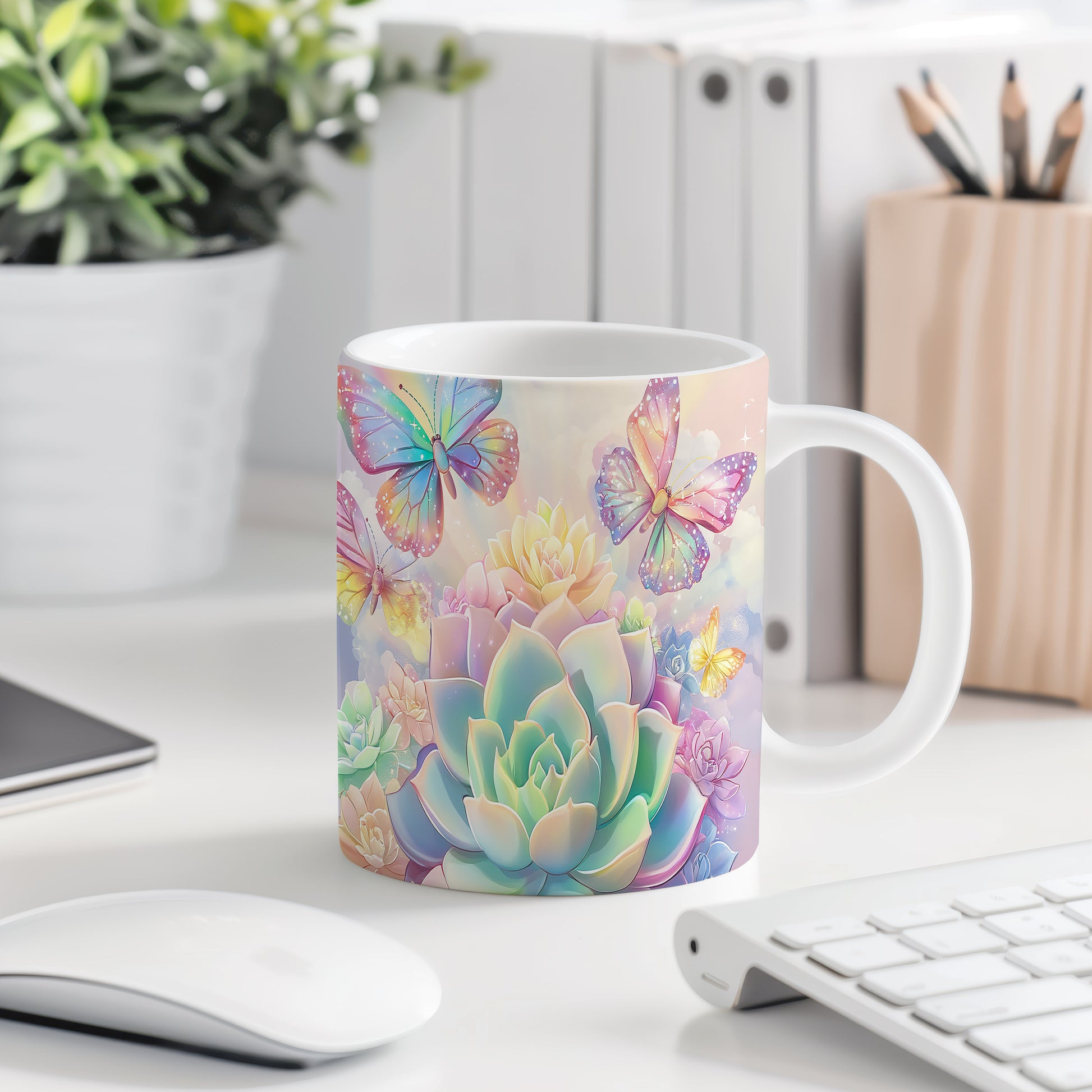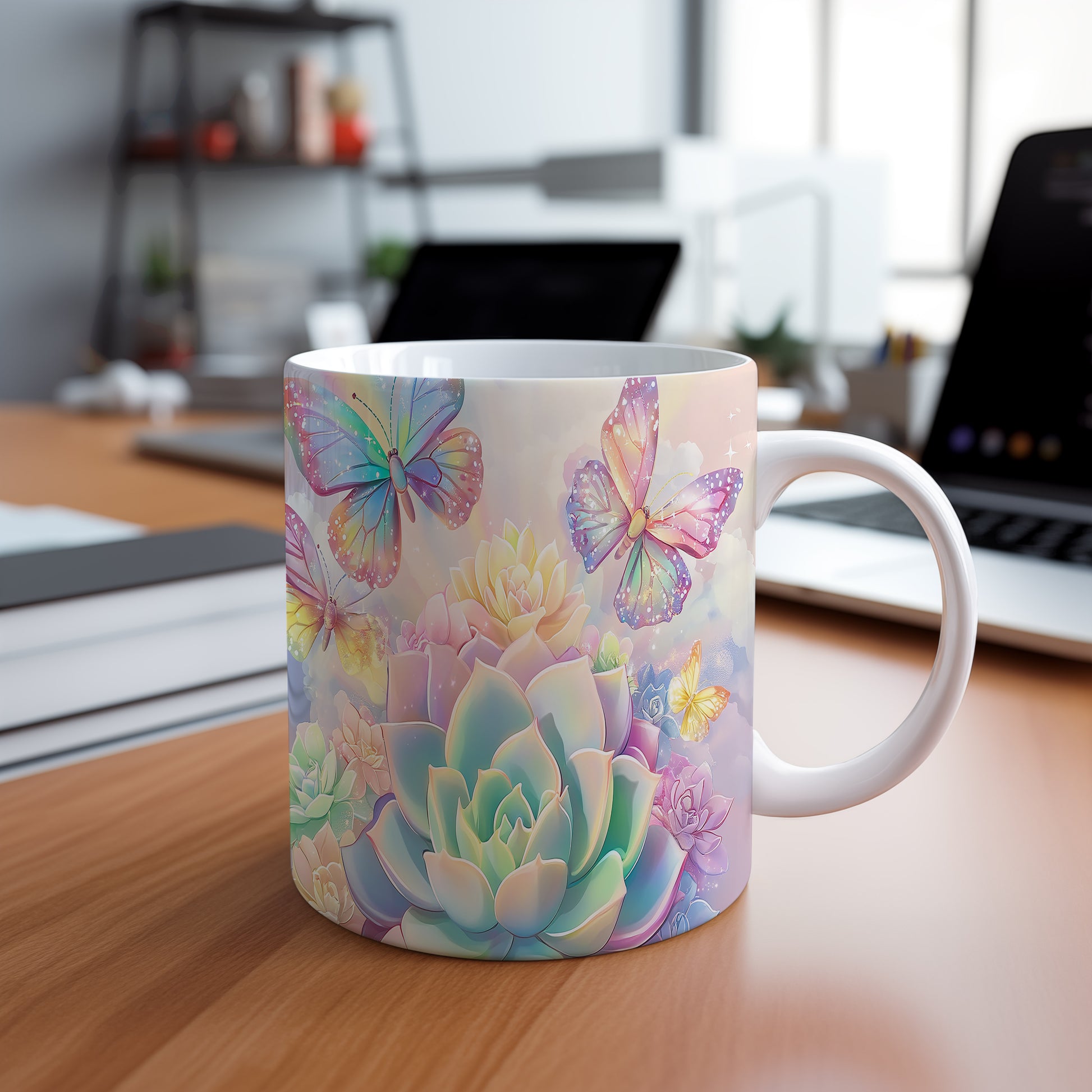 Keramický hrnek s krásným květinovým motivem a barevnými motýly. Tento hrnek je ideální pro každodenní použití a skvělým dárkem pro milovníky přírody. Materiál: keramika. Objem: 330 ml. Vhodné do myčky i mikrovlnky. Užívejte si svůj oblíbený nápoj s tímto stylovým kouskem.
