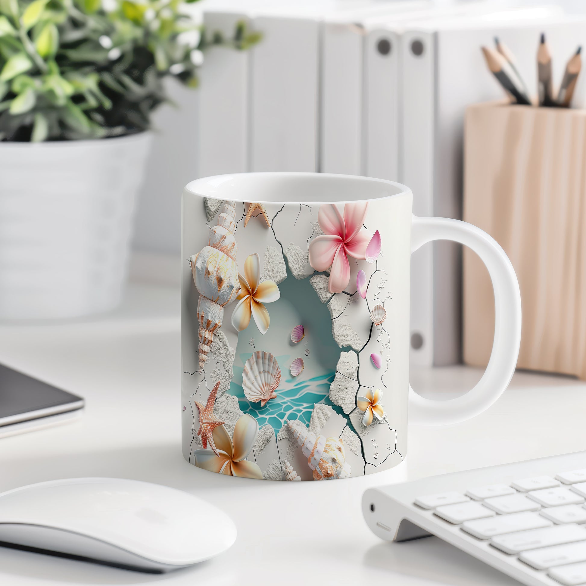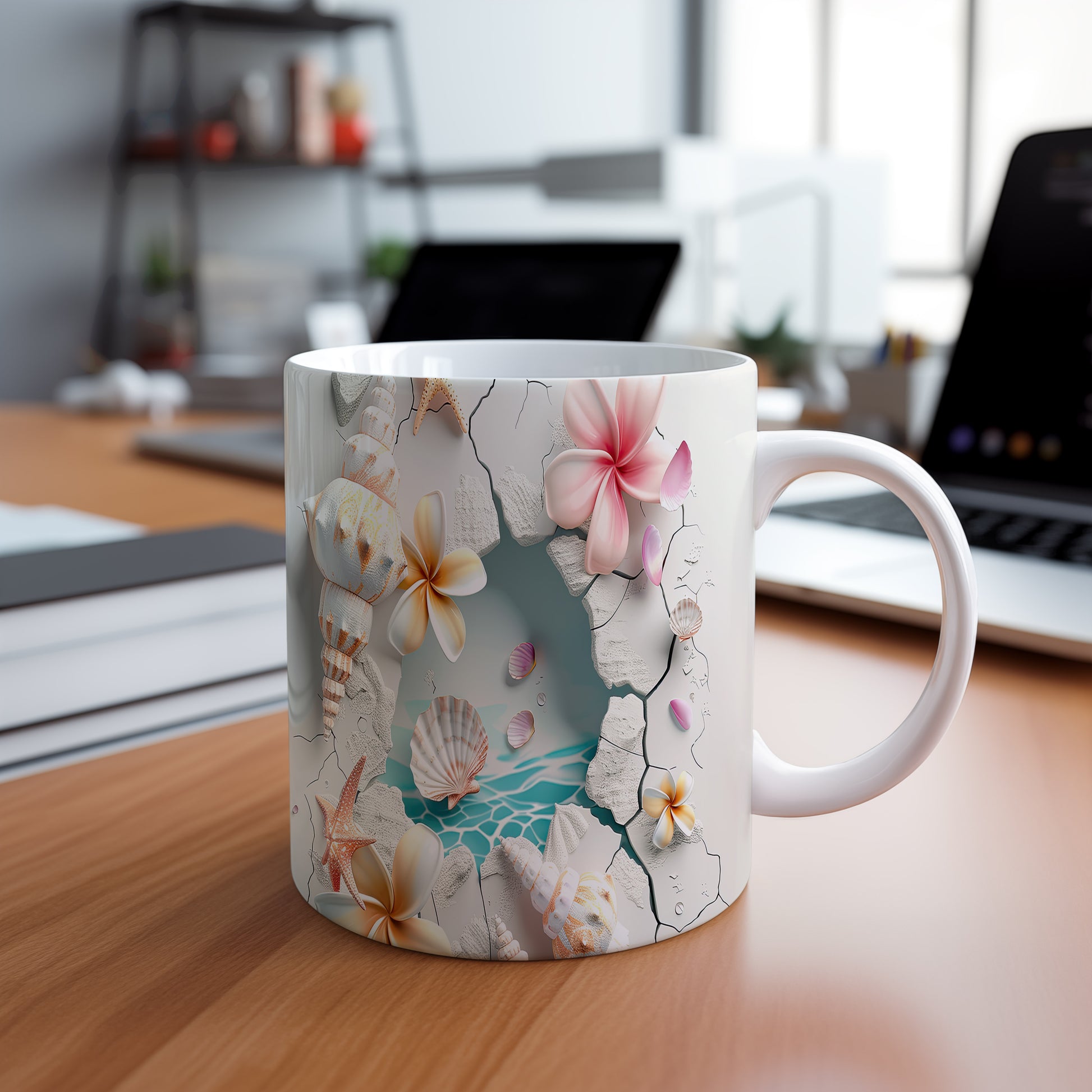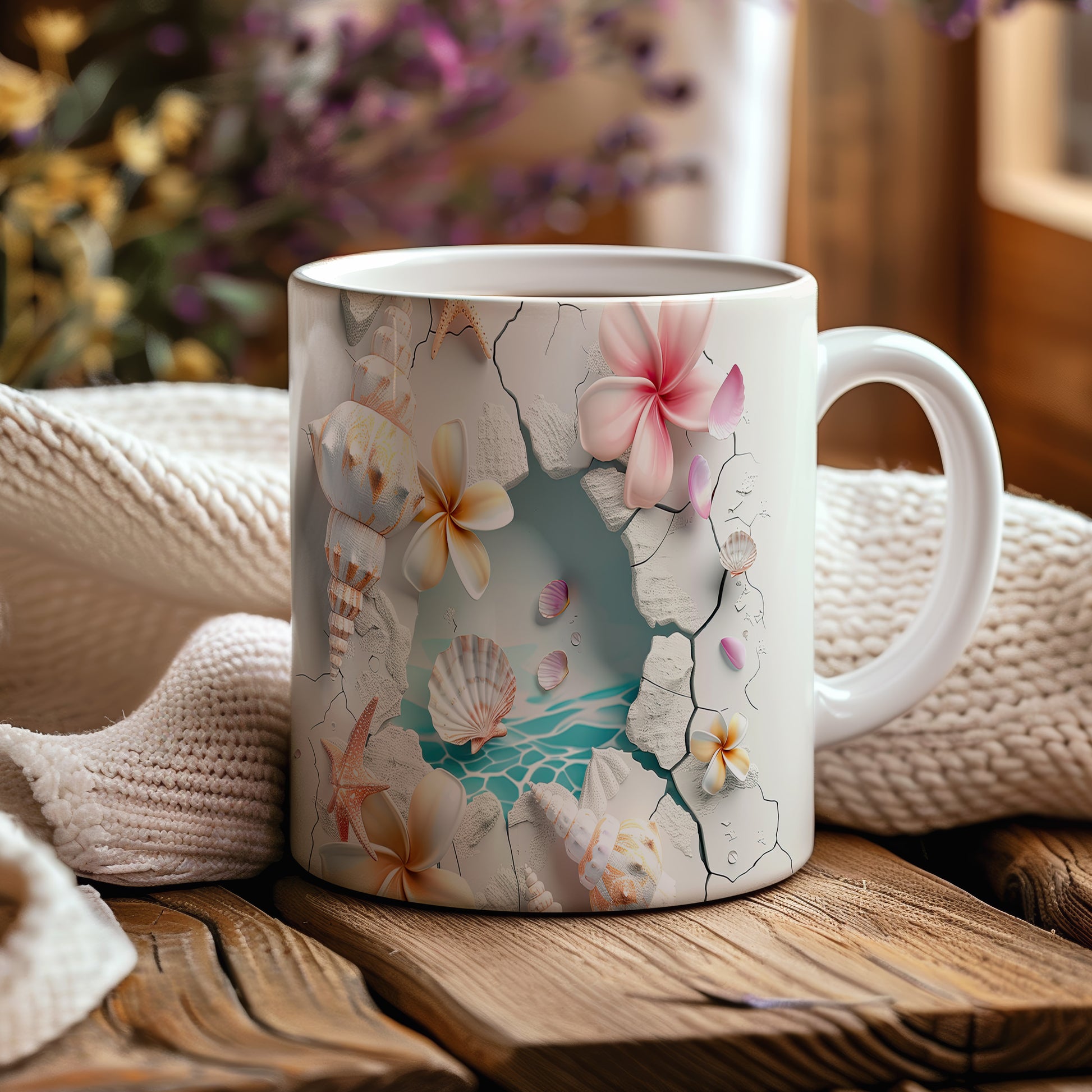 Hrnek s květinami a mušlemi v přírodním stylu přináší atmosféru relaxace u moře. Je ideální pro milovníky přírody a skvělým dárkem pro každého, kdo ocení krásu přírody. Materiál: keramika. Objem: 330 ml. Vhodné do myčky i mikrovlnky. Tento hrnek vám zpříjemní každé sousto a nápoj.