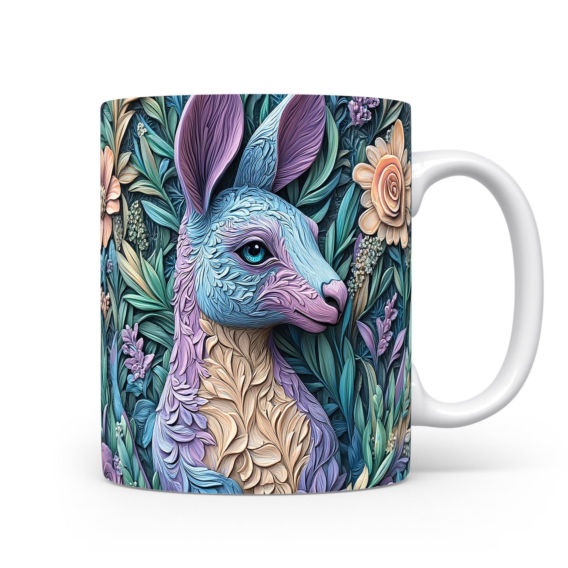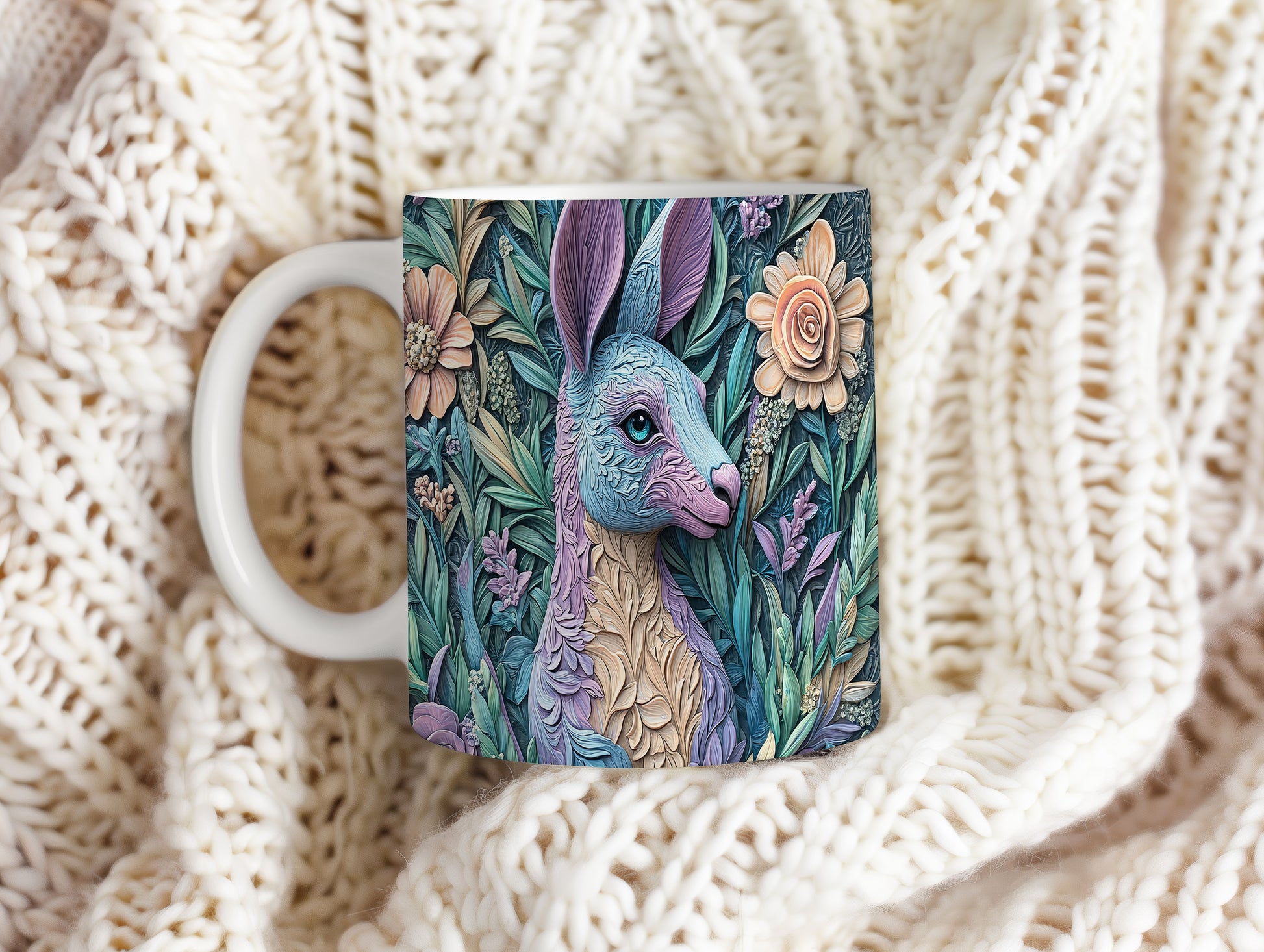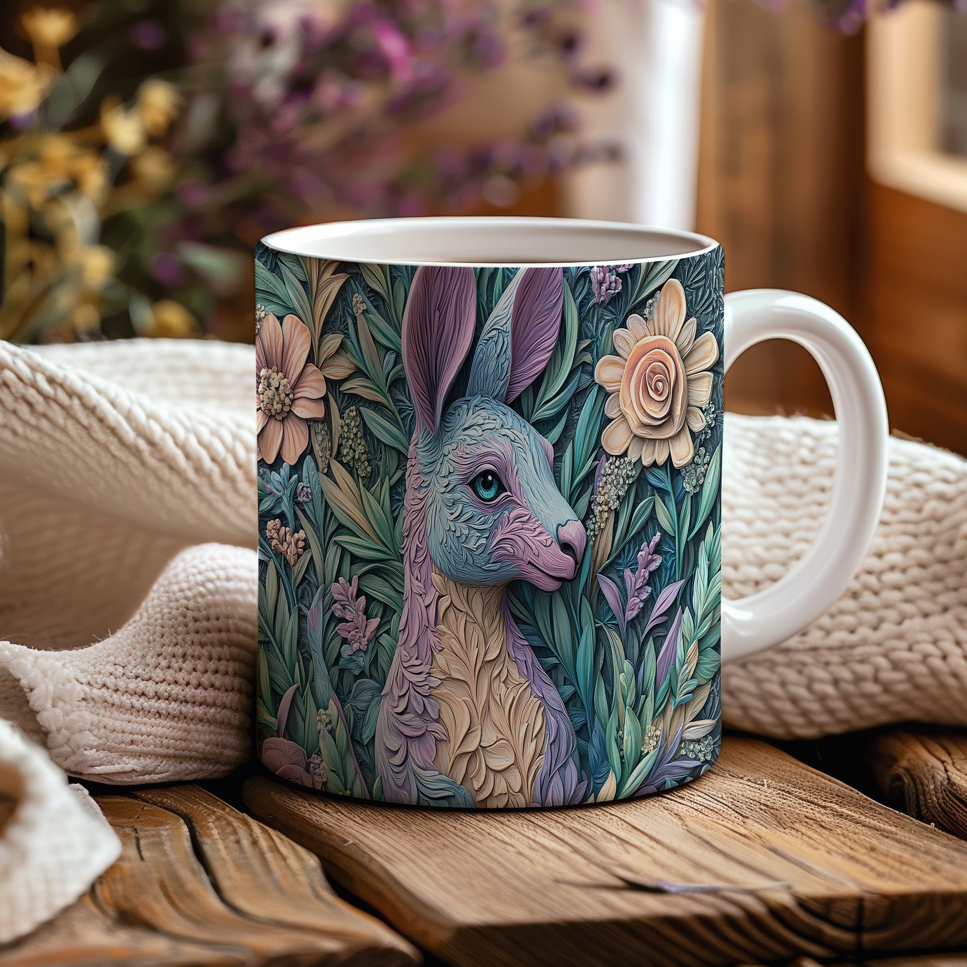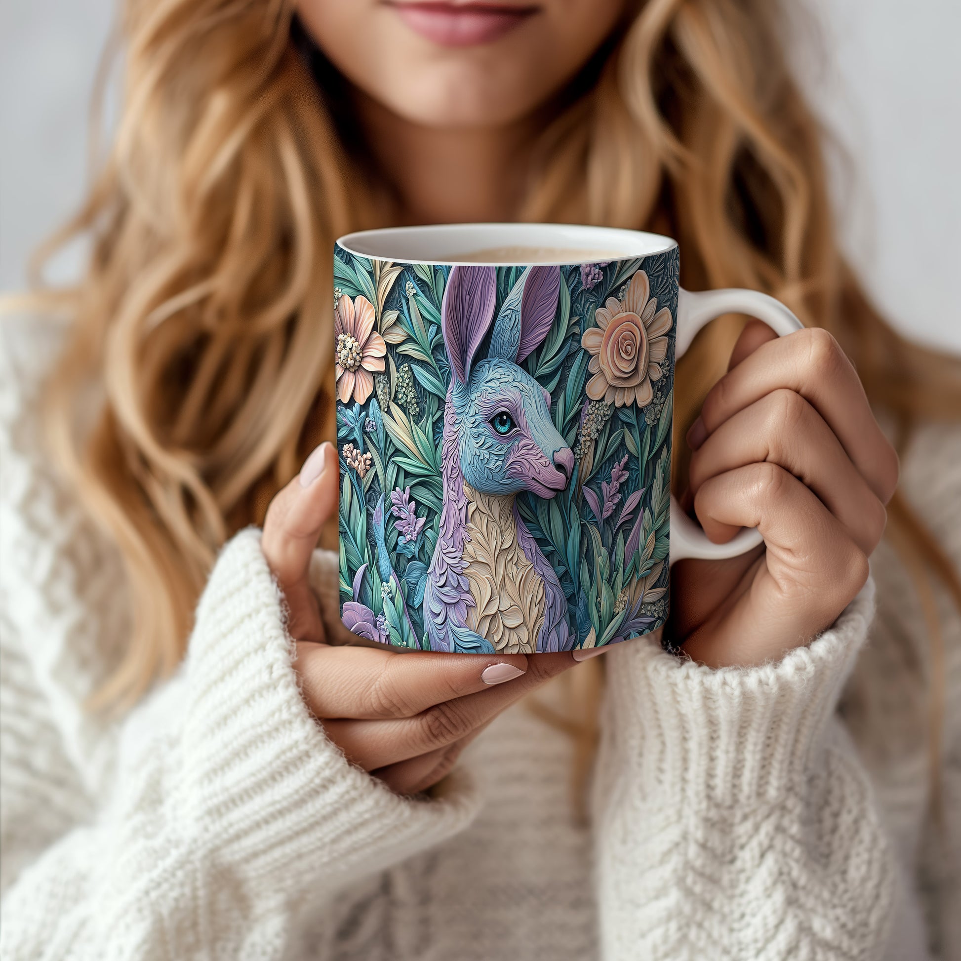 Hrnek s květinami a roztomilým zvířátkem v pastelových tónech