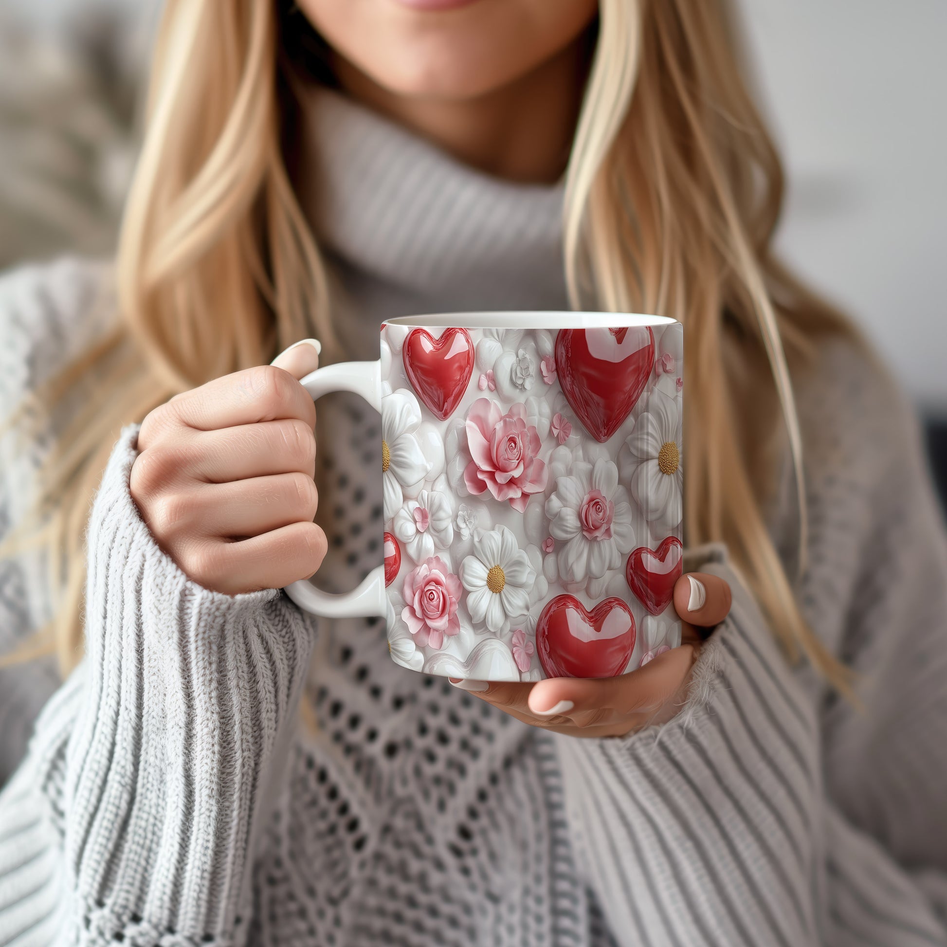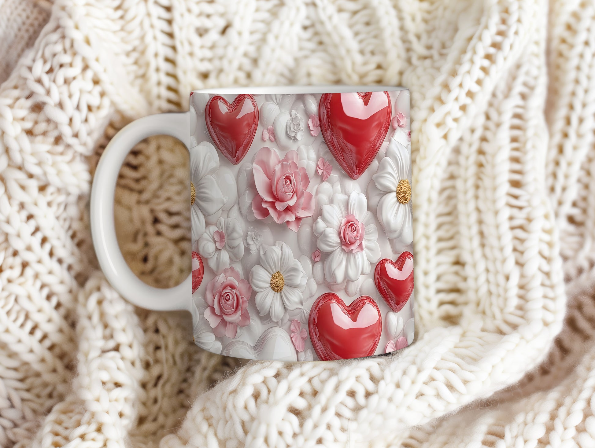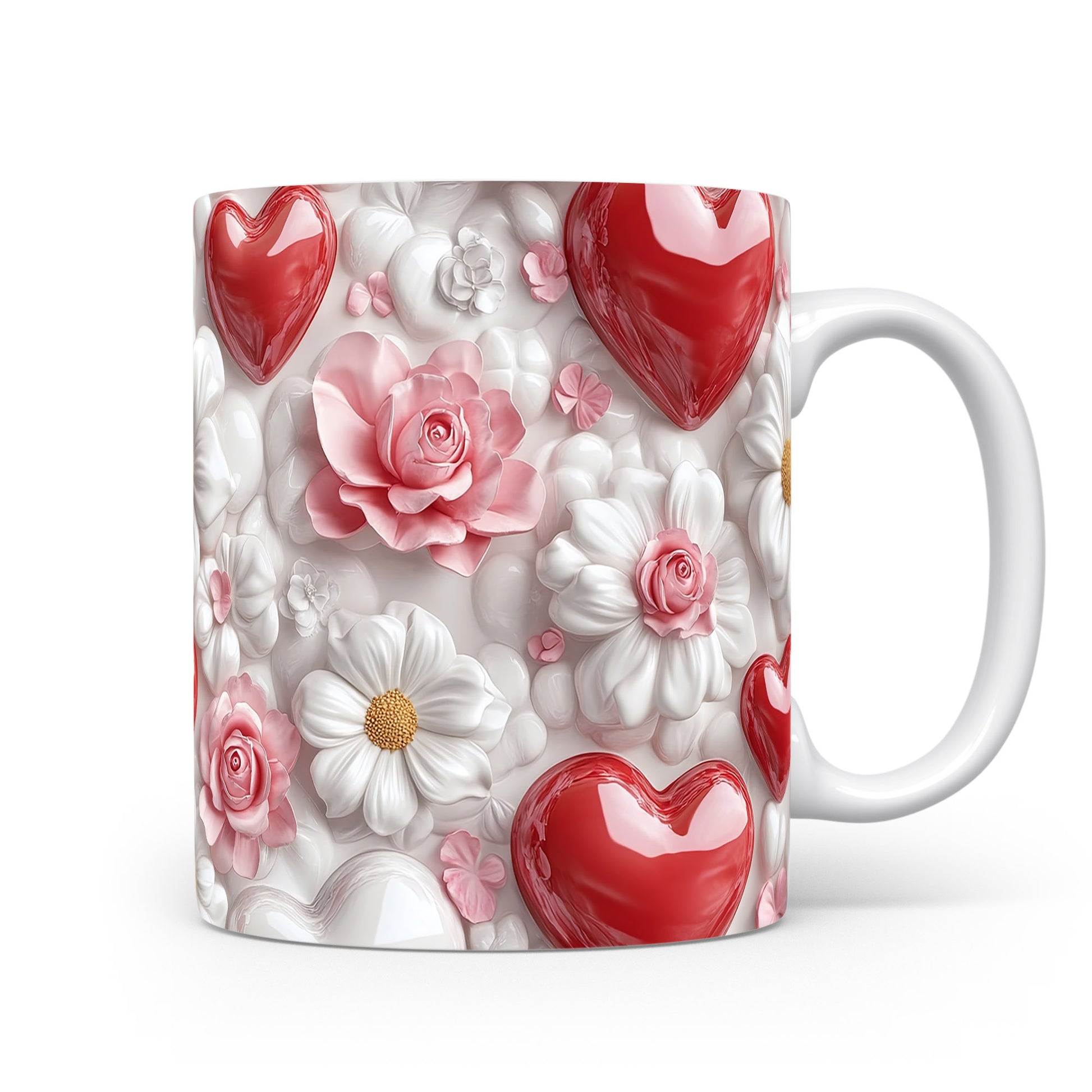 Hrnek s květinami a srdci
