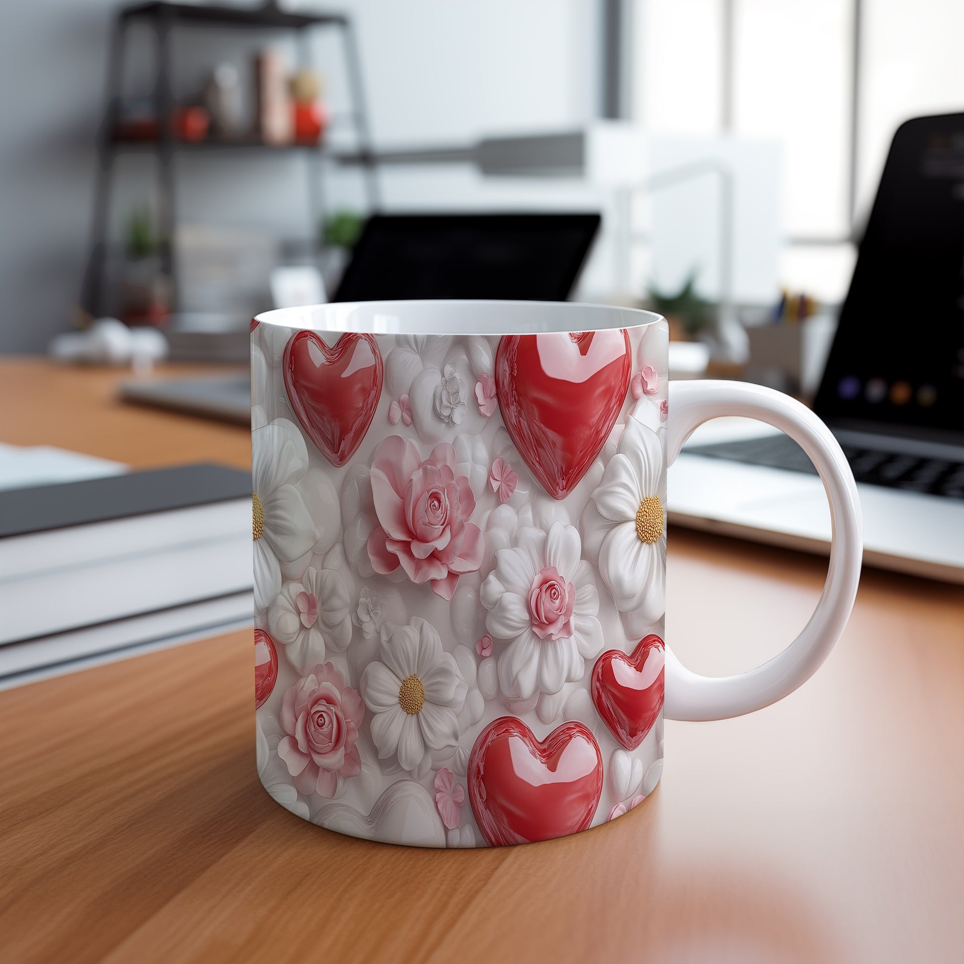 Tento elegantní hrnek je zdobený růžovými květinami a červenými srdci, což mu dodává romantický nádech. Je ideální pro každodenní používání nebo jako dárek pro milovníky květin. Materiál: keramika. Objem: 330 ml. Vhodné do myčky i mikrovlnky. Díky svému designu přináší do každého dne radost a pohodu.