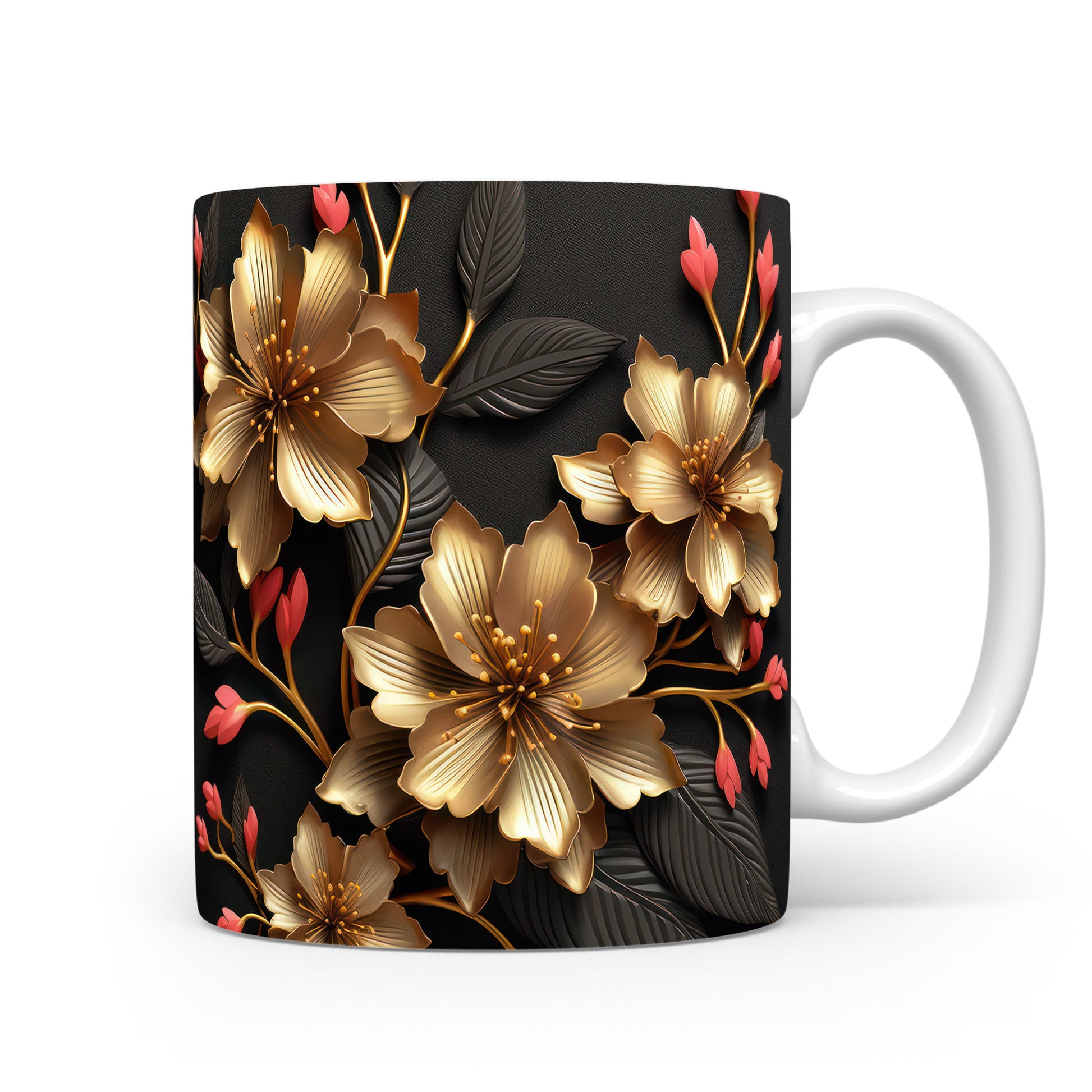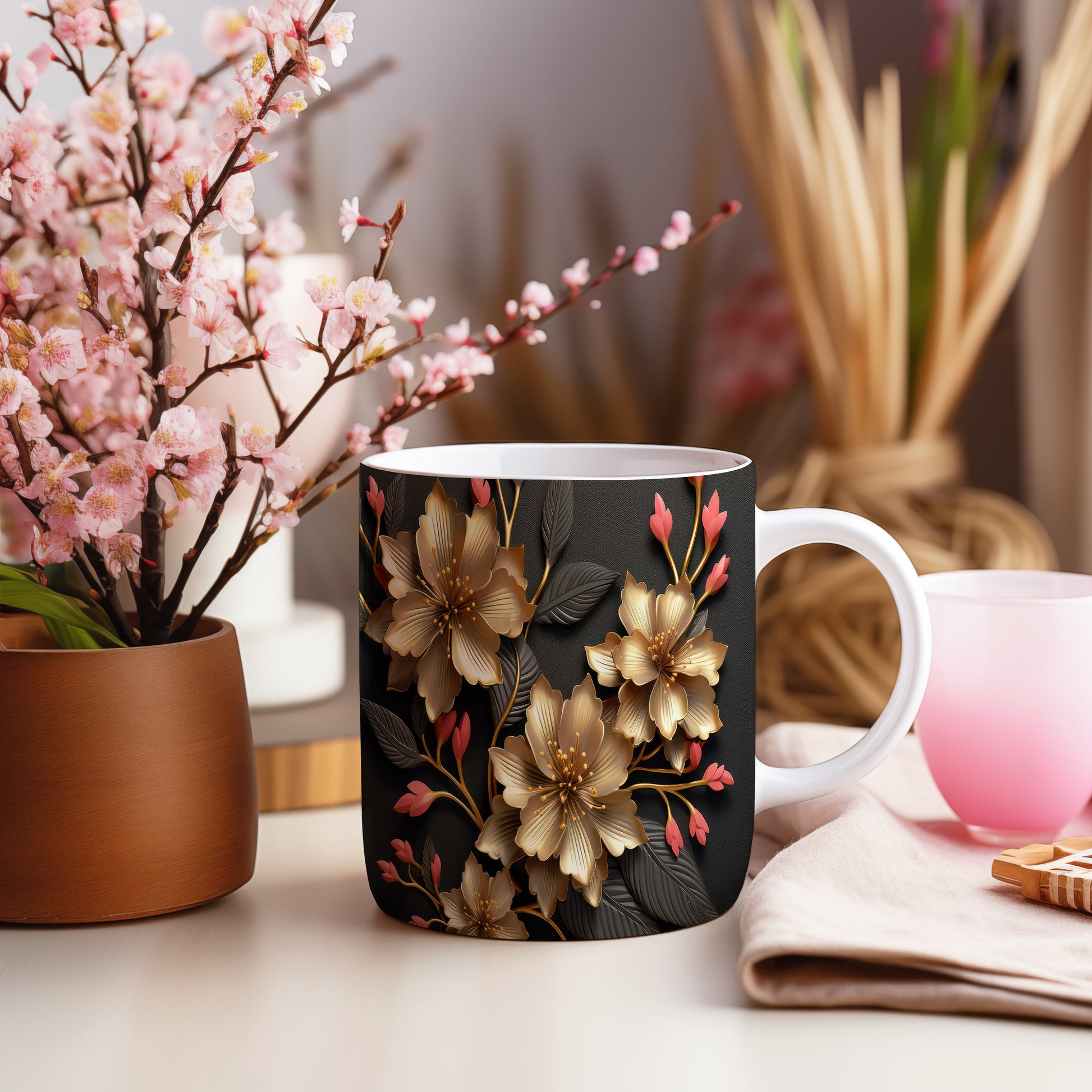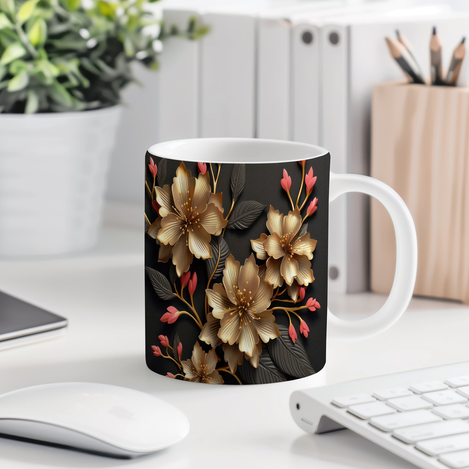 Stylový hrnek s motivem zlatých květin na černém pozadí. Tento elegantní kousek je ideální pro milovníky kávy a čaje, skvělý tip na dárek pro přátele nebo rodinu. Materiál: keramika. Objem: 330 ml. Vhodné do myčky i mikrovlnky. Užijte si svůj oblíbený nápoj s tímto jedinečným hrnkem, který dodá každému okamžiku šmrnc.
