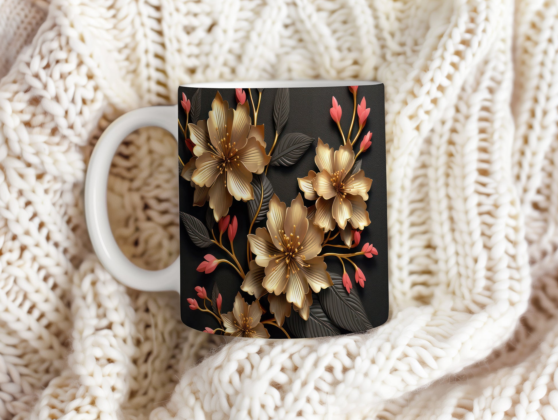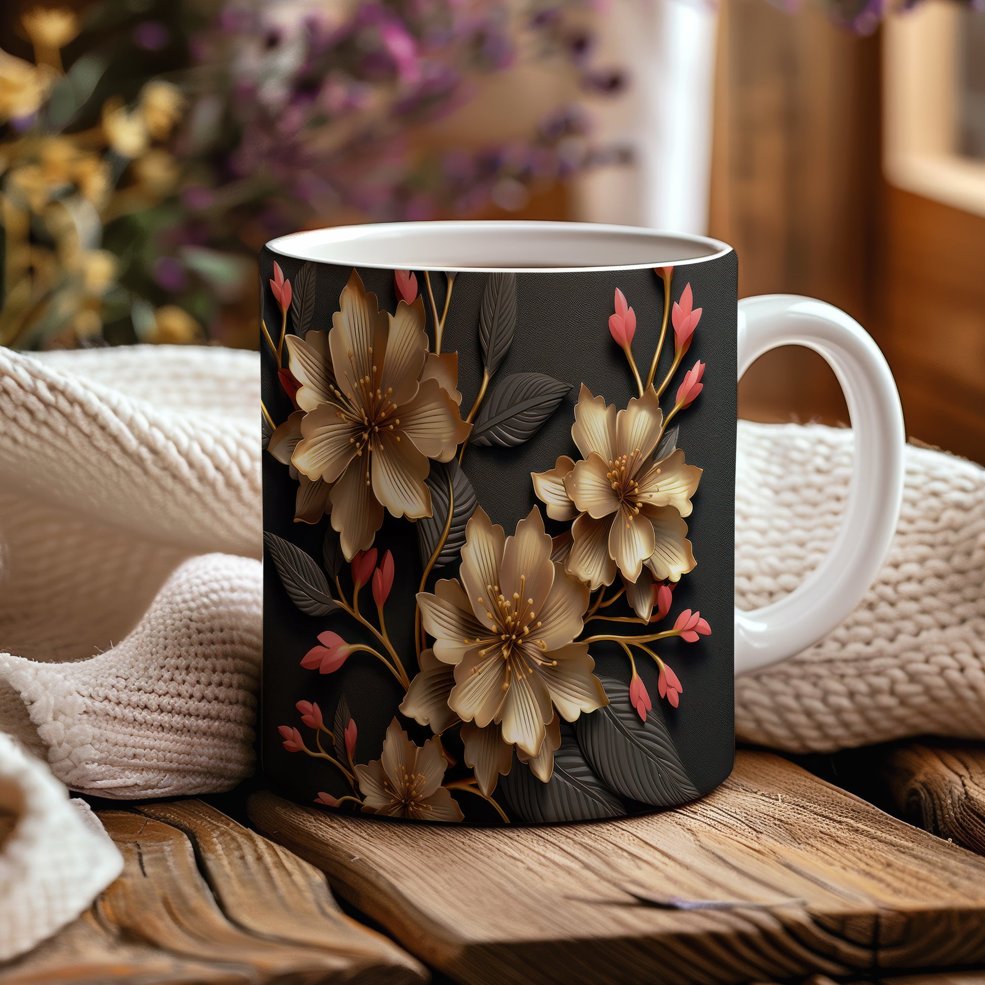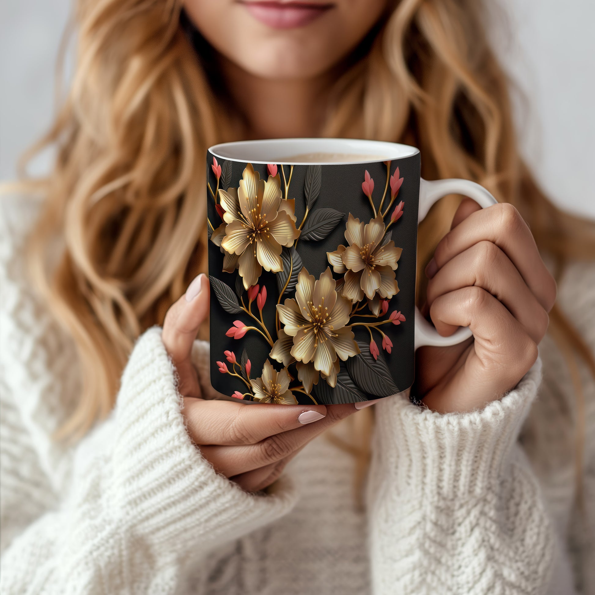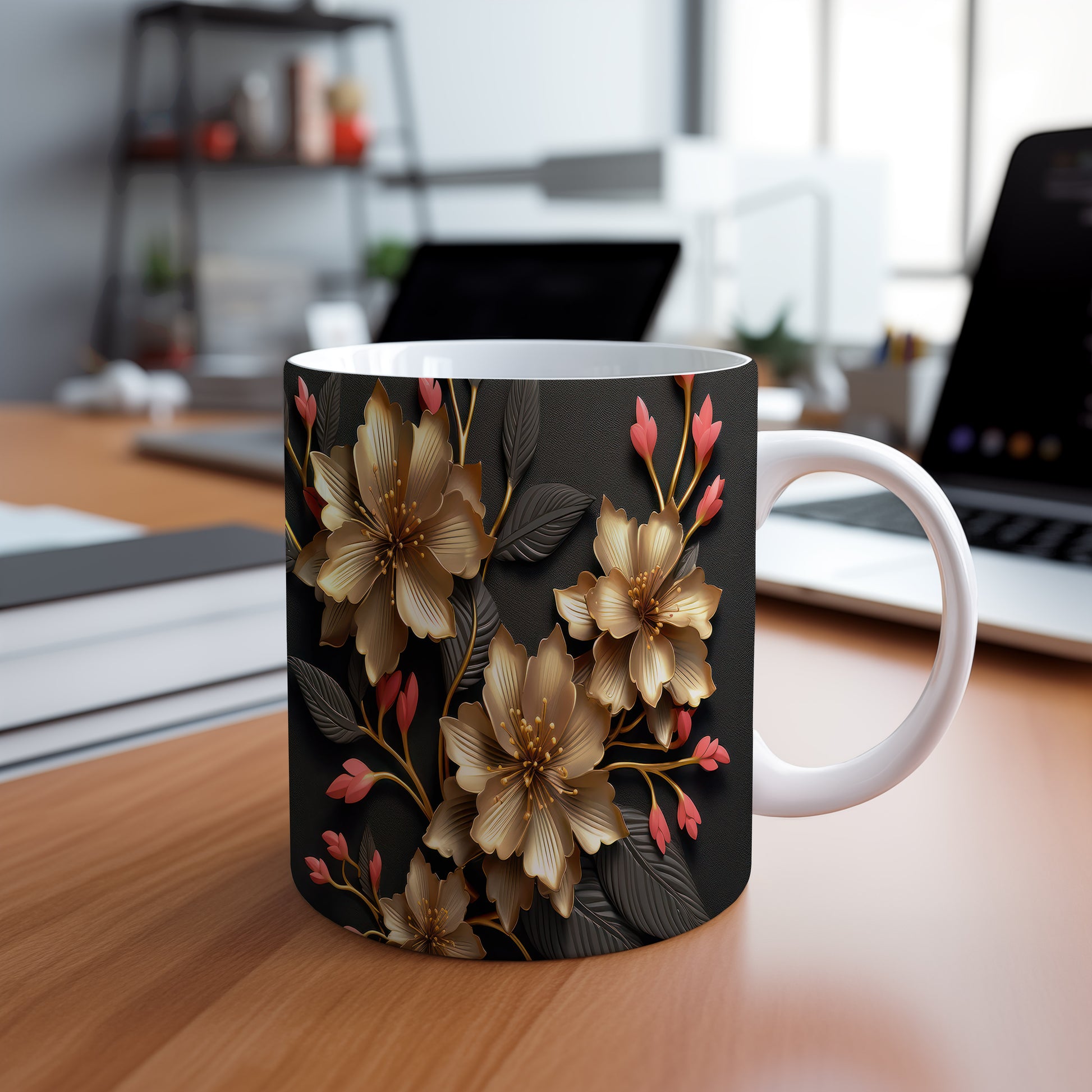 Stylový hrnek s motivem zlatých květin na černém pozadí. Tento elegantní kousek je ideální pro milovníky kávy a čaje, skvělý tip na dárek pro přátele nebo rodinu. Materiál: keramika. Objem: 330 ml. Vhodné do myčky i mikrovlnky. Užijte si svůj oblíbený nápoj s tímto jedinečným hrnkem, který dodá každému okamžiku šmrnc.